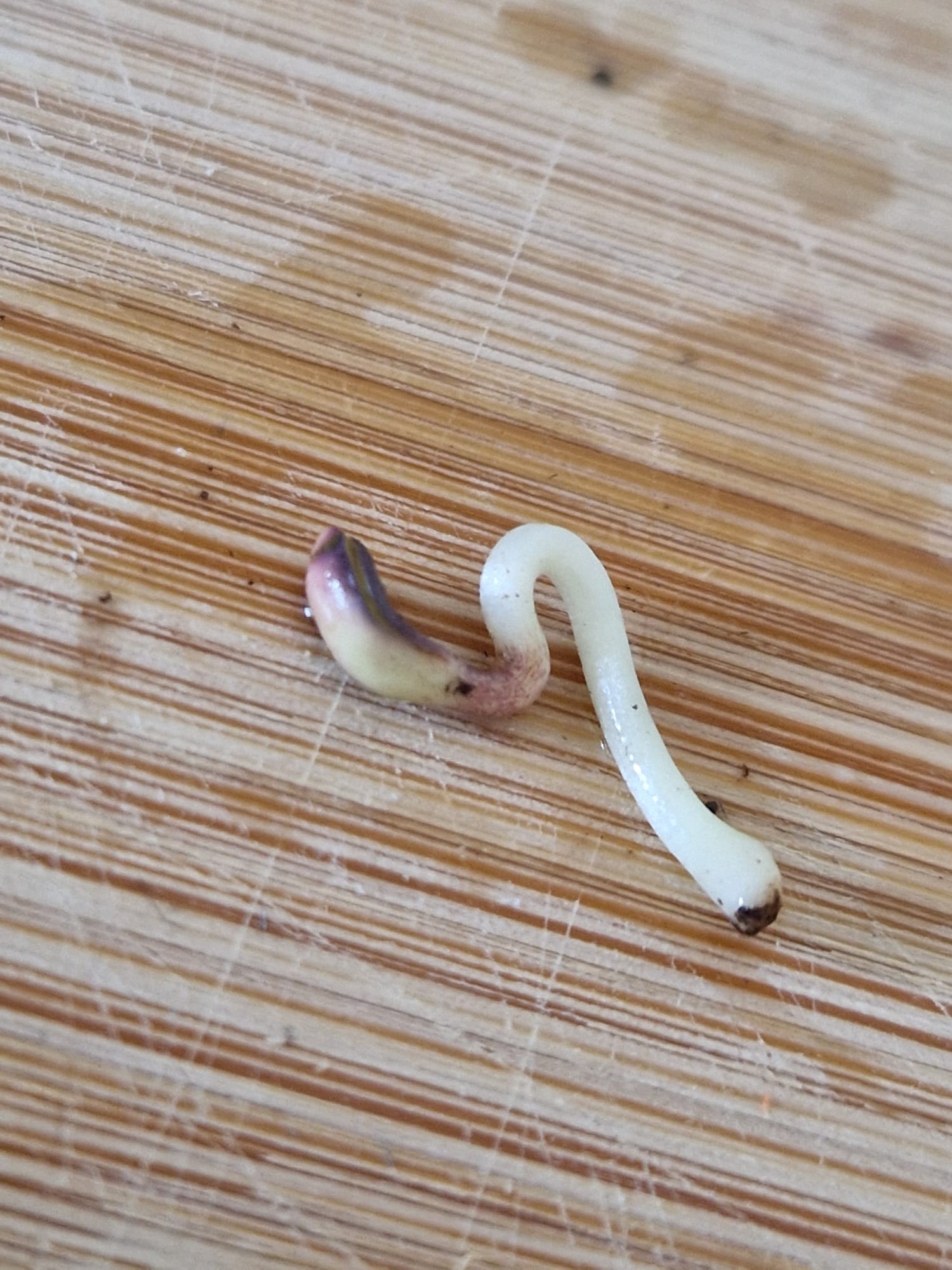Leider musste ich feststellen, dass die Pflanze kaum Wurzeln gebildet hat und diese in die falsche Richtung gewachsen ist und das Keimblatt in der SamenhĂŒlle war. Ich habe gedacht, dass der Samen anhand Gravitropismus weiĂ, wo oben und unten ist. Dem war komischerweise nicht so.