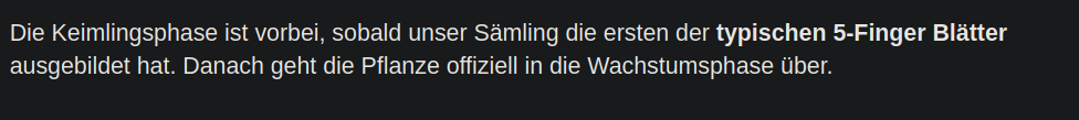 Die Wachstumsphase geht ja erst los, wenn die Pflanze 5 Finger BlÀtter hat.