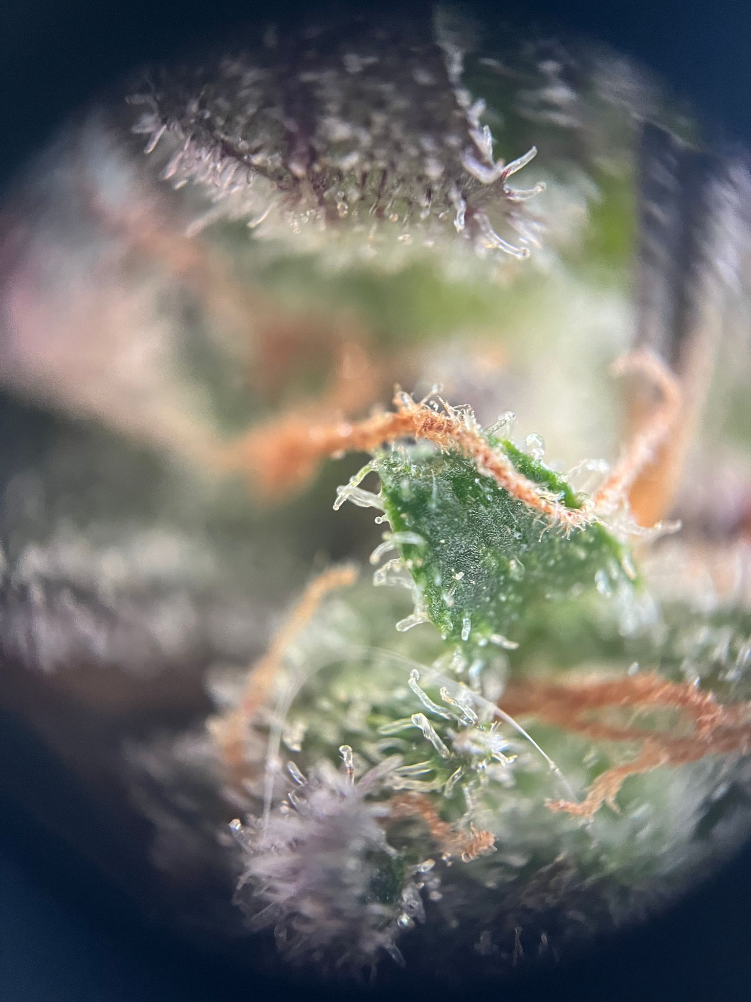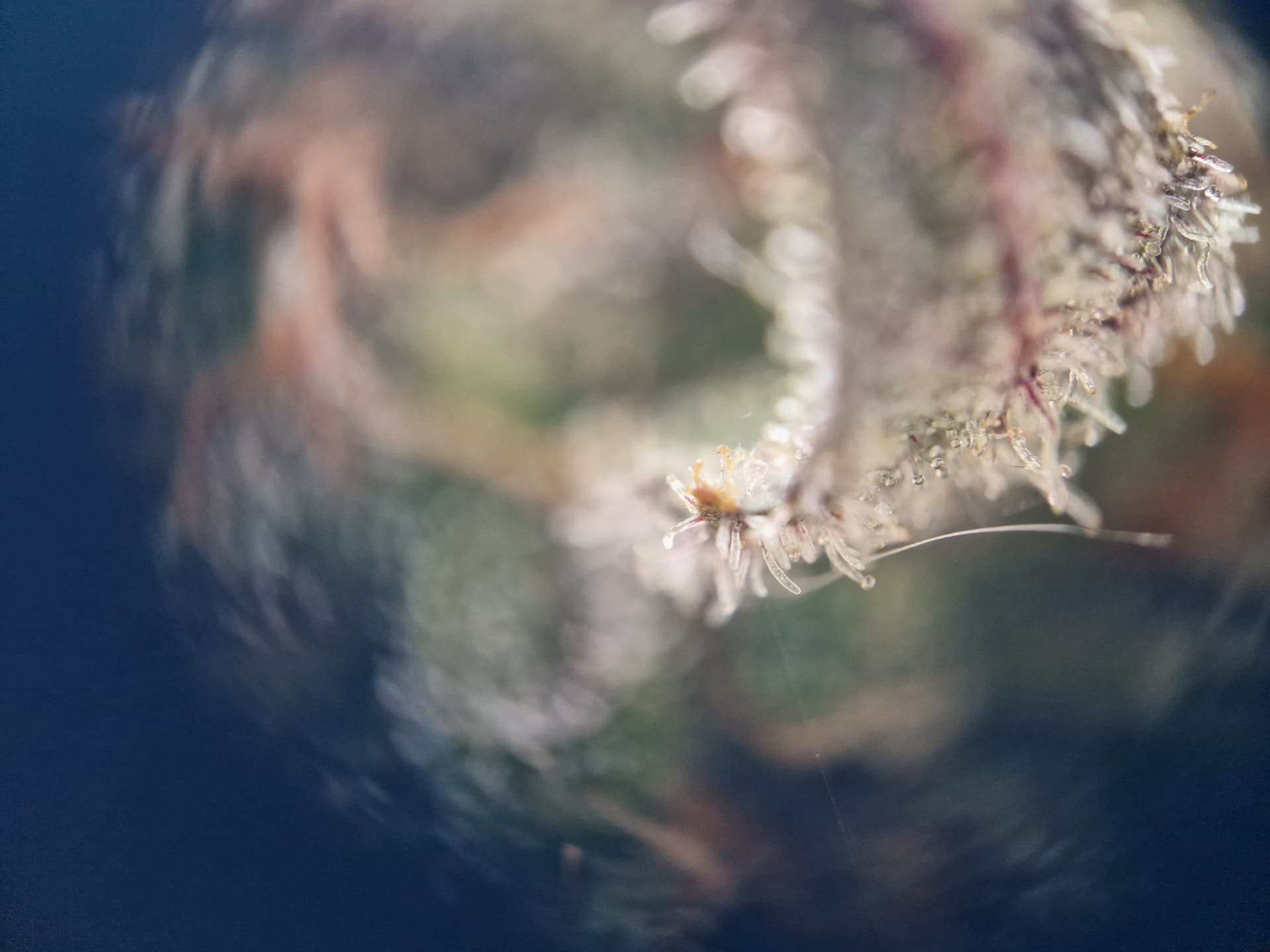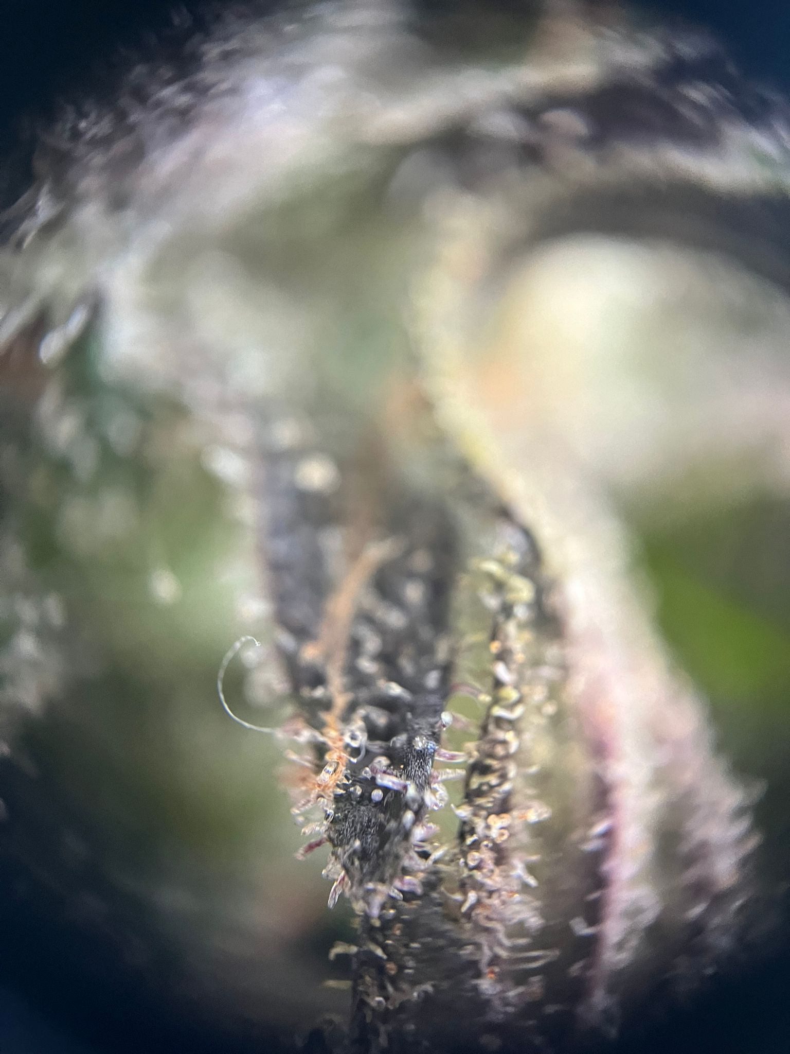 Man konnte es sehr schlecht aufnehmen. Mit dem bloĂen Auge konnte ich schon leicht bernsteinfarbene ca. 10 %, 60 % milchige und einige klare Terpene ca. 30 % sehen.