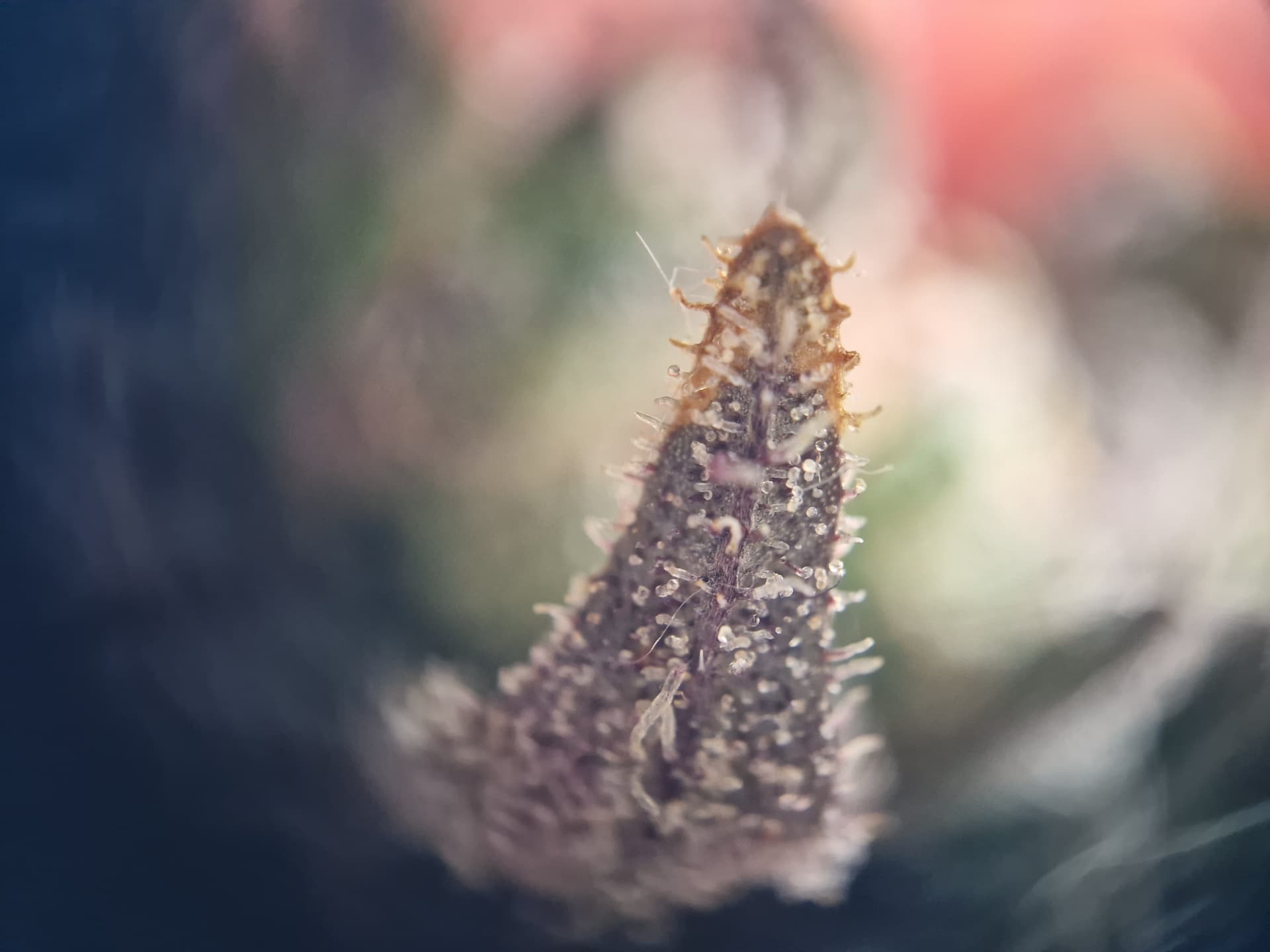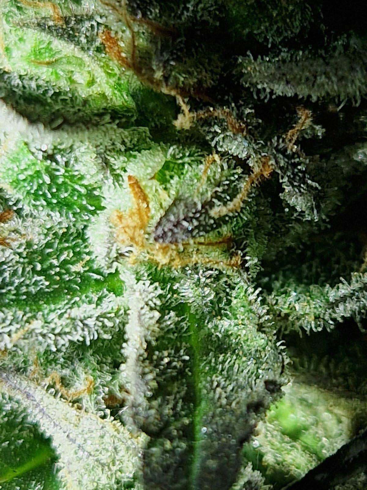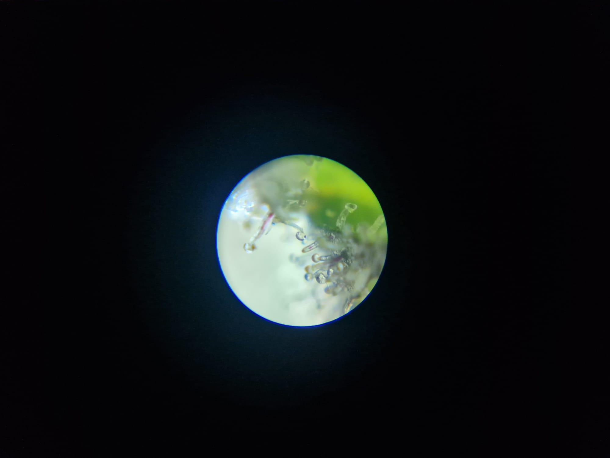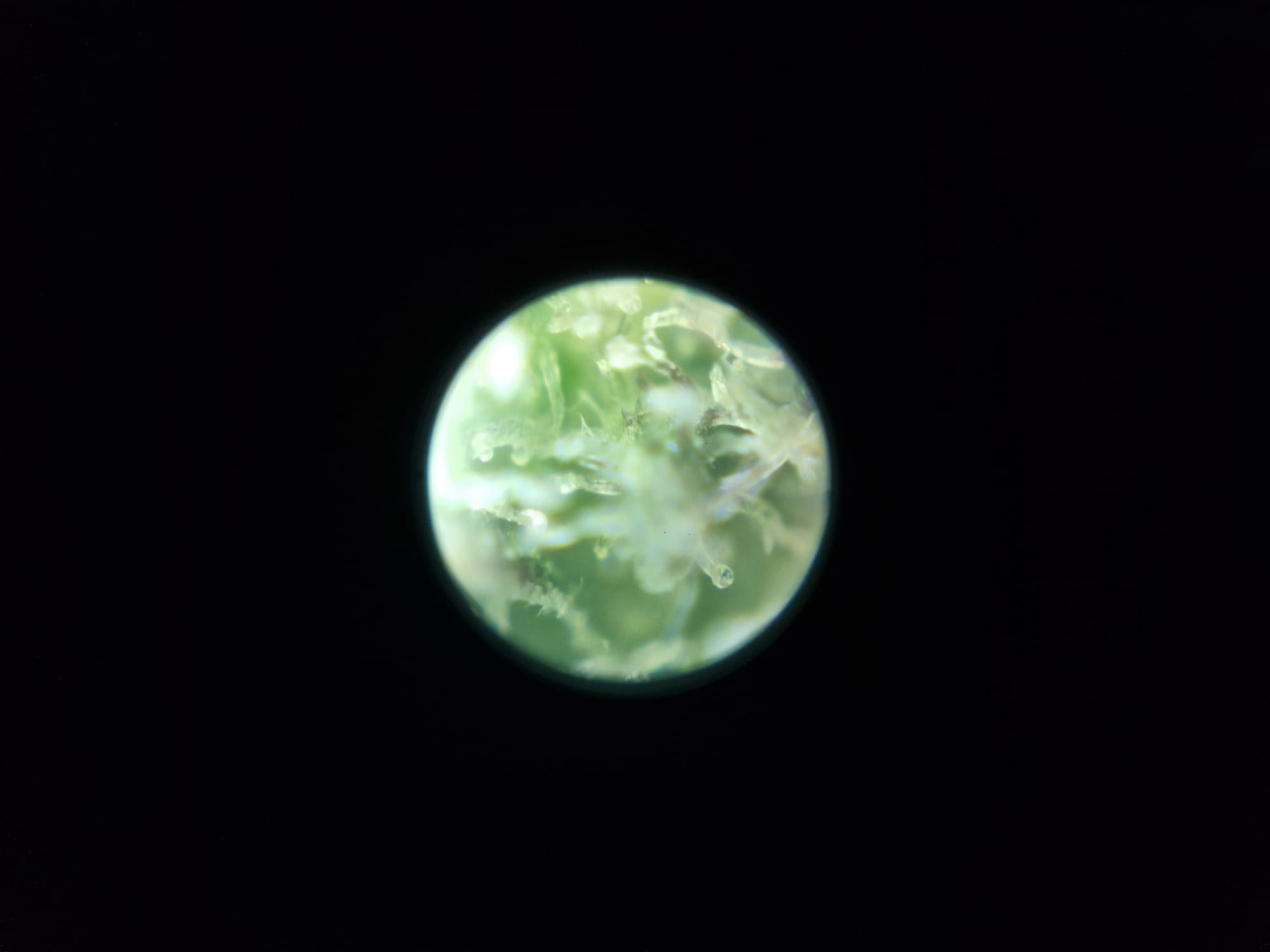 Man konnte es sehr schlecht aufnehmen. Mit dem bloĂen Auge konnte ich schon leicht bernsteinfarbene ca. 10 %, 60 % milchige und einige klare Terpene ca. 30 % sehen.