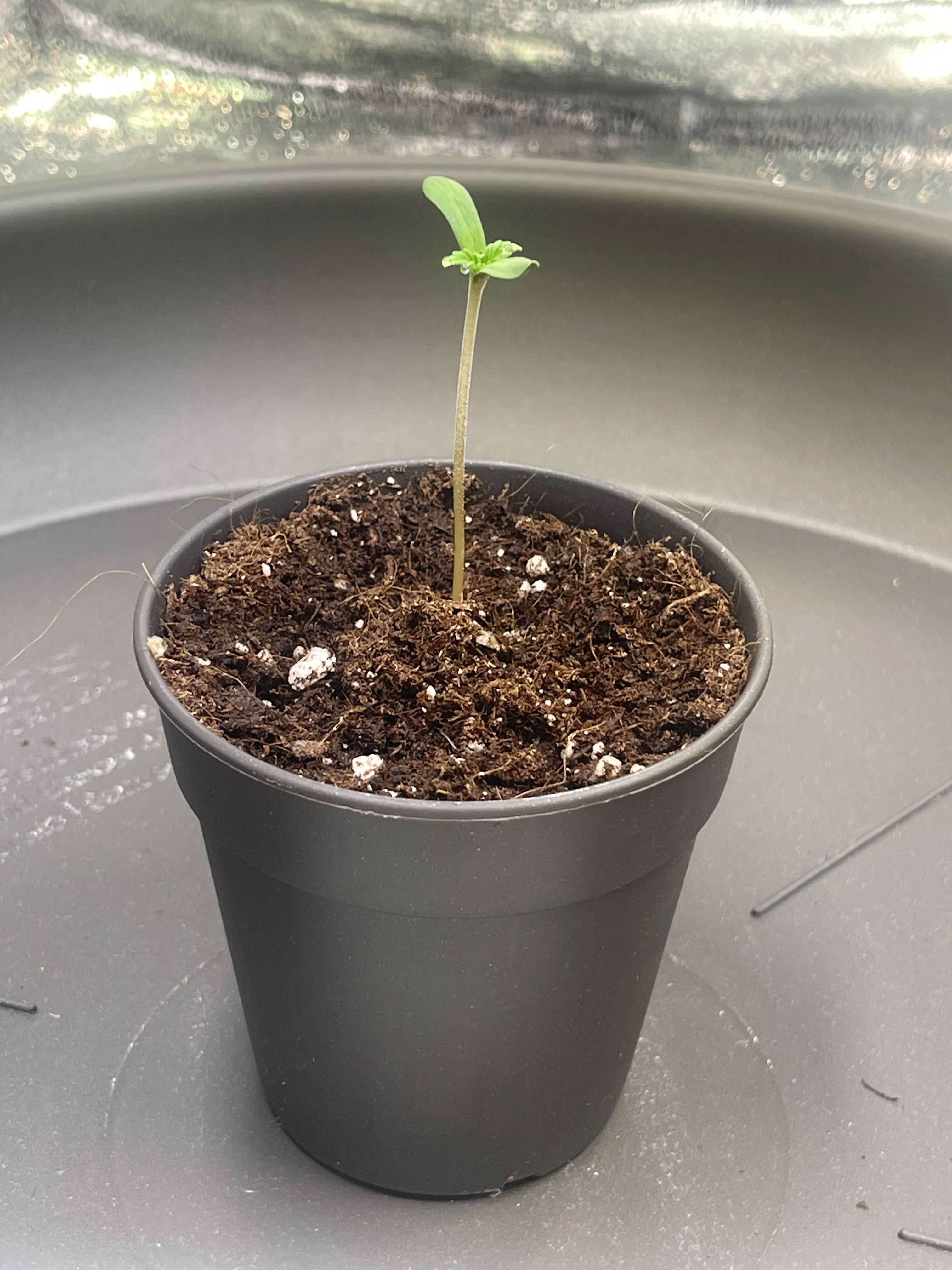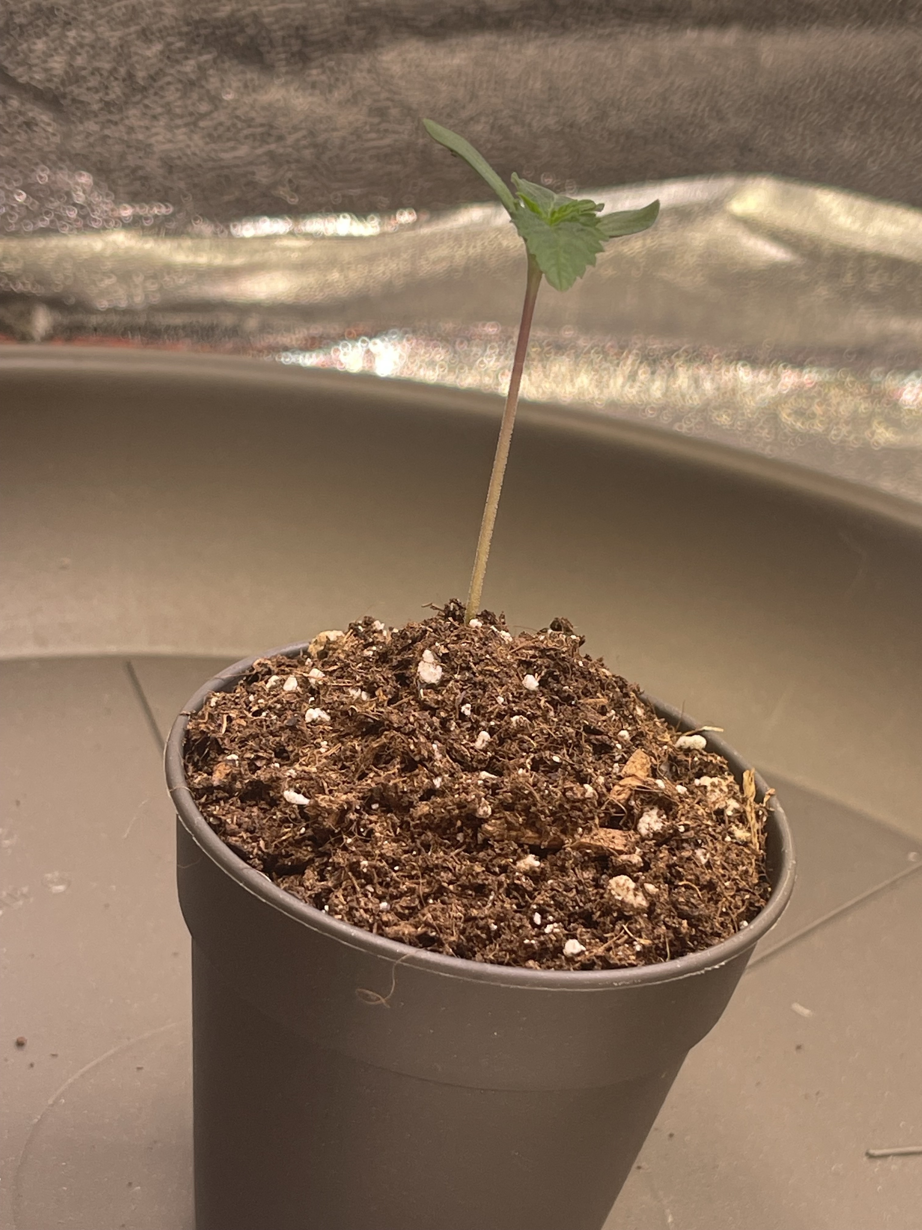 Nach etwa 5 Tagen hoffen und bangen, hat Berta dann endlich die Erde durchbrochen, woraufhin ich gleich das Licht eingeschaltet (06:00-24:00 Uhr) habe. Dieses lasse ich seitdem auf 40% laufen, mit einem Abstand von ca 35cm.