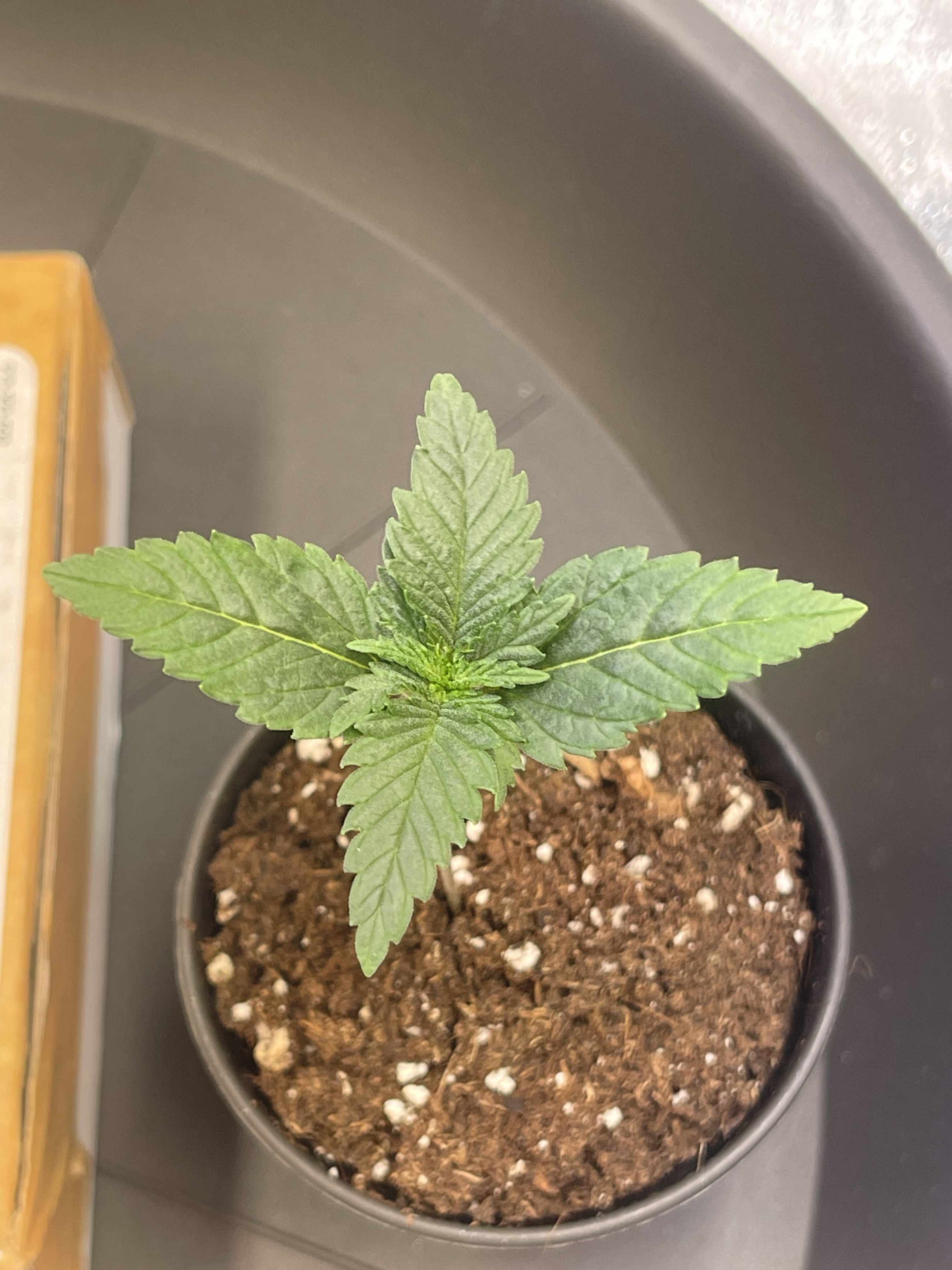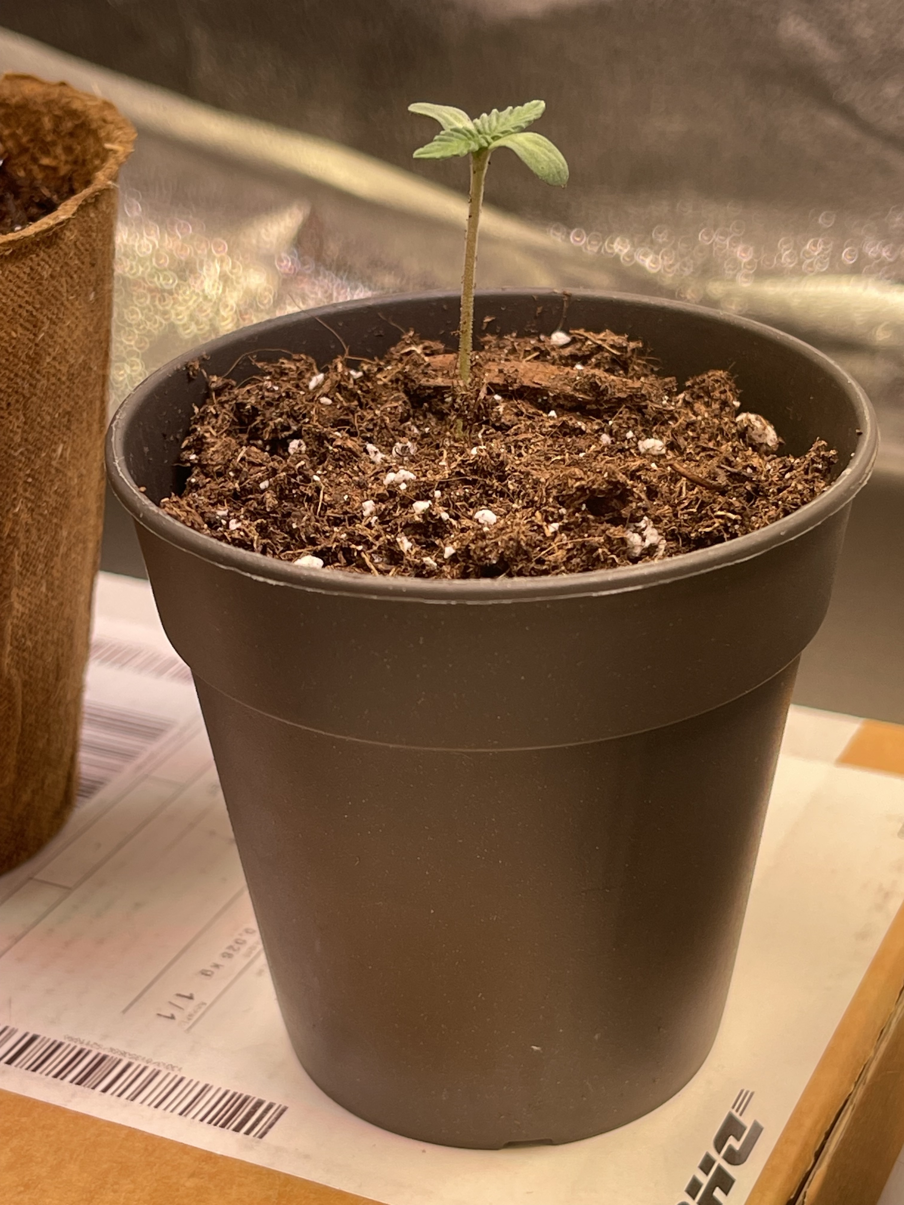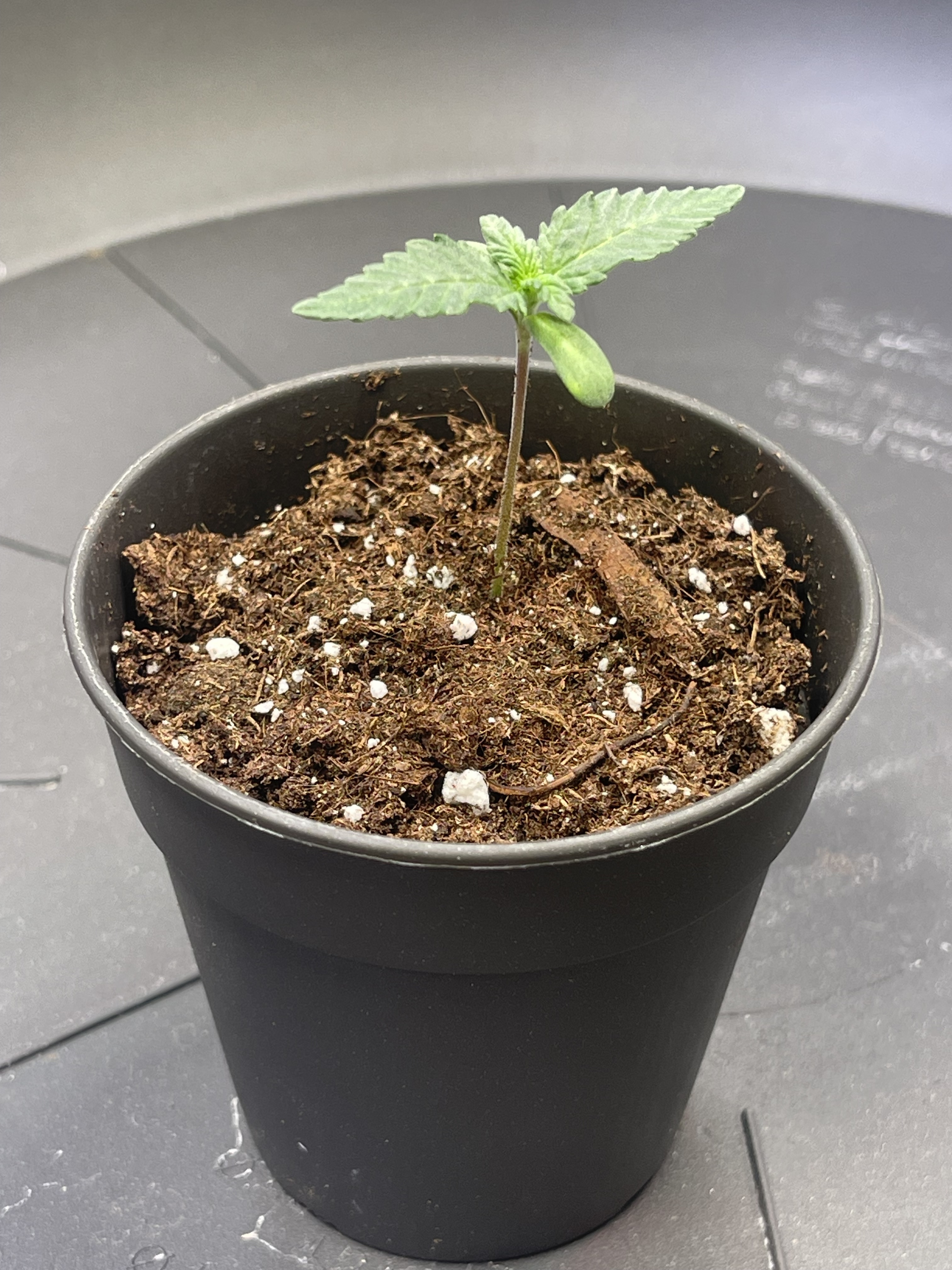 Ich habe Berta nun in einen 3 L Topf gepflanzt und gebe ihr nun nach und nach 1 Liter mit 5 ml Hesi Grow.