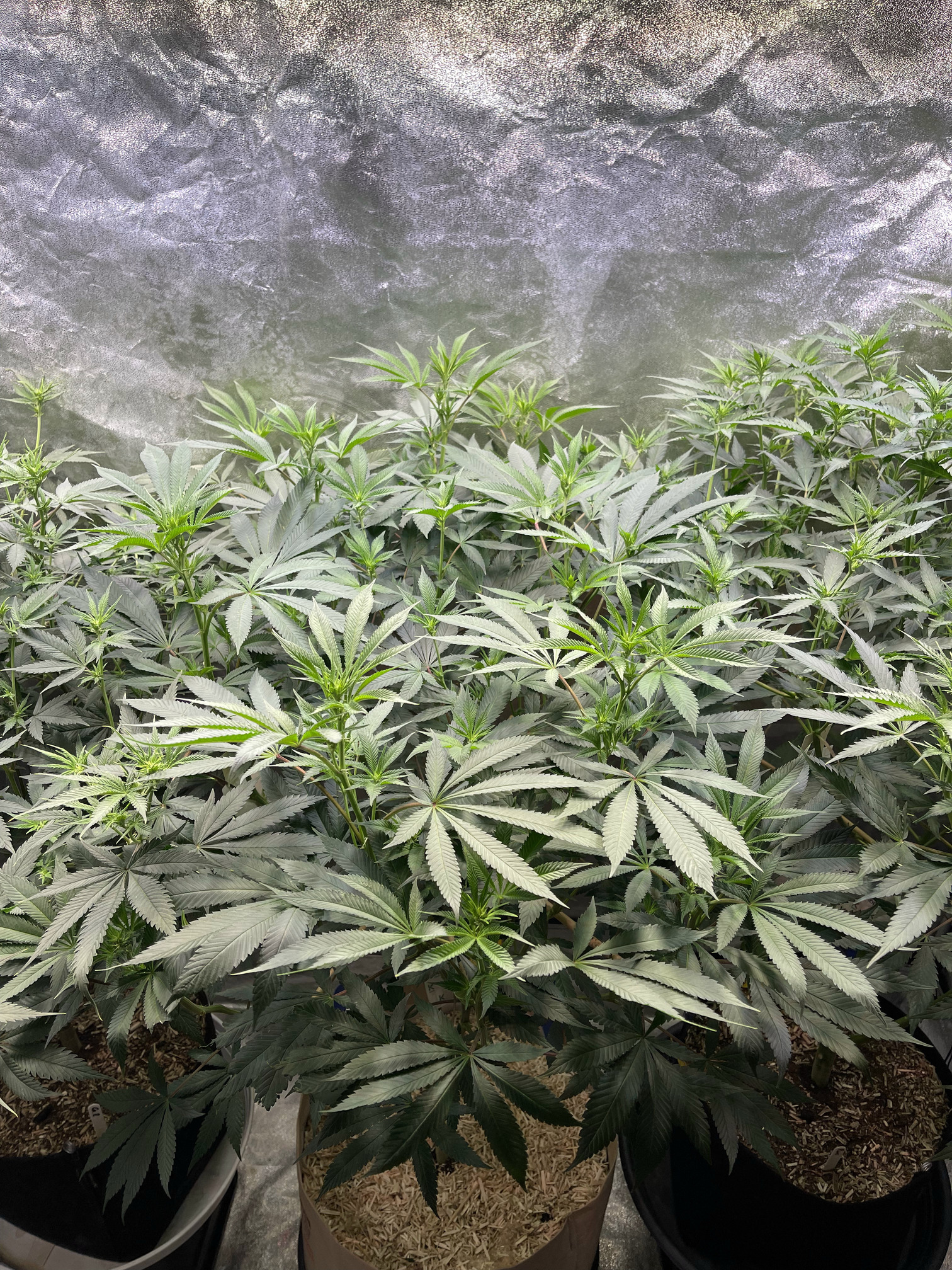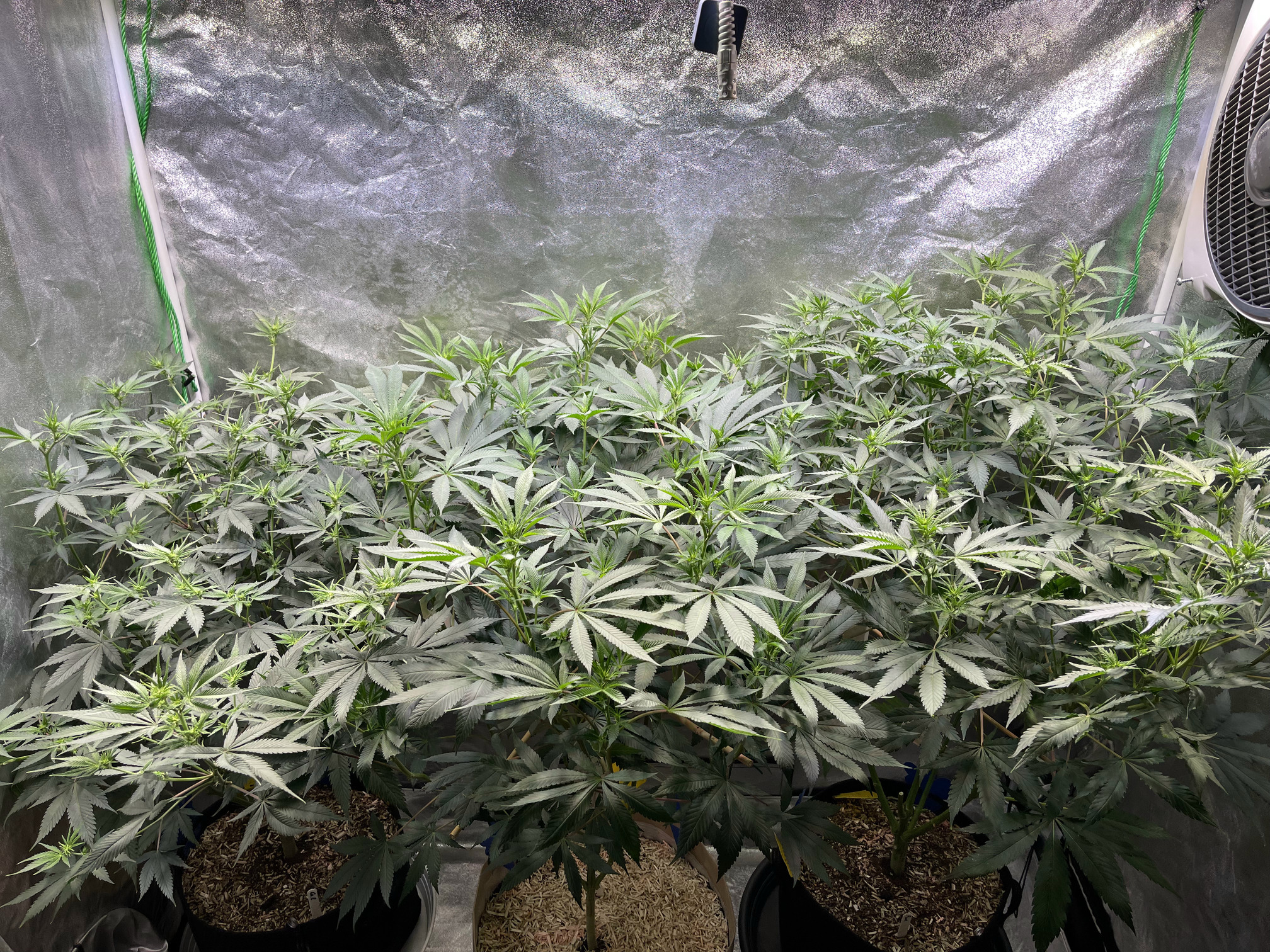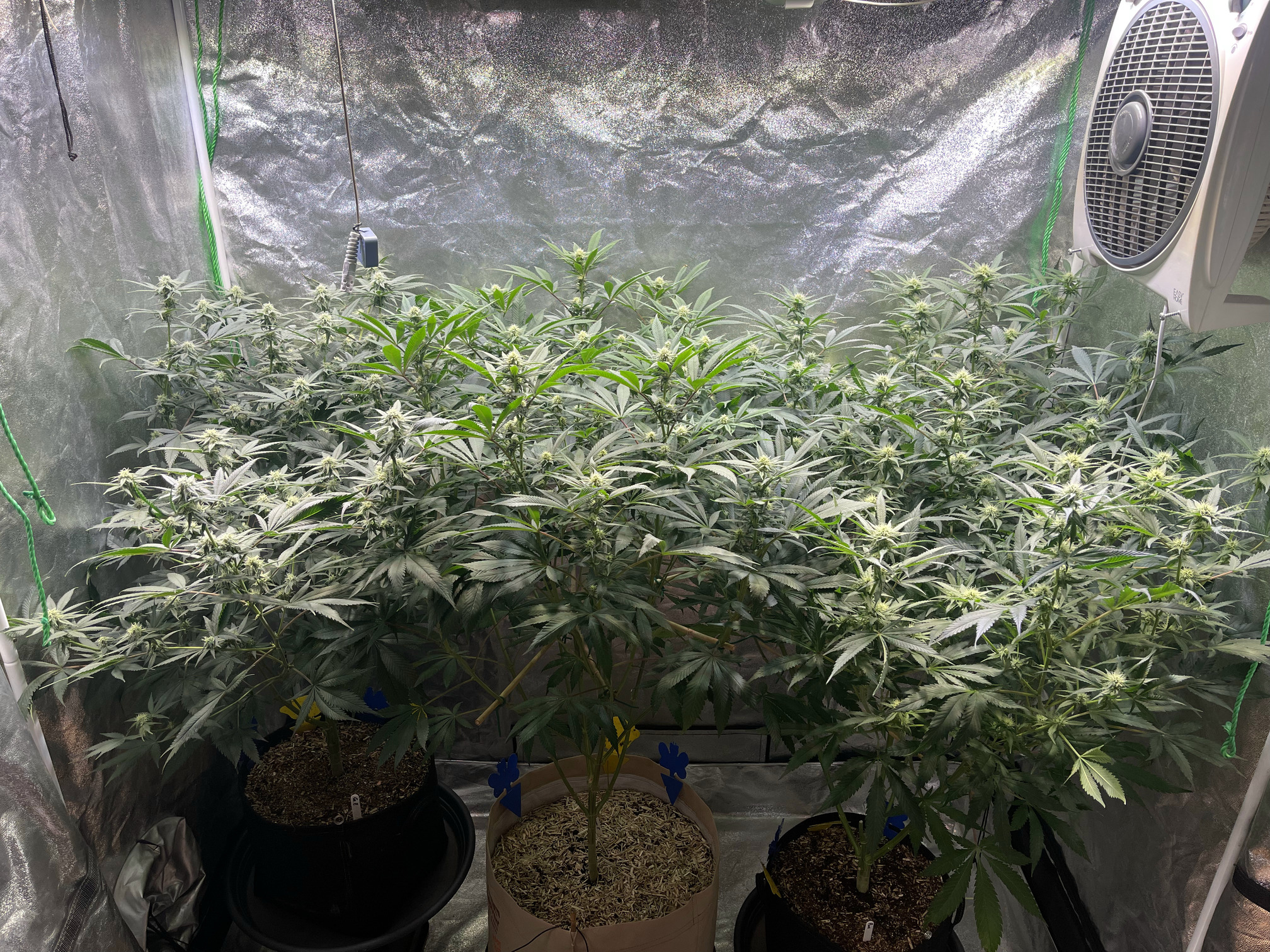 Die 3. Blütewoche ist vergangen und die Dame sind weiter auf Kurs. Die Lemon Tree in der Mitte wird ganz leicht gelblich an der größeren Blättern. Vermute die ist etwas trockener geworden und Magnesium kam etwas zu kurz. Die Letze Woche hat sie nicht mehr als 2 Liter gebraucht