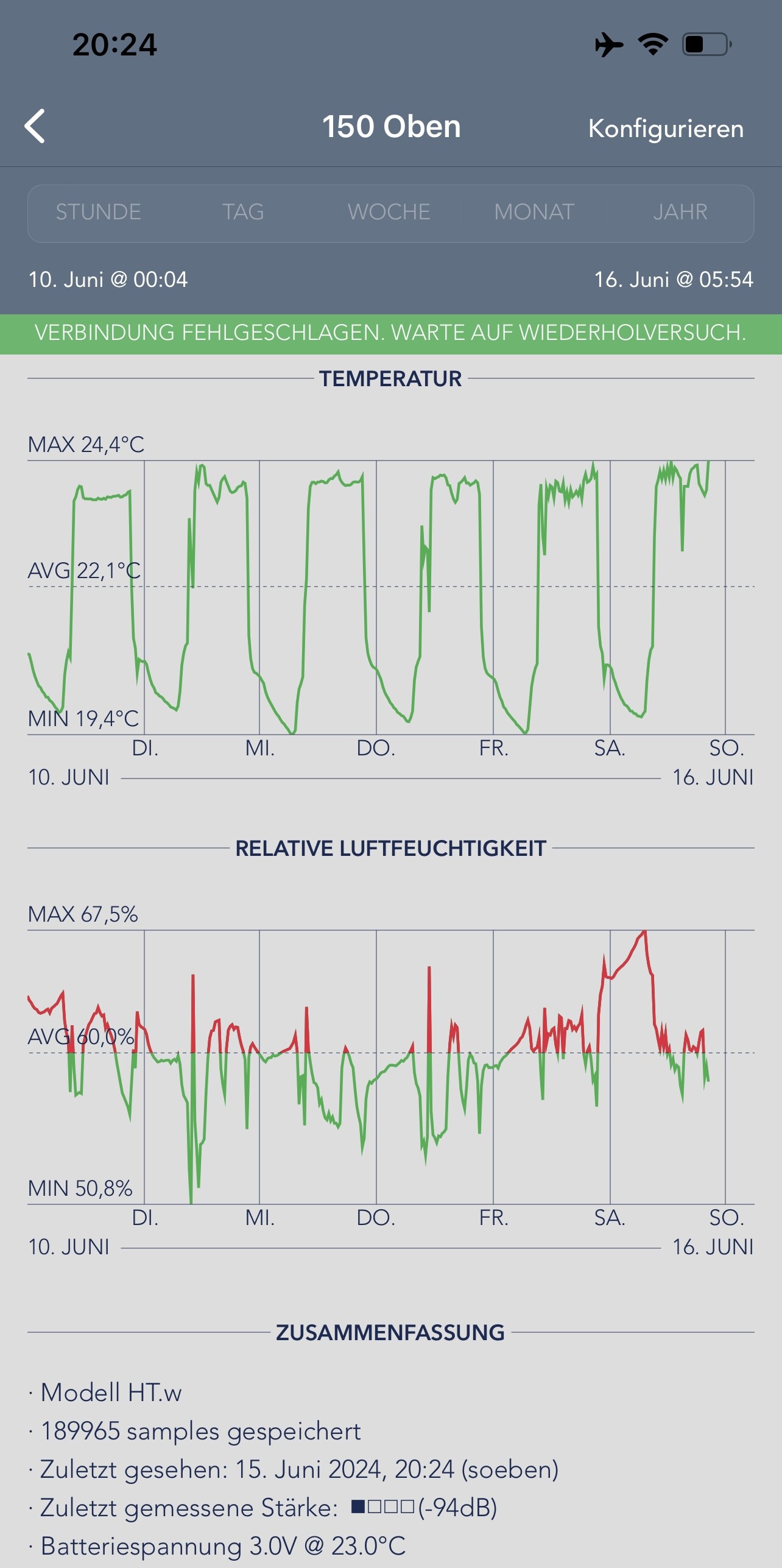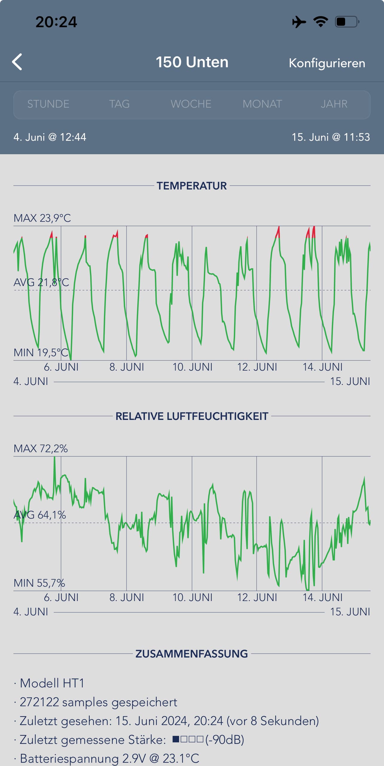 Die Klima werte von dem Sensor Oben und Unten im Substrat. für mich ist das Setup so zu der Jahreszeit ohne Blüte bei den richtigen werten. LF gut zu handeln ist auch nicht einfach