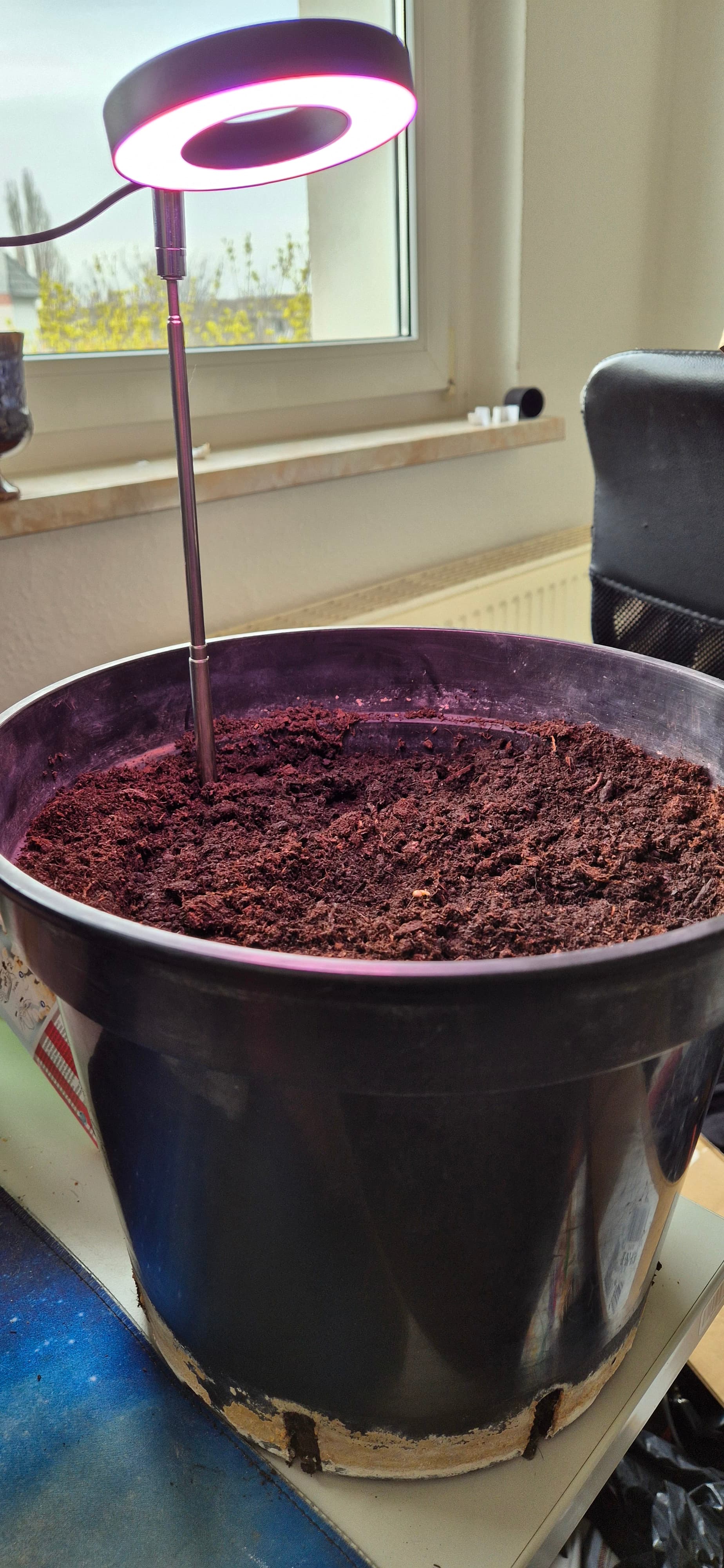 Ich bin mir noch nicht so sicher, ob die Billig LED von Amazon aktuell genug Licht oder sonstiges Liefert. Die Fensterbank ist Leider auch nach Norden ausgerichtet, also direktes Sonnenlicht ist aktuell leider schwierig. Die Billo Lampe leuchtet 18 Stunden am Tag. Ich hab mich auch noch nicht belesen, was ich am Besten an Dünger nehmen soll. Die Auswahl ist da einfach zu Groß. Die Baumarkt Erde ist ja erstmal vorgedüngt.