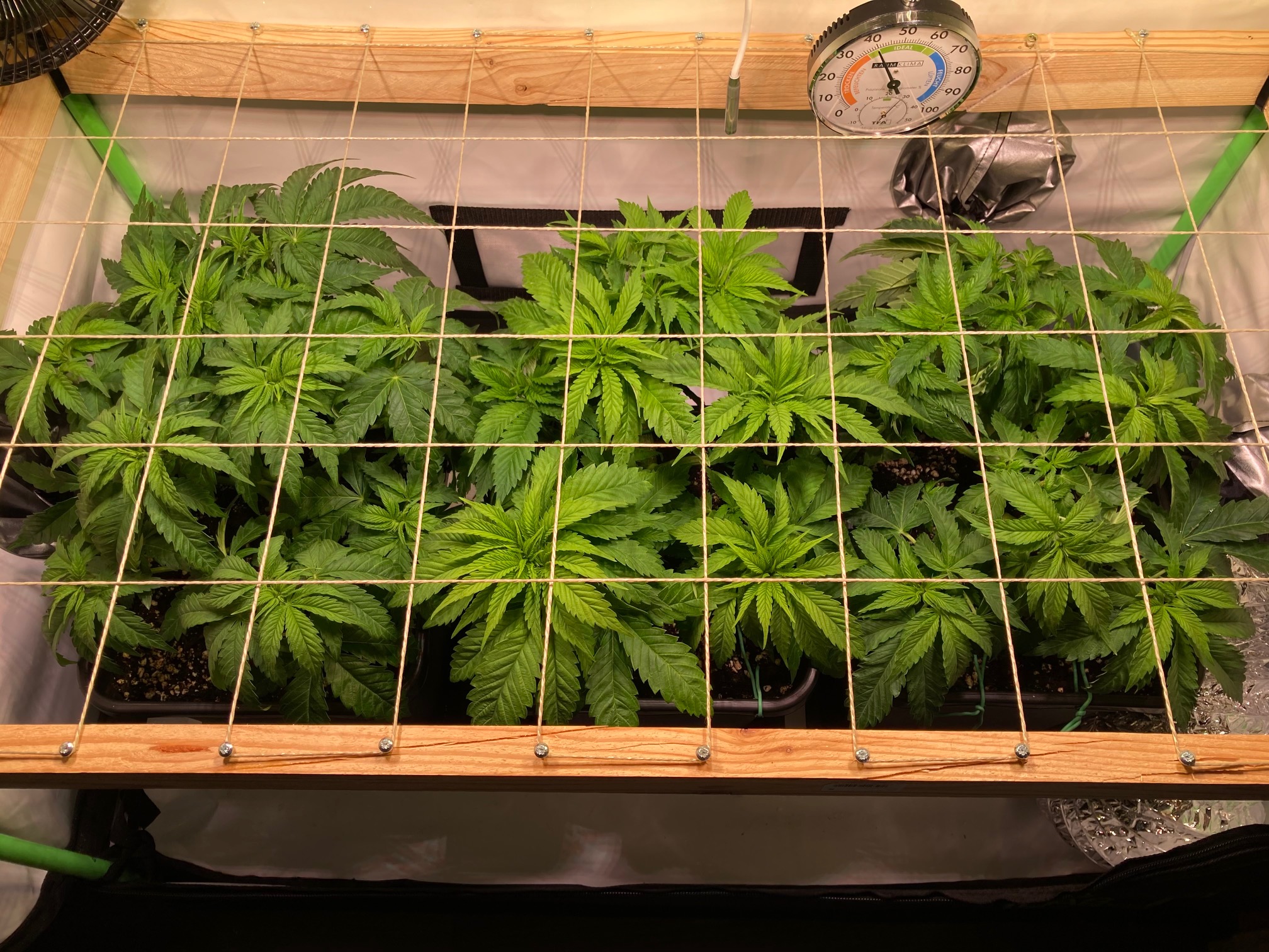 OK, dann installiere ich das Netzt jetzt doch schon final auf 20-25 cm. (Die Damen haben ihre 20 cm bereits alle zurück trotz LST). Wachstum ist jetzt noch eine Woche geplant und nächste Woche Freitag dann auf 12/12 umstellen.