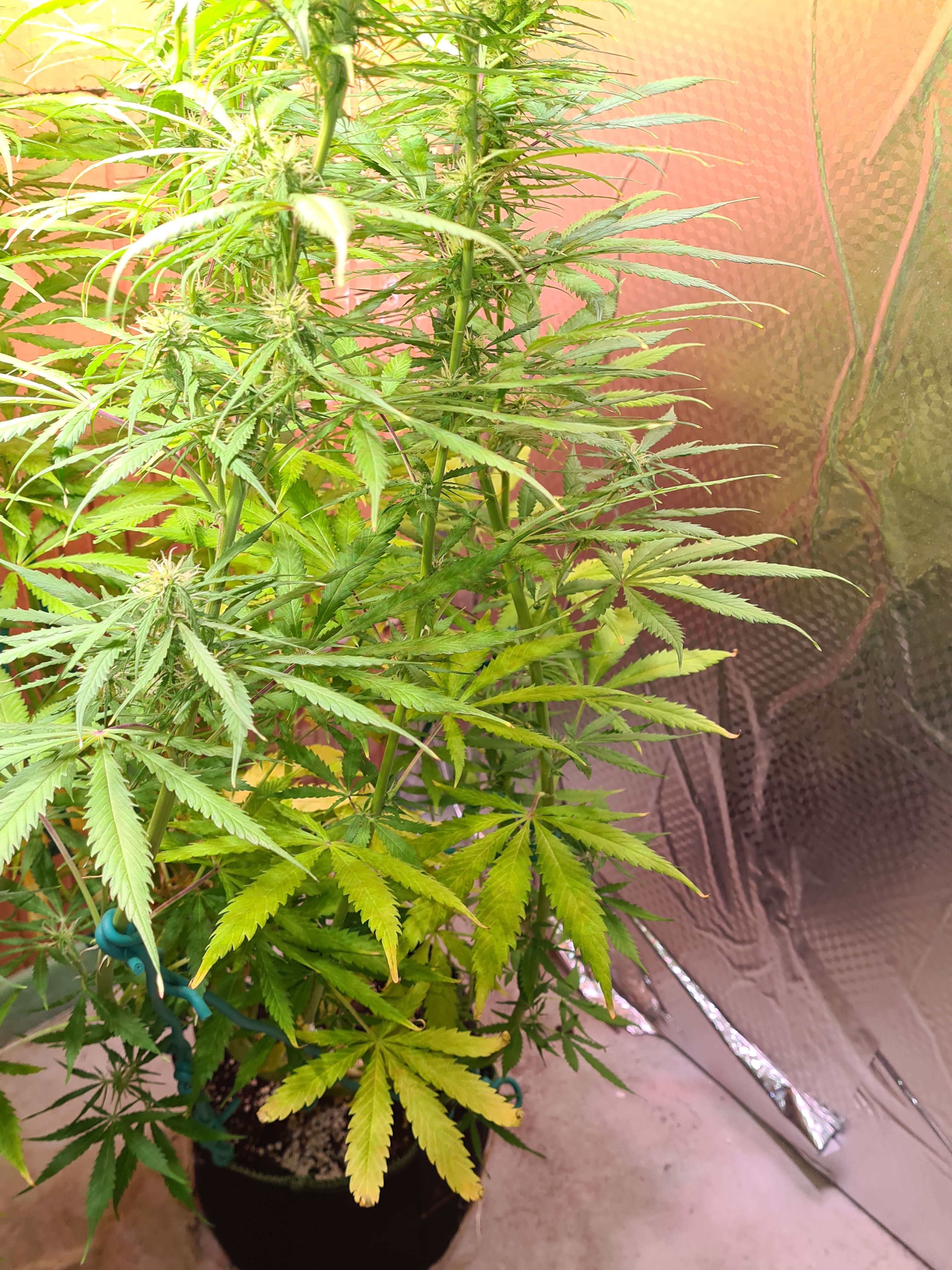 Und ja , muss sie nochnal runter biegen , bin da zwar kein Fan von aber naja xD , nächster grow kommen kleine Töpfe, 1 mal toppen und dann wird da garnix mehr dran gemacht , je weniger Arbeit desto besser ^^