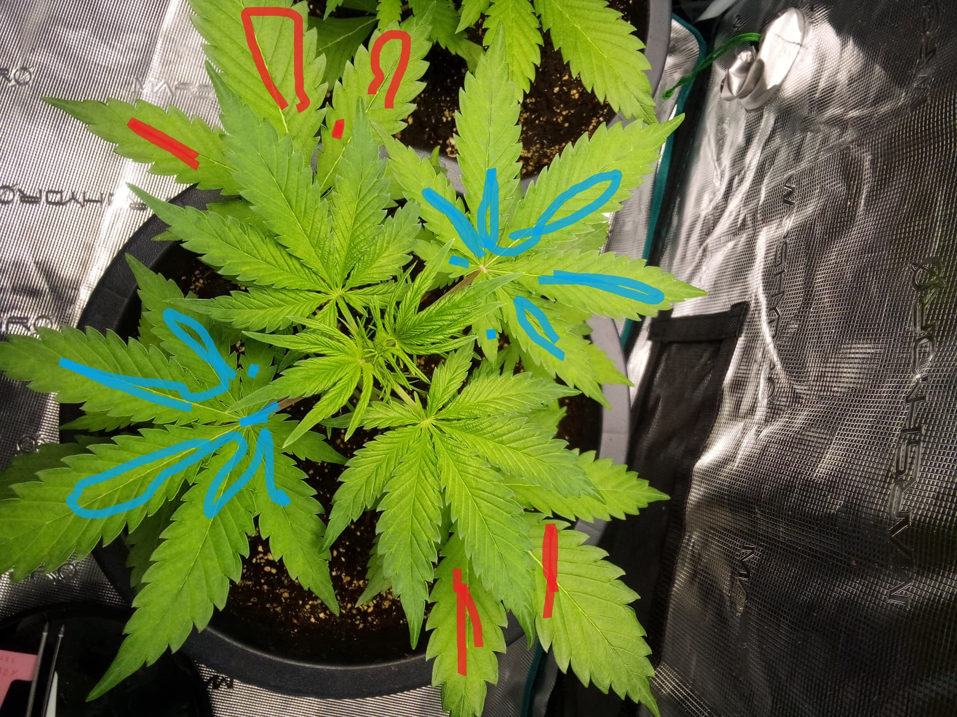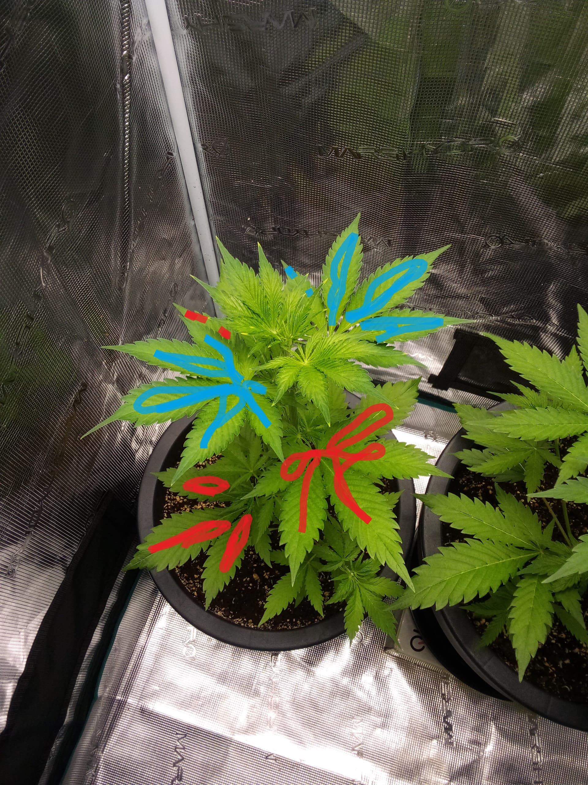 Ich würde da momentan noch gar nichts entlauben, wirklich verdeckt wird nichts und in der Phase zählt echt jedes Blatt. Warte mal noch 10 Tage, dann sehen die schon ganz anders aus vong Blattmasse.