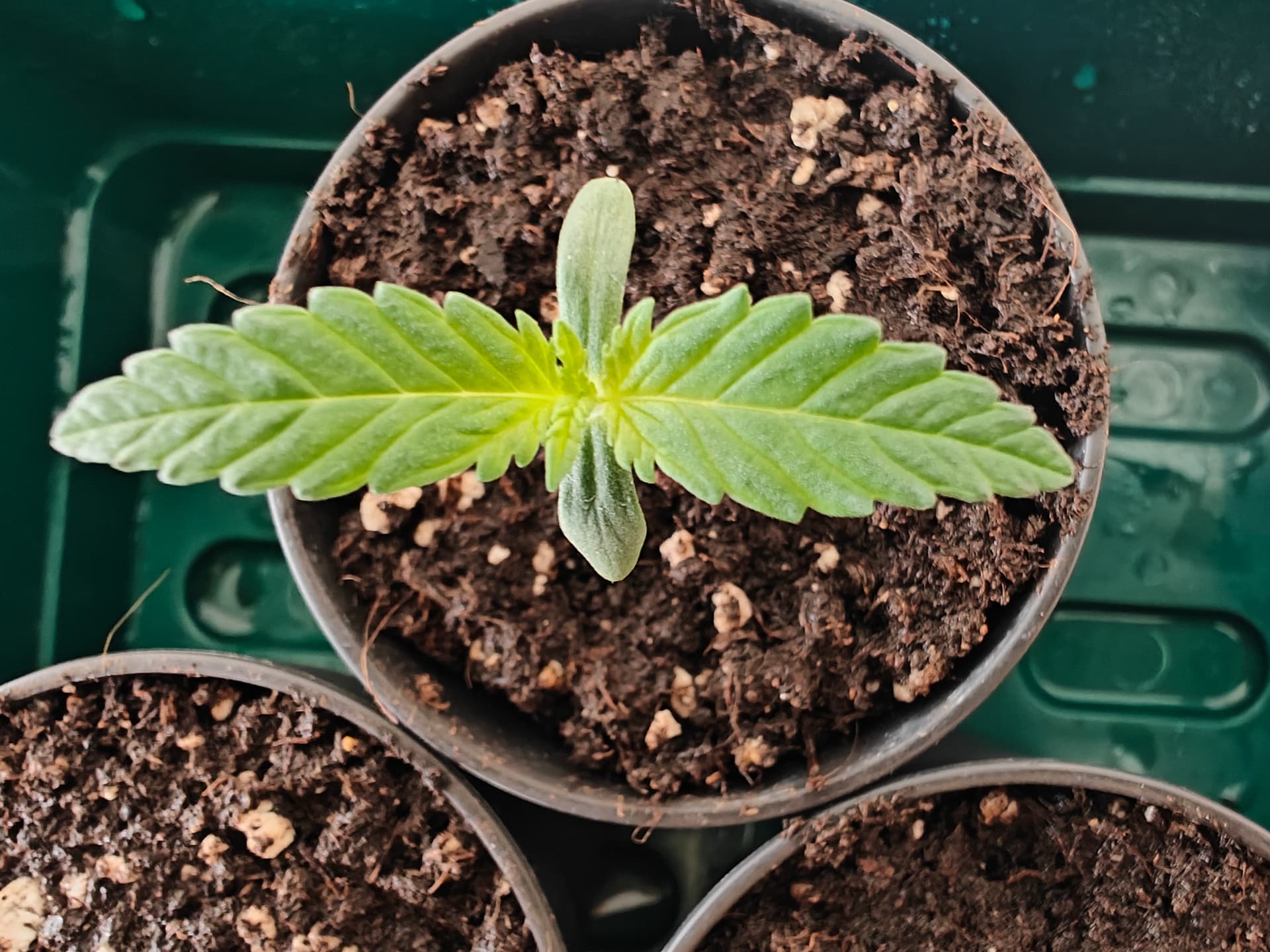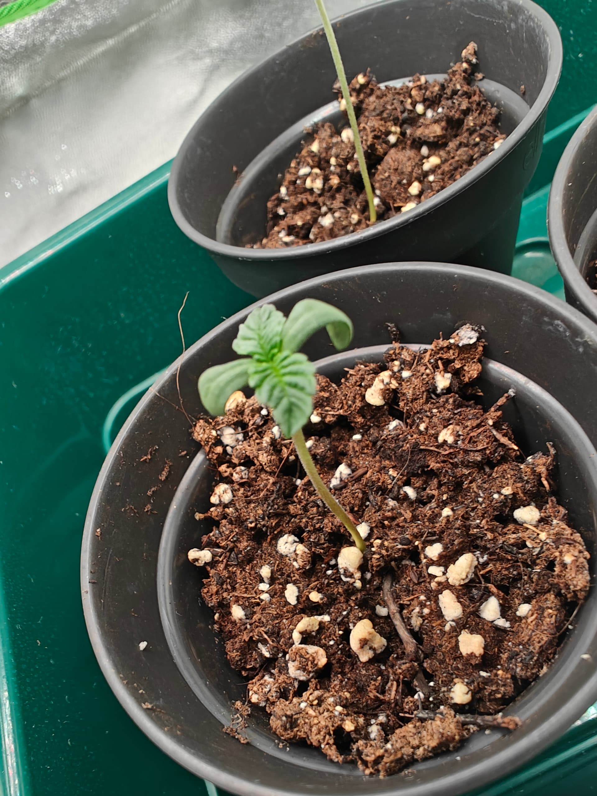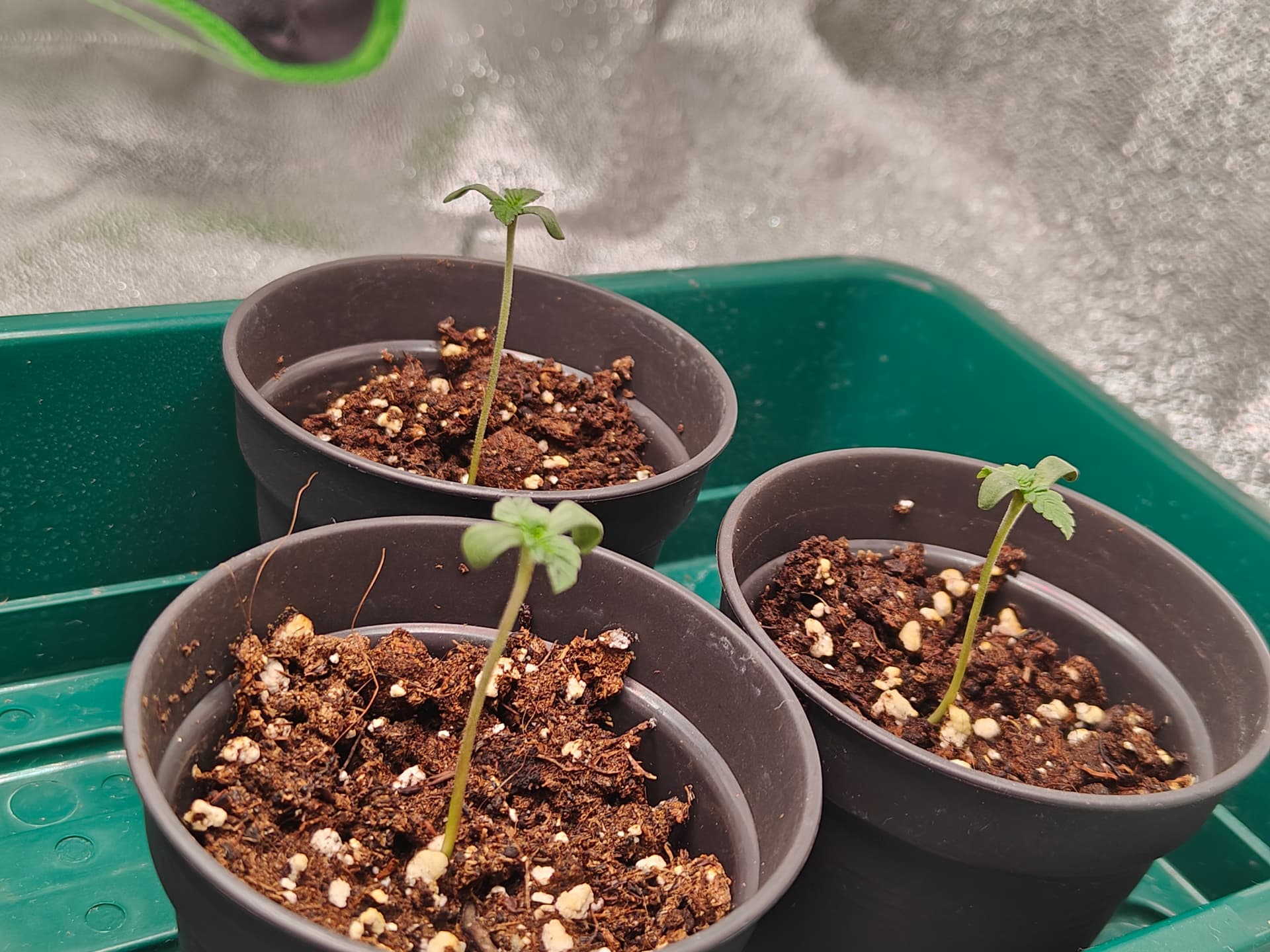 Ich habe Leitungswasser(PH 6.3) 125 ml und Bio bizz light mix 500 ml in einer Glasschüssel gemischt das es gleichmäßig feucht ist und diese dann in gereinigte und mit Alkohol sterilisierte Anzuchttöpfe gegeben. Darin habe ich dann mit einem sterilen Metal-Schaschlikspieß 1 cm tiefe Löcher gemacht und die samen jeweils so eingeworfen das die samen spitze nach oben zeigt. Hatte gelesen das es hilft wenn man das so macht damit die pflanze besser wächst.