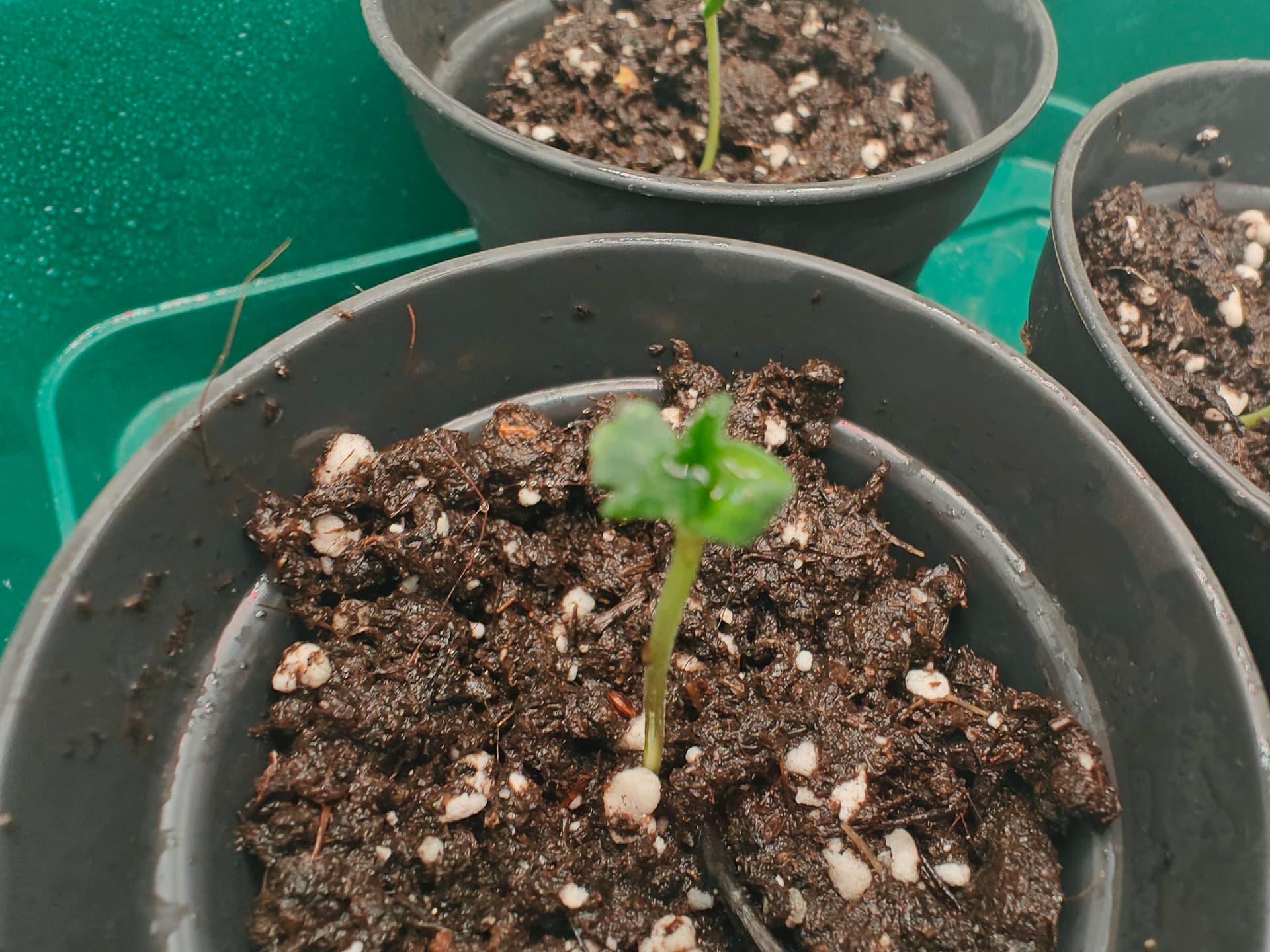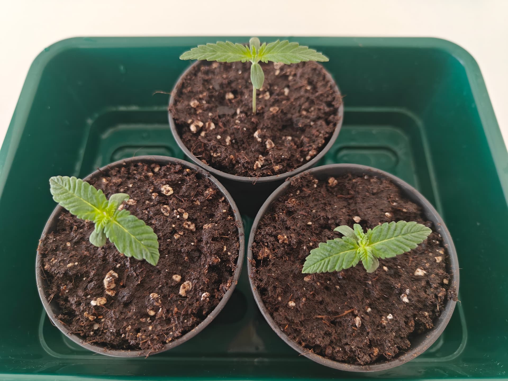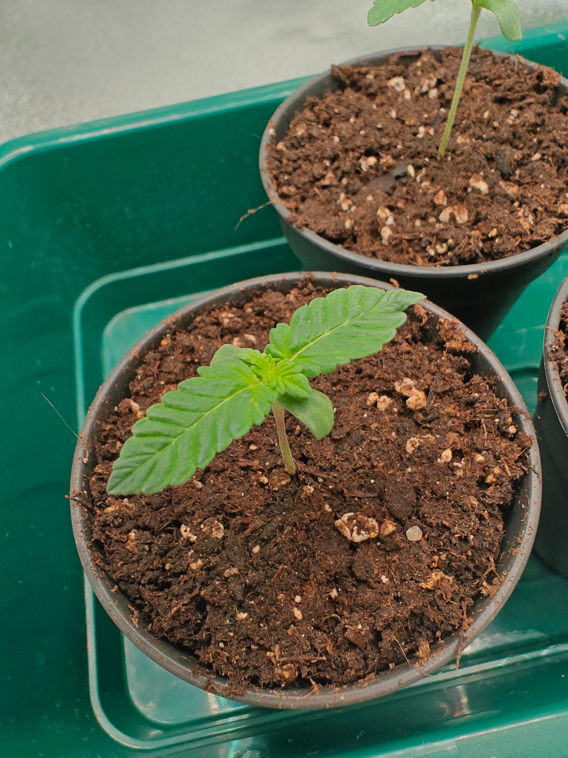 Ich habe Leitungswasser(PH 6.3) 125 ml und Bio bizz light mix 500 ml in einer Glasschüssel gemischt das es gleichmäßig feucht ist und diese dann in gereinigte und mit Alkohol sterilisierte Anzuchttöpfe gegeben. Darin habe ich dann mit einem sterilen Metal-Schaschlikspieß 1 cm tiefe Löcher gemacht und die samen jeweils so eingeworfen das die samen spitze nach oben zeigt. Hatte gelesen das es hilft wenn man das so macht damit die pflanze besser wächst.