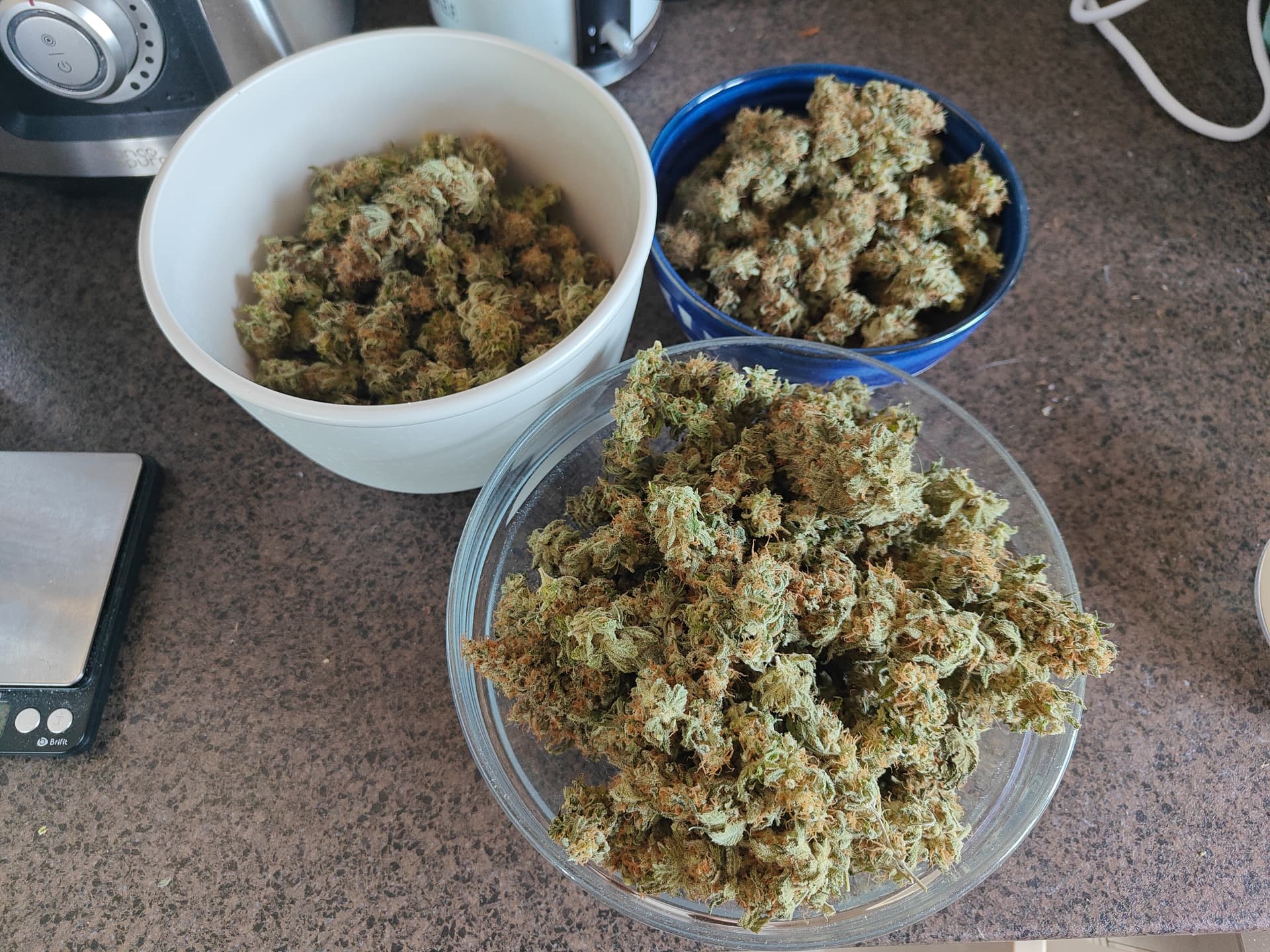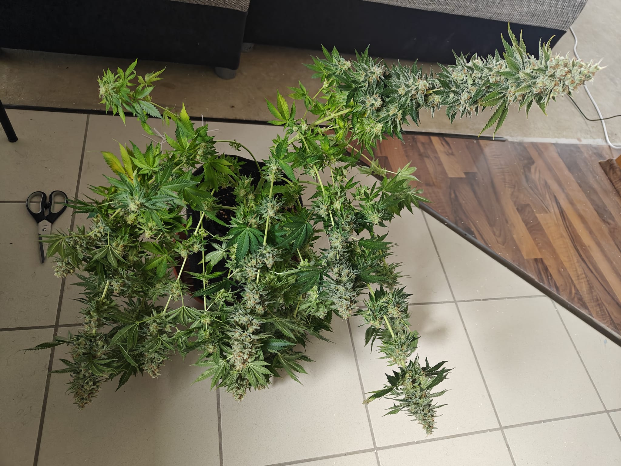 Ich hätte ehrlicherweise nicht mit soviel gerechnet ich muss wie das Gesetz das nun vorschreibt entsorgen bzw. vernichten was zu viel ist und behalte 50g der schönsten Blüten. Was mich wundert ist wieso so viele kleine popcorn buds da sind. Soll ich das nächste mal lieber nur eine pflanze nehmen und weniger Seitentriebe oder liegt das an der Sorte das die Blüten so klein sind?