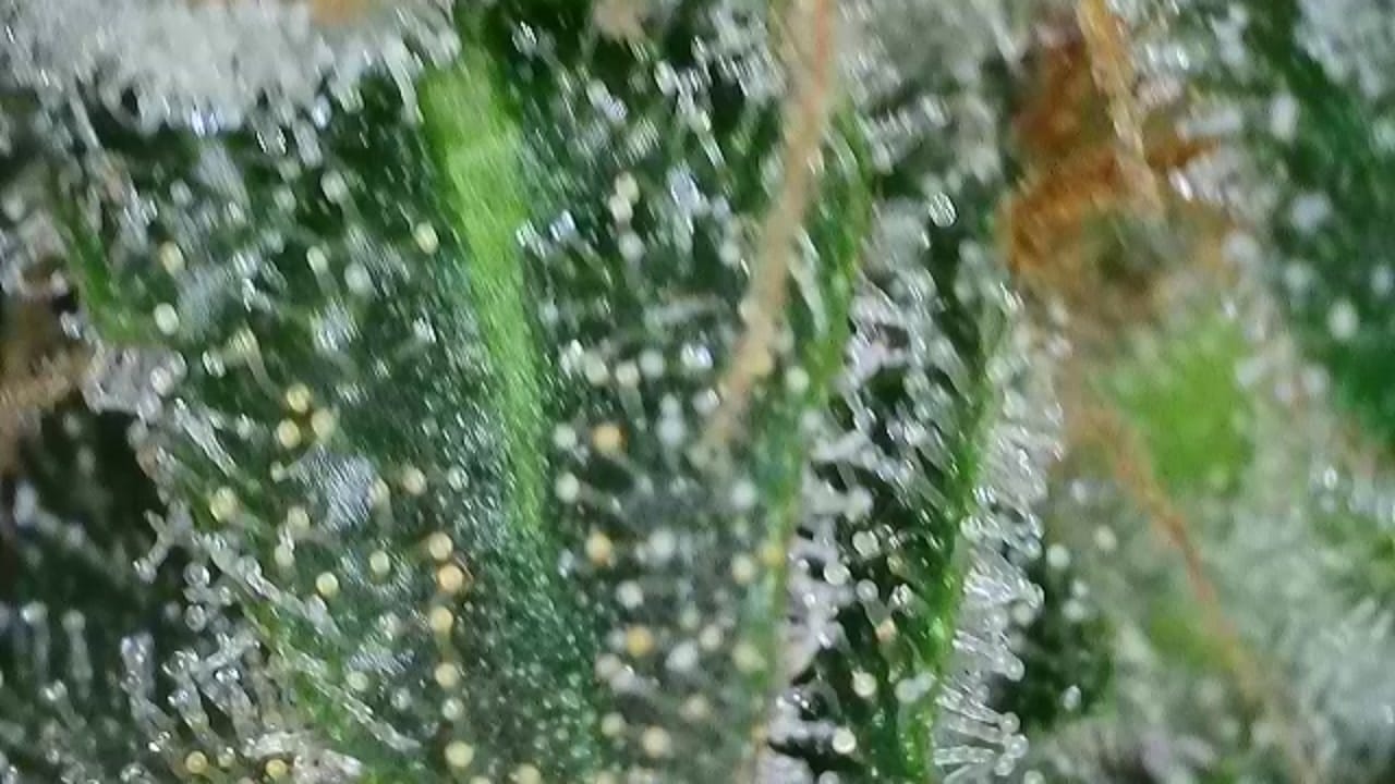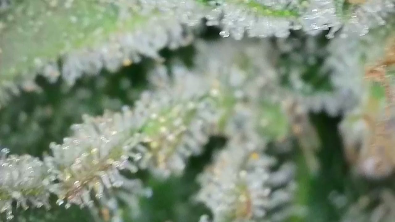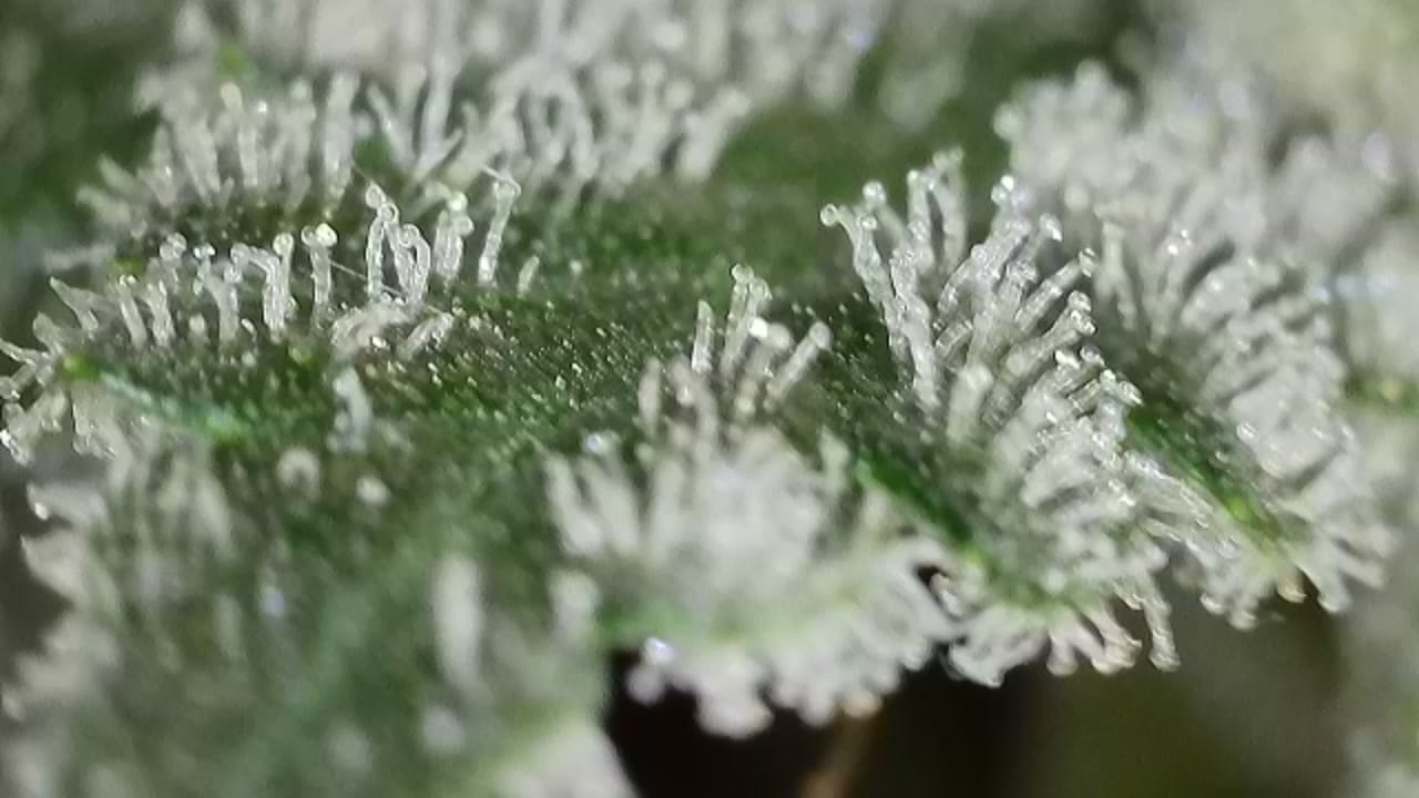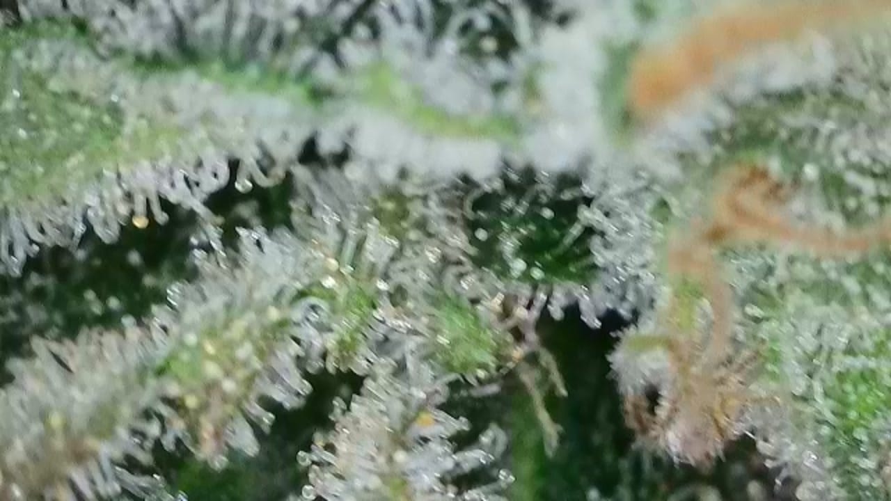 Die Härchen sind zu 90% rot/orange und die Trichome sind Großteils weiß/milchig und 5% bernsteinfarben.
