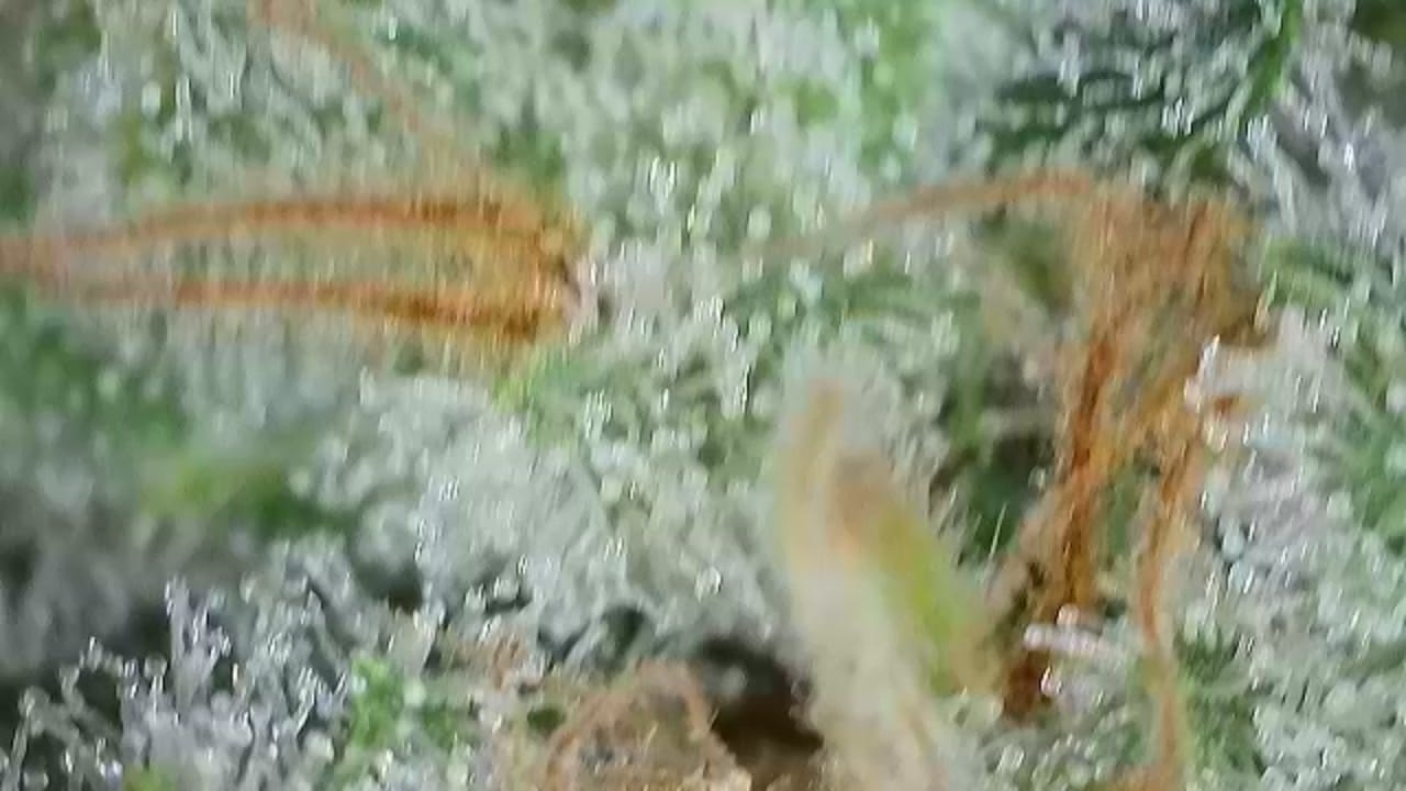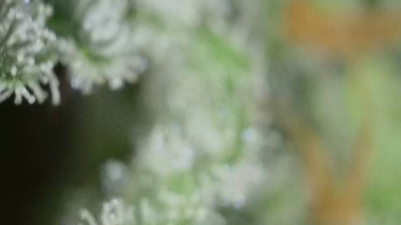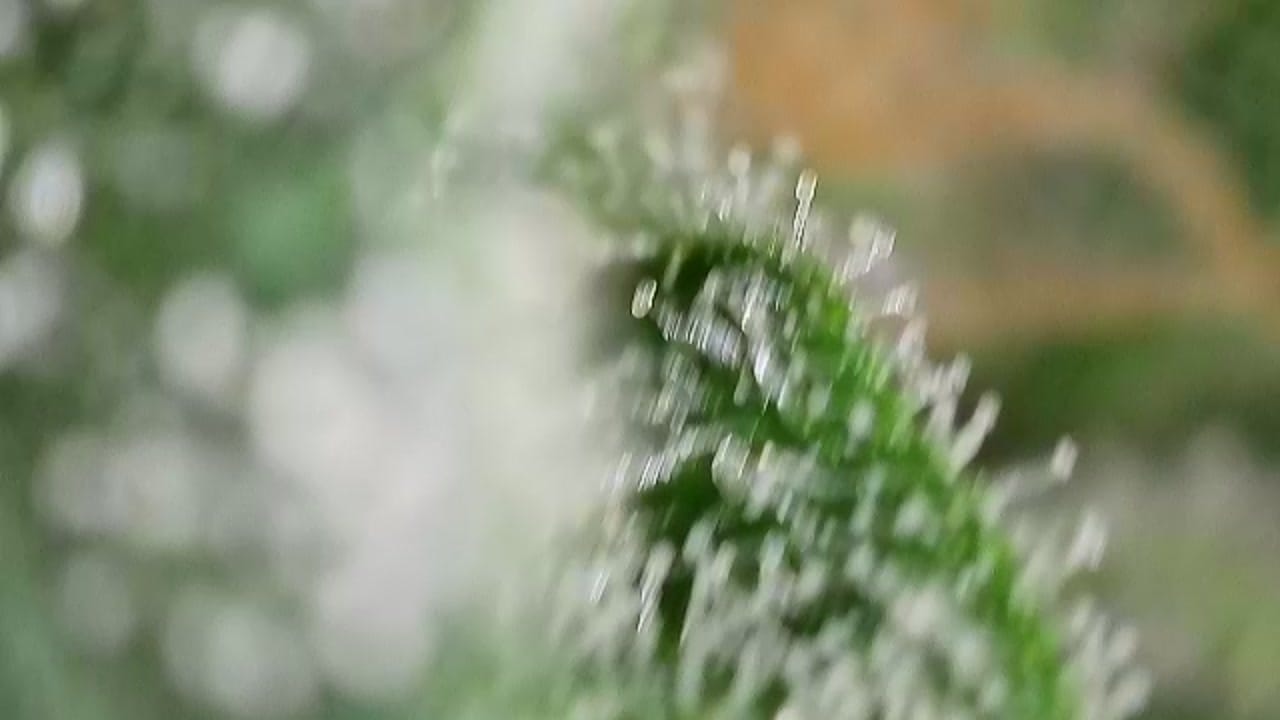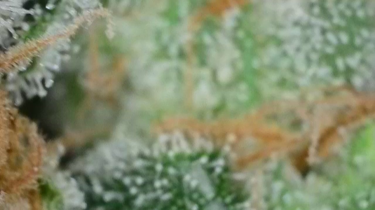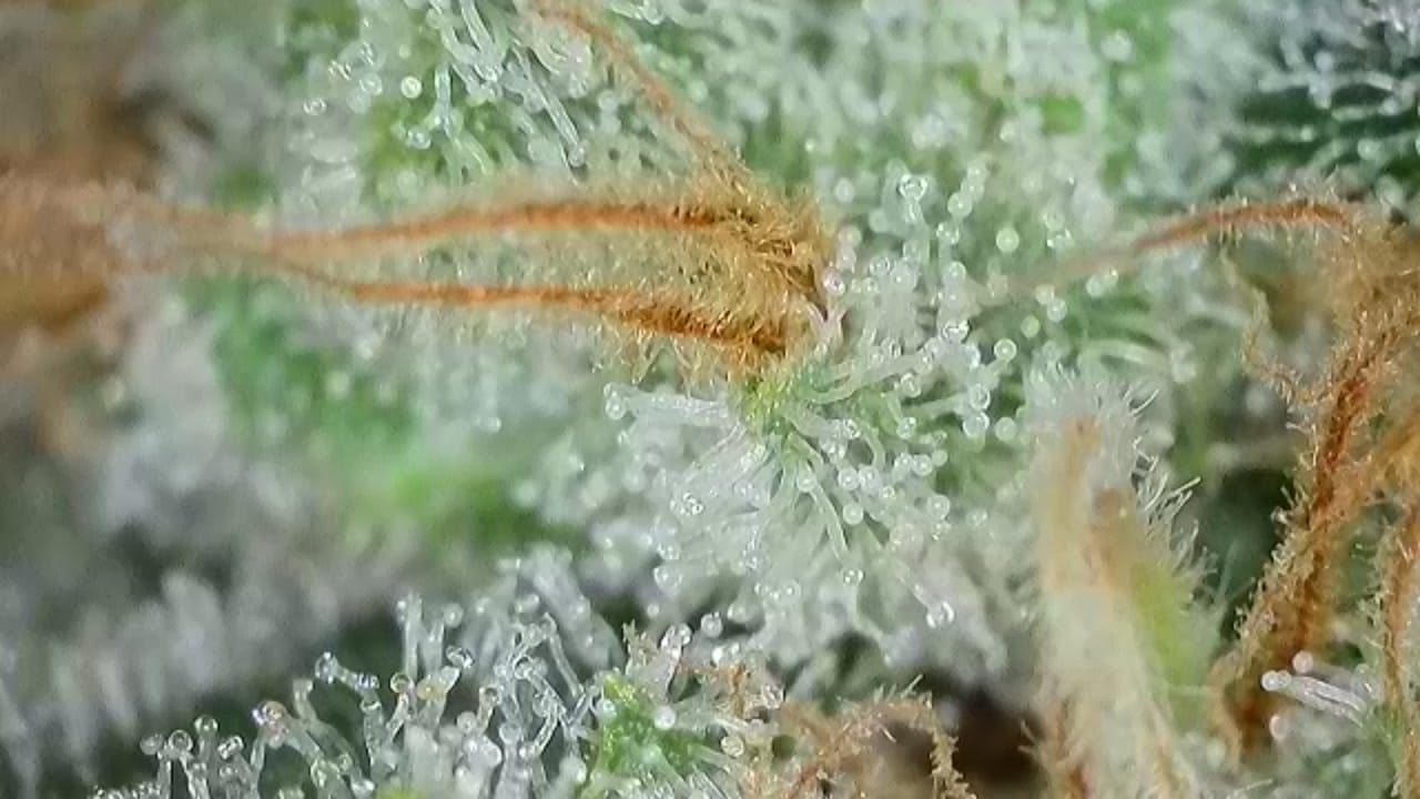 Die Härchen sind zu 90% rot/orange und die Trichome sind Großteils weiß/milchig und 5% bernsteinfarben.