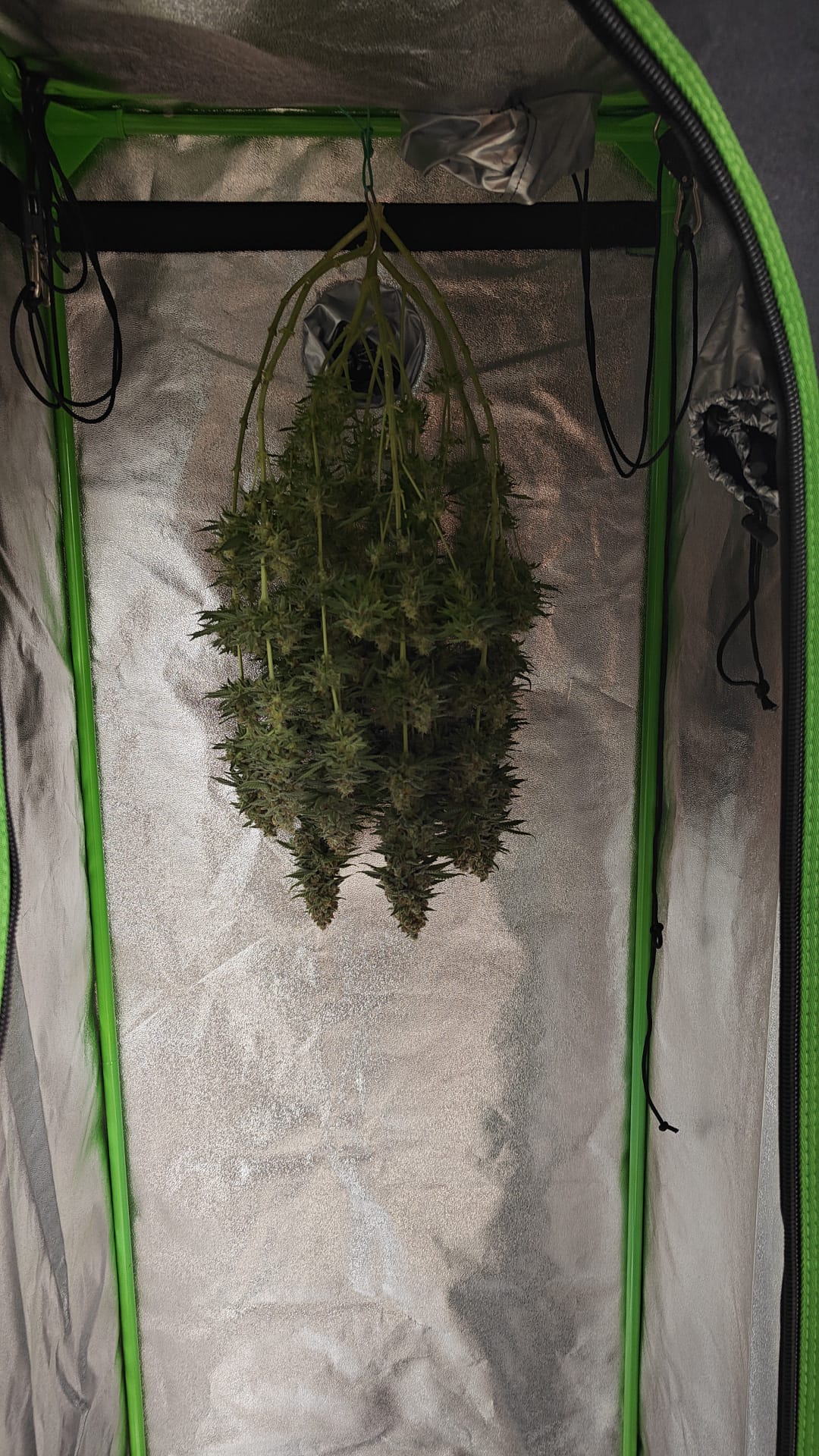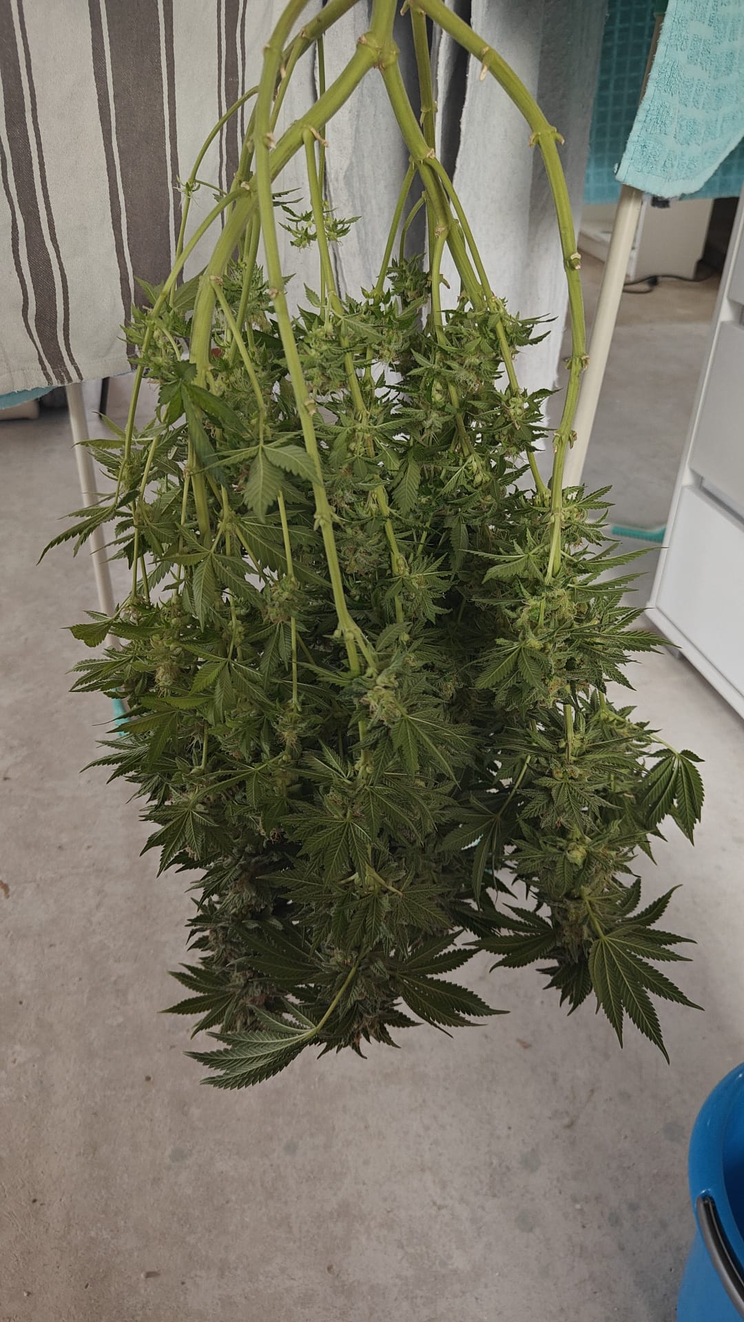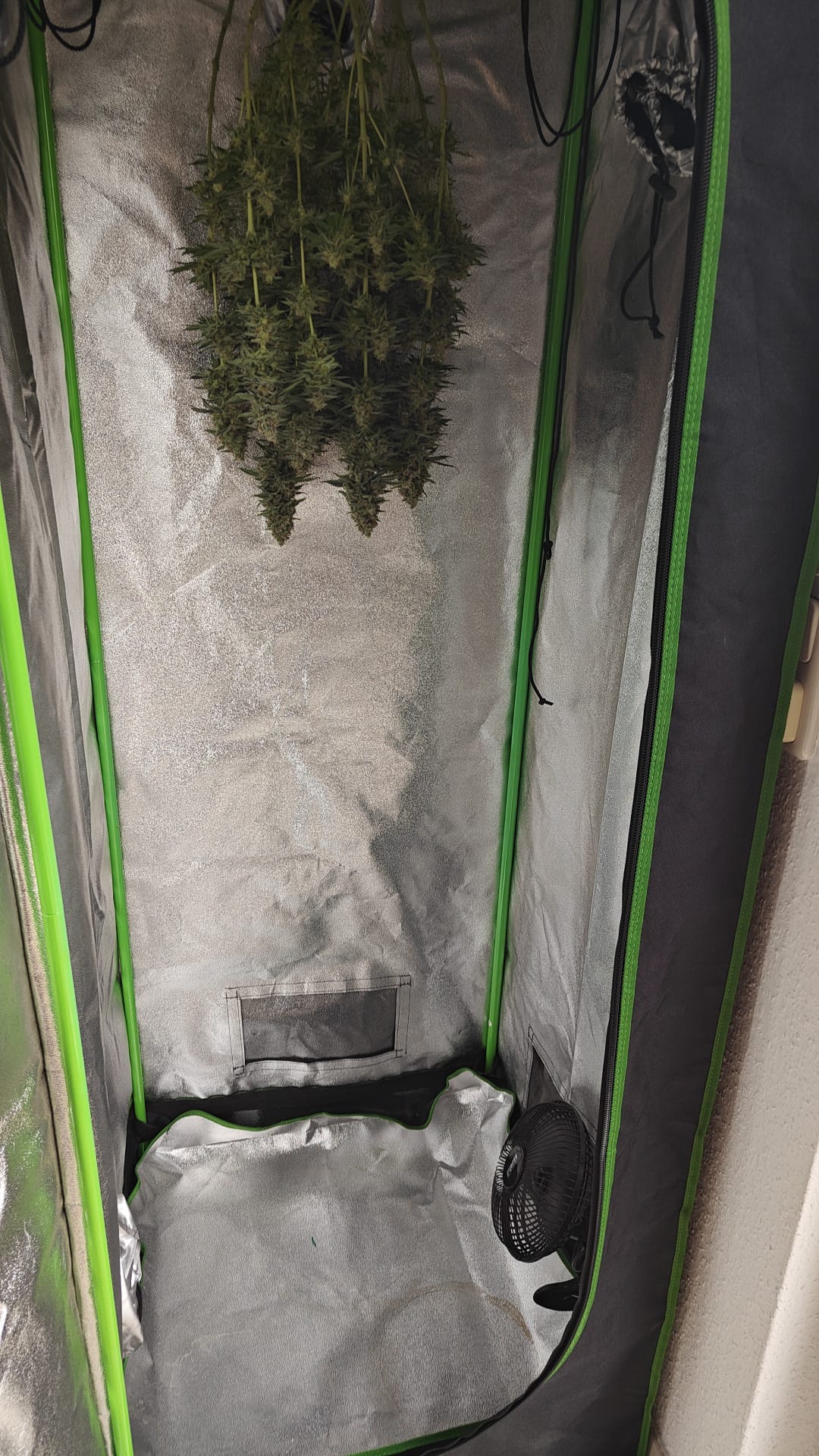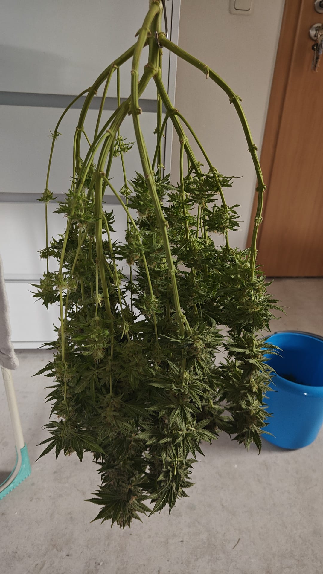 Heute ist es soweit Tag der Ernte. An einer Stelle habe ich beim schön schneiden gesehen das roter budrot Schimmel da war. Da die meisten Blüten aber klein sind ist der Rest schimmelfrei. Es sind am Ende 165g trocken geworden. Dazu kommen 25g Trim verschnitt die direkt in den Müll wandern.