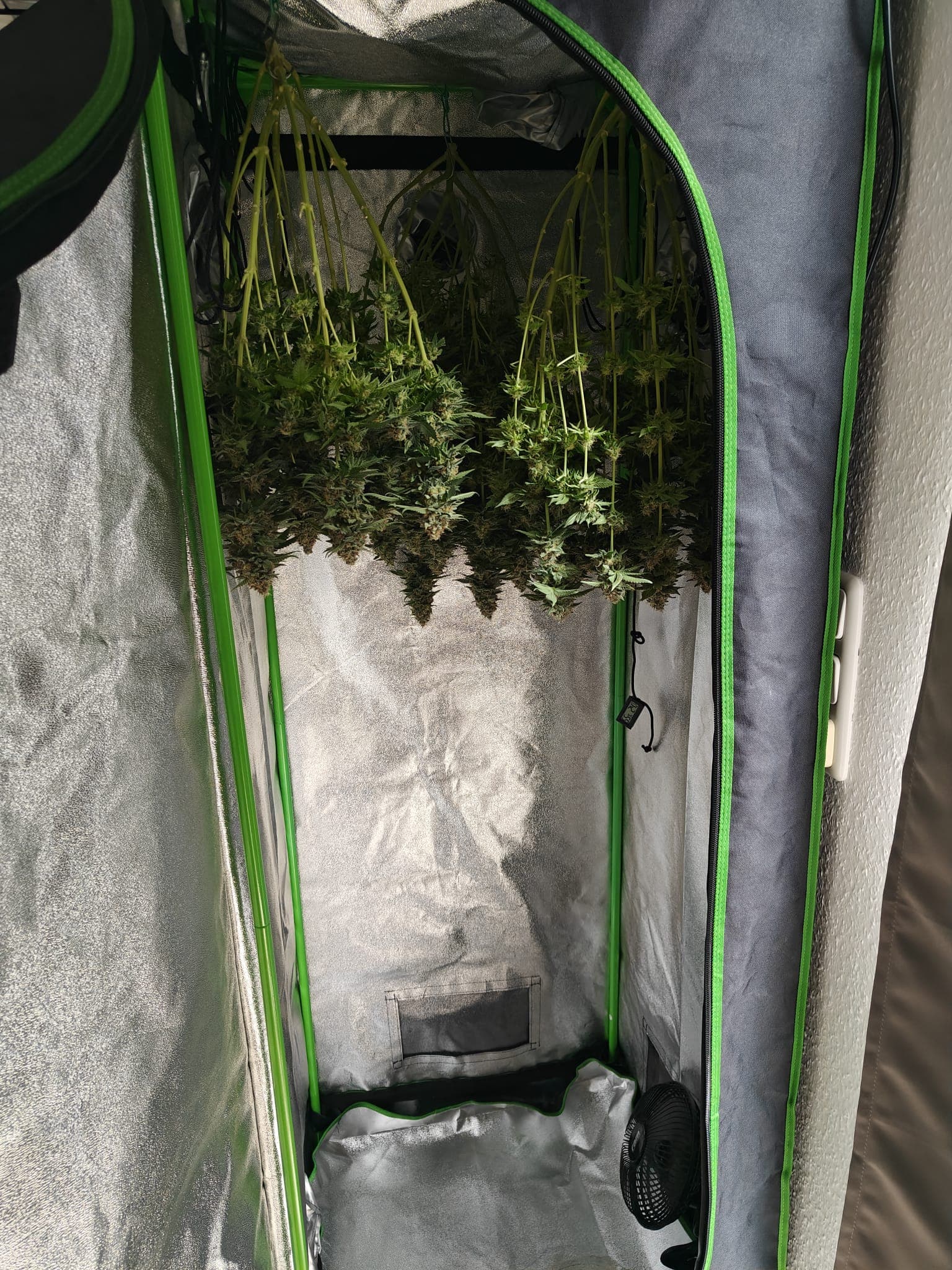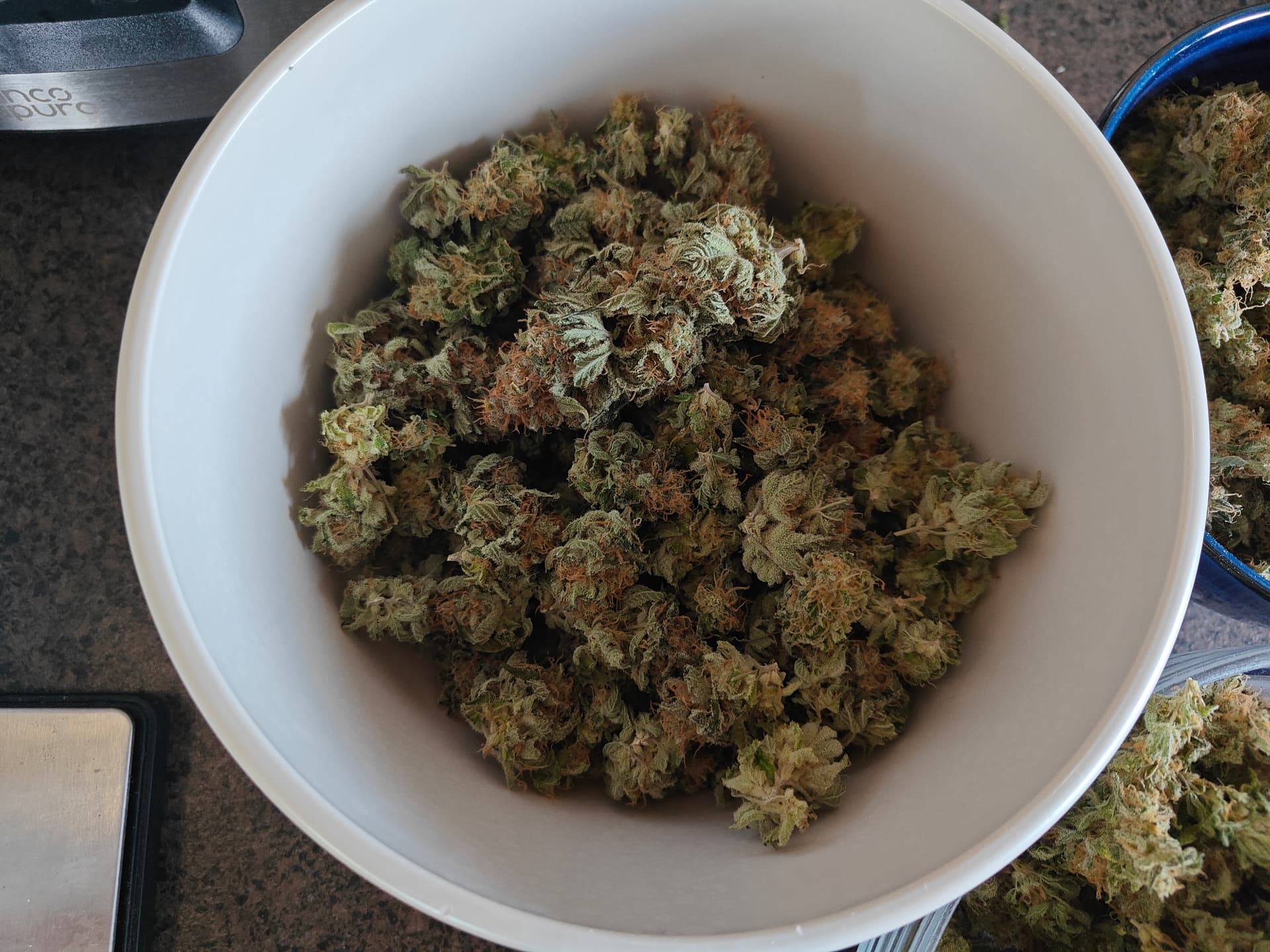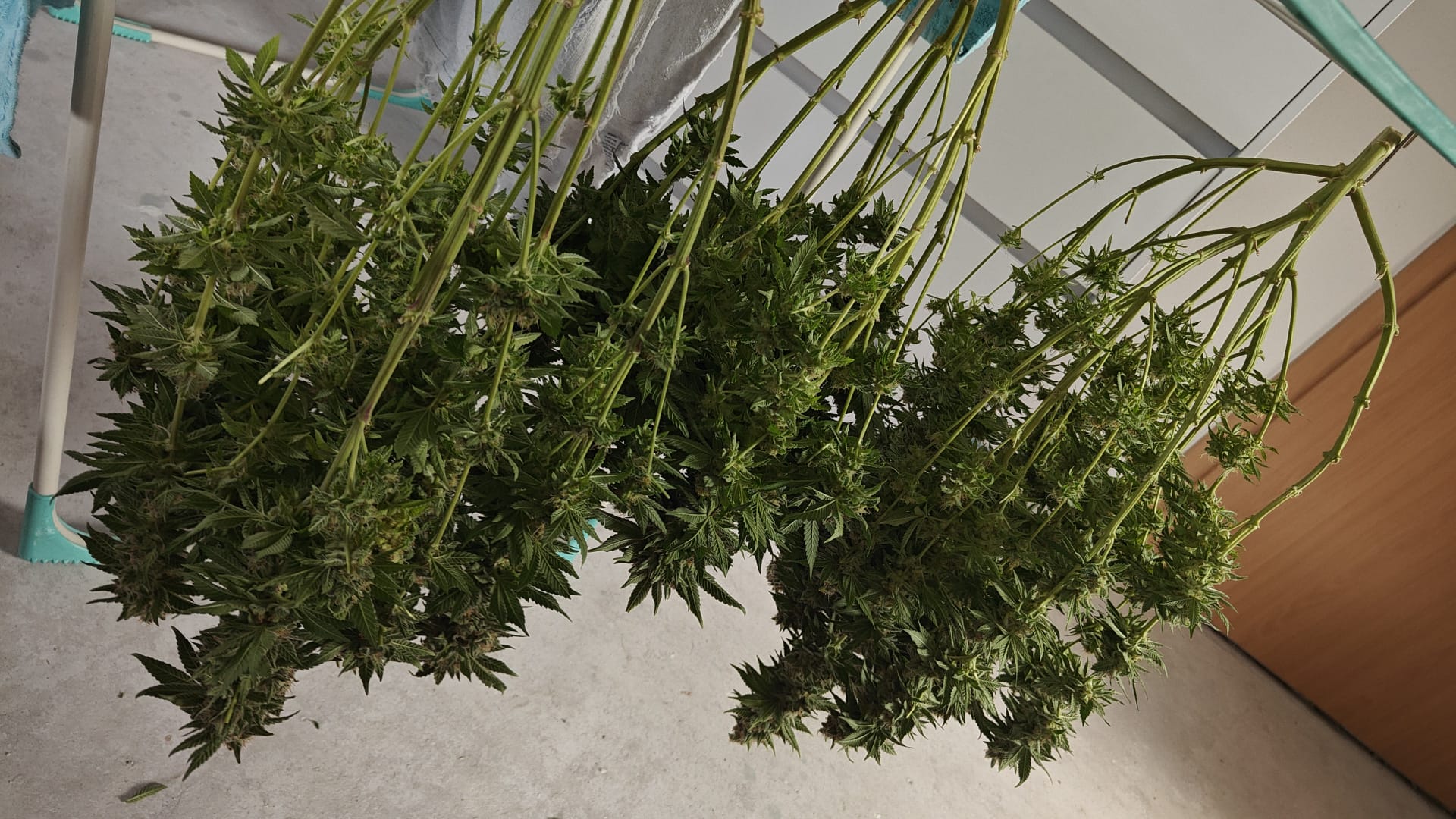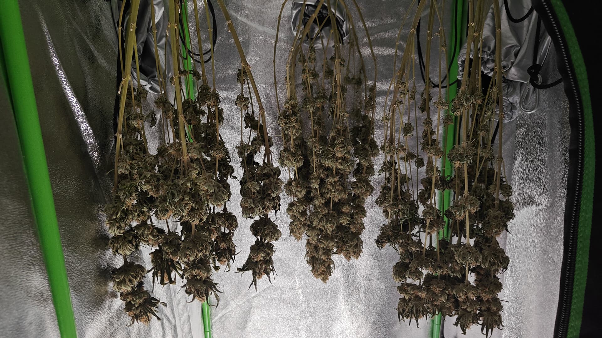 Heute ist es soweit Tag der Ernte. An einer Stelle habe ich beim schön schneiden gesehen das roter budrot Schimmel da war. Da die meisten Blüten aber klein sind ist der Rest schimmelfrei. Es sind am Ende 165g trocken geworden. Dazu kommen 25g Trim verschnitt die direkt in den Müll wandern.