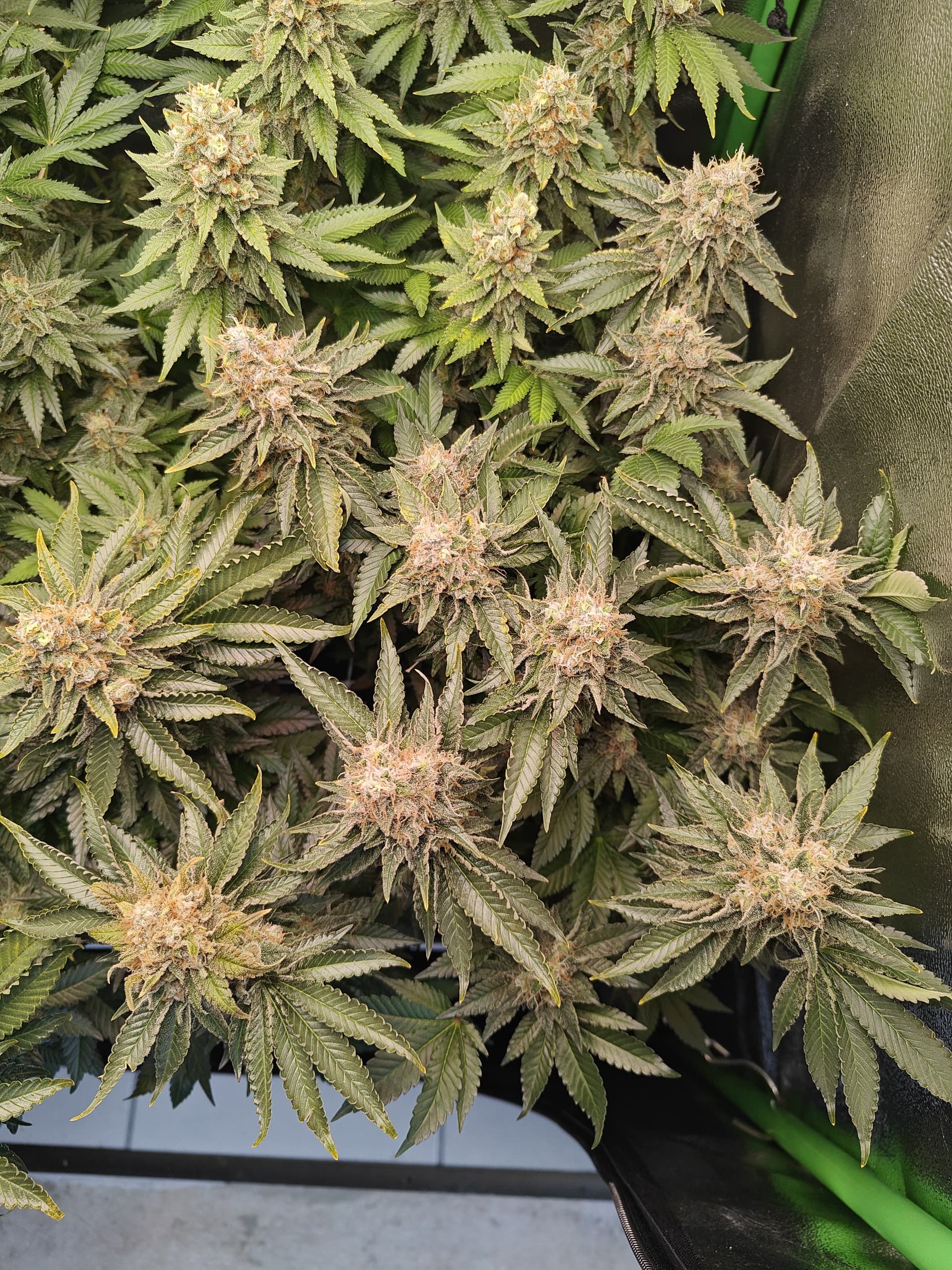 Ich habe auch schon ein paar probier buds abgeschnitten und ich empfinde die Wirkung schon als stark körperlich auch wenn nicht so viel bernsteinfarben ist. Ich glaube mehr bräuchte ich da nicht so wie das ist gefällt mir das schon. Bei mir ist die Wirkung stark und langanhalten 2-3 stunden. Die Wirkung sorgt bei mir für ein deutlich gesteigerten Appetit, leichte euhporie, leichte müdigkeit, ein gefühl von druck und schwere als würde eine schwere weiche decke auf einem liegen aber nicht zu stark das es unangenehm wird, ich habe versucht dabei was zu zocken das war aber quasi nicht möglich haha. Dazu kommt ein Orangiger süßlicher Geschmack der leicht würzig ist. Das Aroma kommt mir nicht so intensiv vor ich hoffe das wird beim trocknen etwas intensiver.