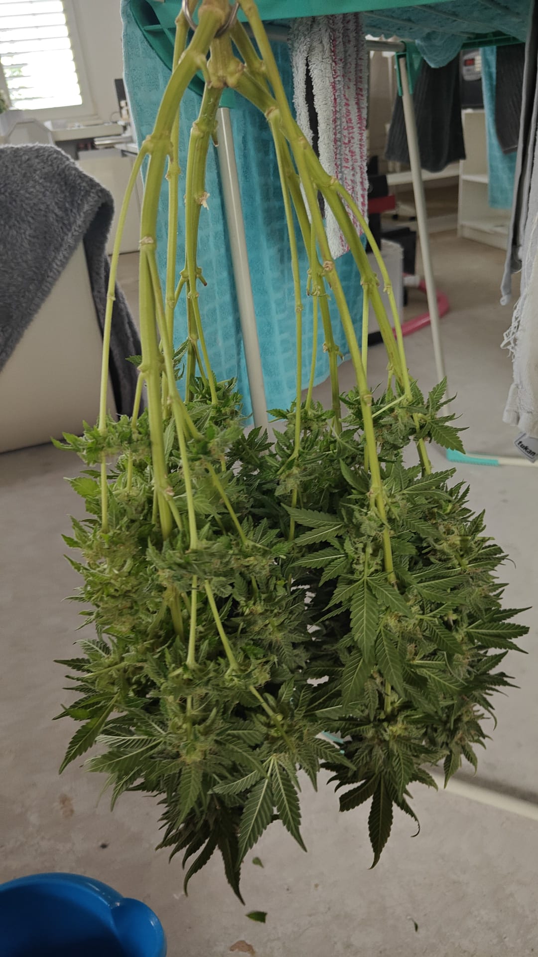 Geerntet habe ich nach der Dry Trim Methode also den Stamm abgeschnitten und die großen Blätter abgeschnitten.
