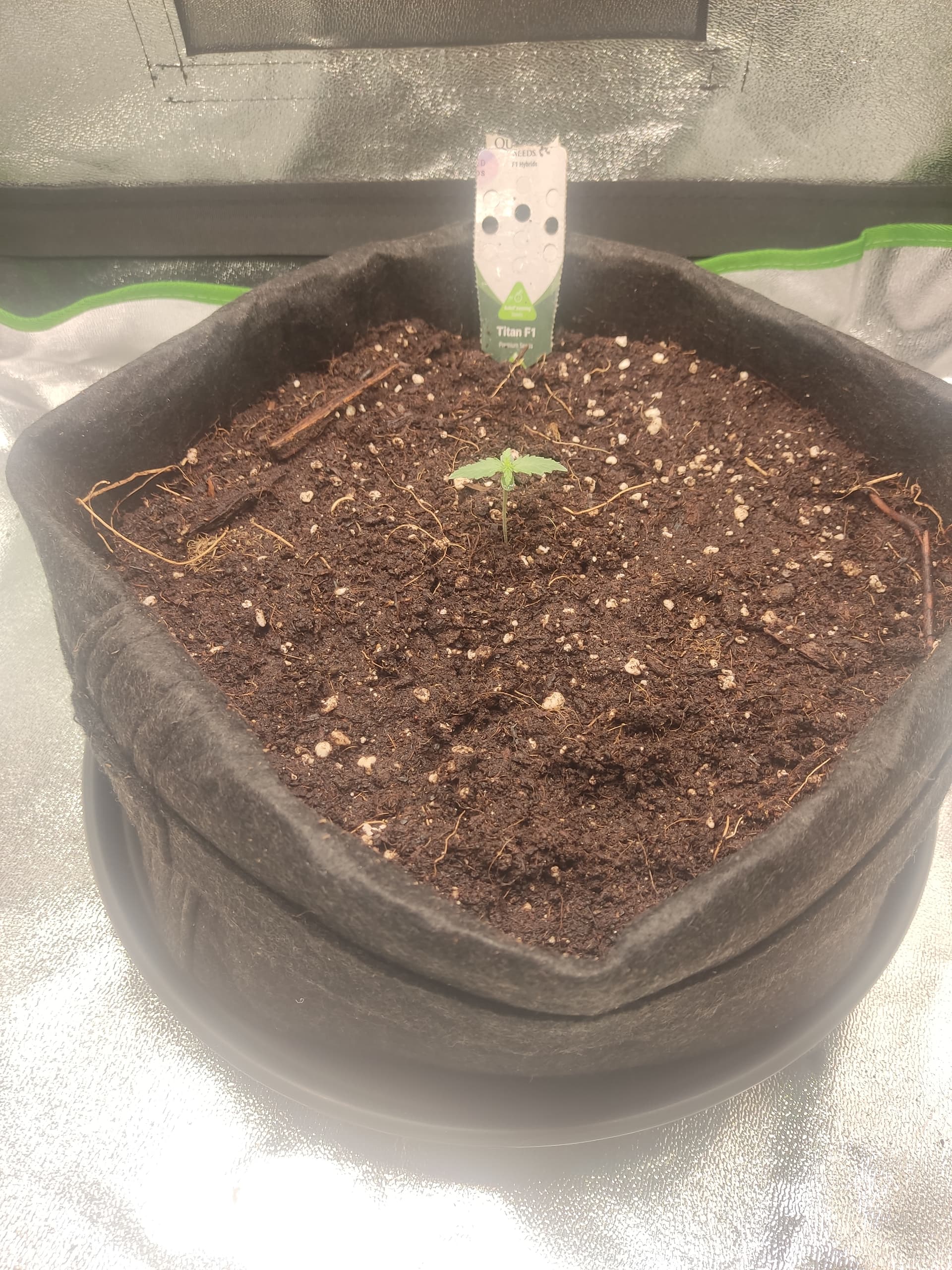 Die Titan F1 habe ich am 28.4. direkt in den 11l Stofftopf mit Living Soil gepflanzt und befindet sich heute Tag 5 in der Sämlingsphase. Die Erdmischung war noch ein Rest von einem Freund und hat den Topf leider nur zu 2/3 gefüllt. Daher gleich mal die erste Frage. Kann ich das später noch auffüllen?