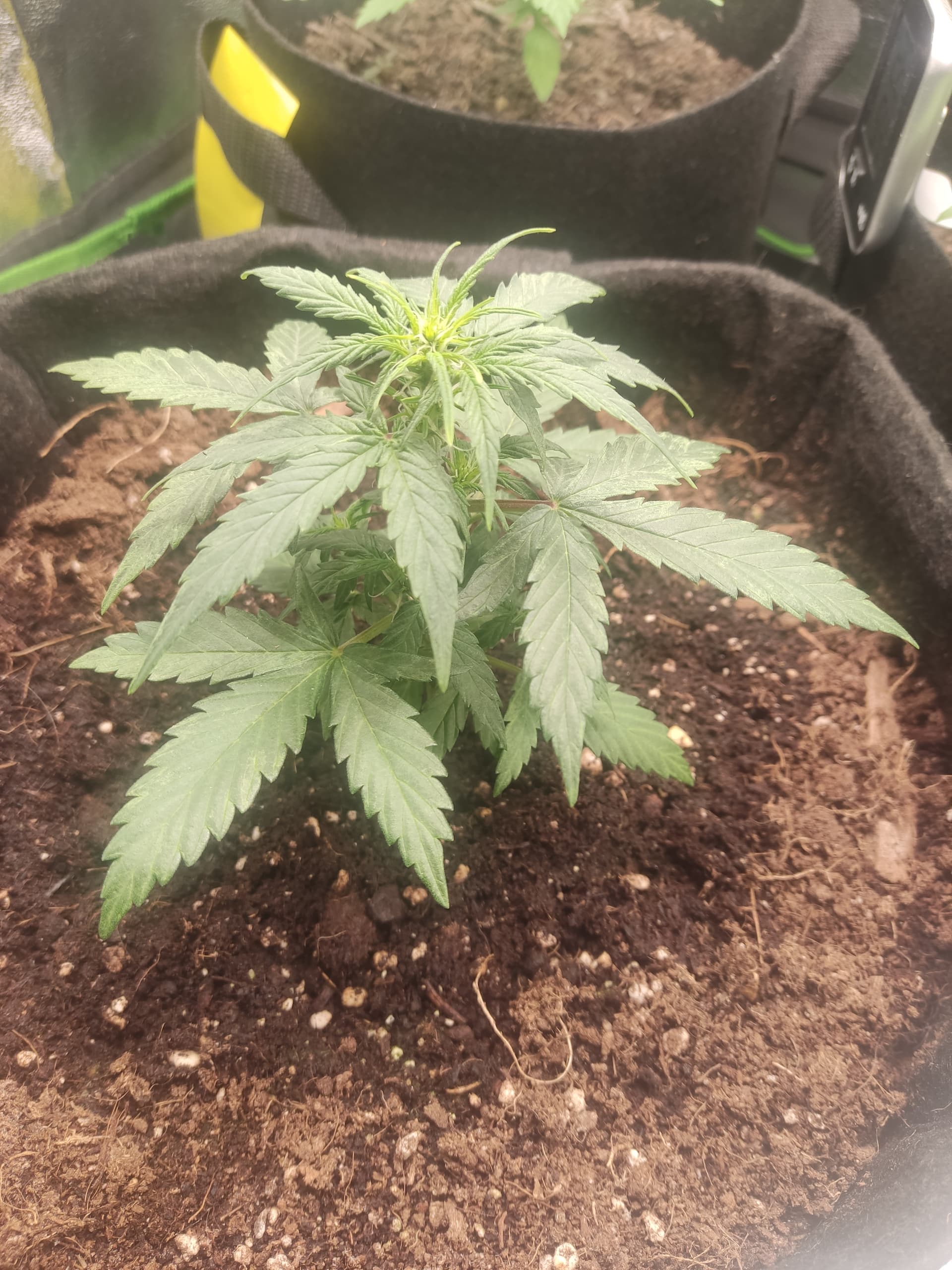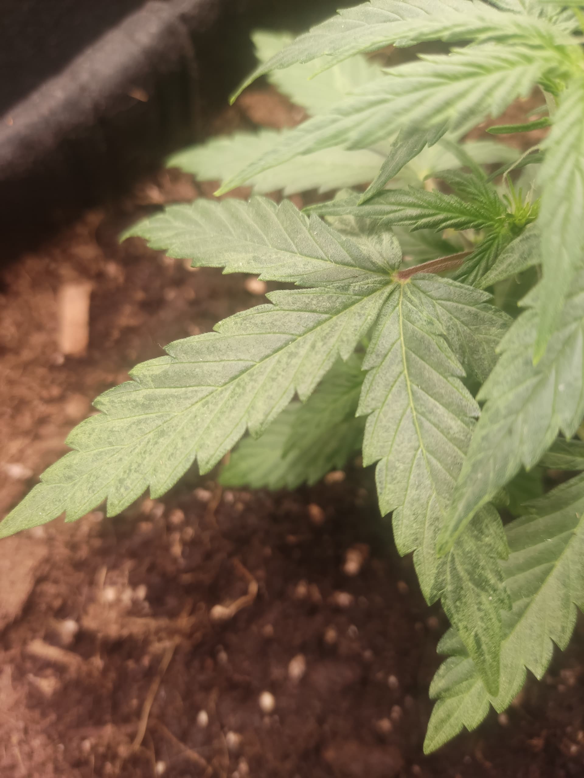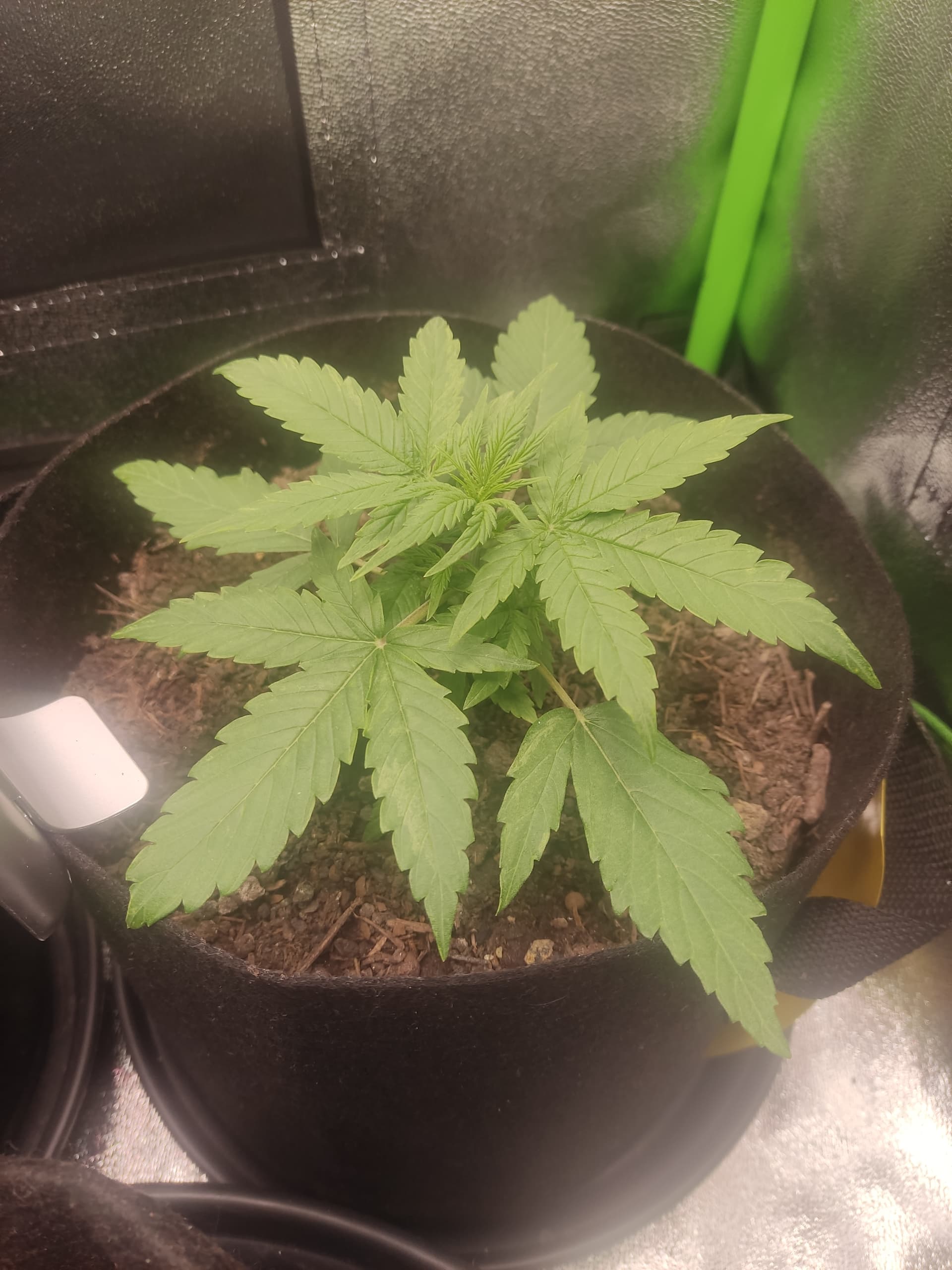 Titan F1 (1) 25 Tage. 15cm und entwickelt die ersten Blüten. Ich glaube der BB Mix ist ihr zu Bizzig. Dunkelgrüne Blätter und irgendwelche Flecken. Wächst auch von Anfang sehr langsam.