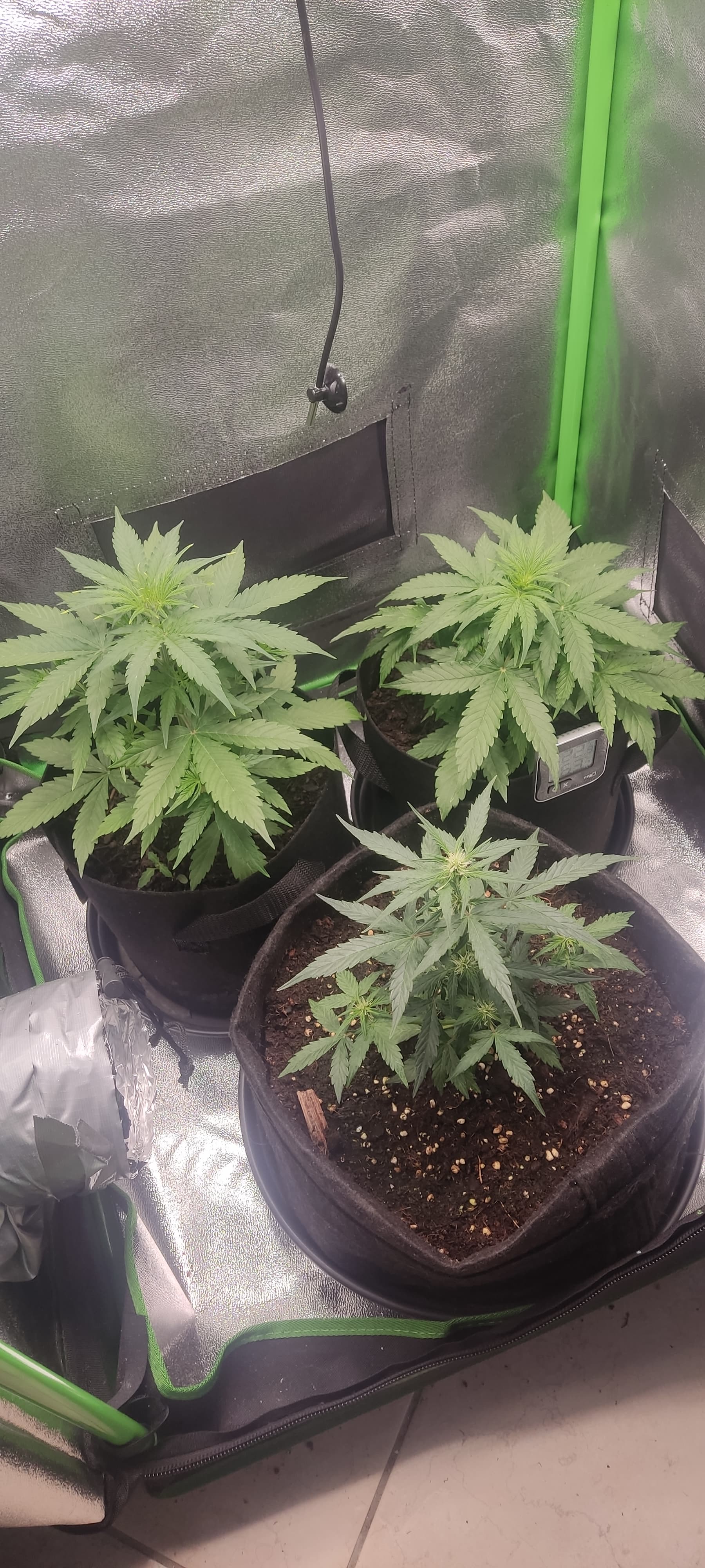 Mal sehen wie sich das mit meiner 120cm Zelthöhe verhält. Ich habe noch 15cm Luft mit meiner Lampe, und ich befürchte das die beiden hinteren Pflanzen min. nochmal doppelt so groß werden. Wird spannend.
