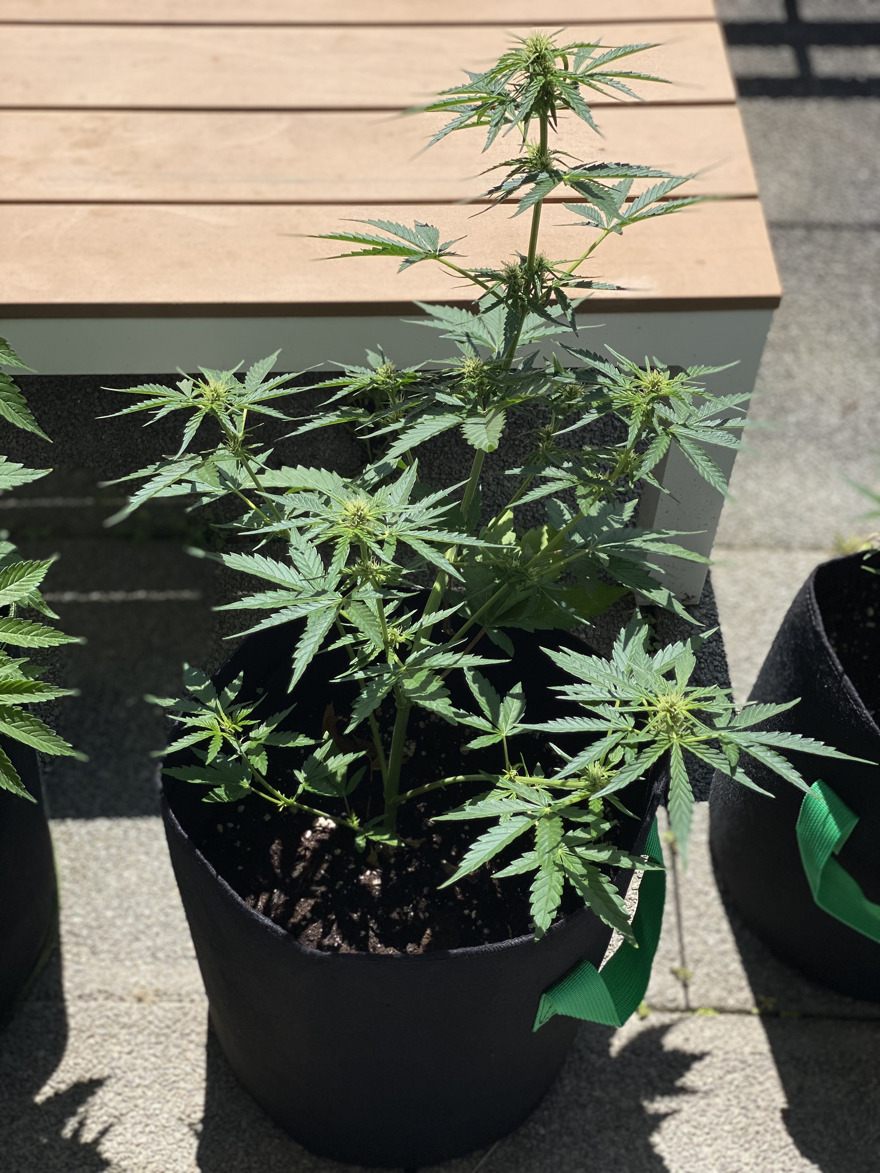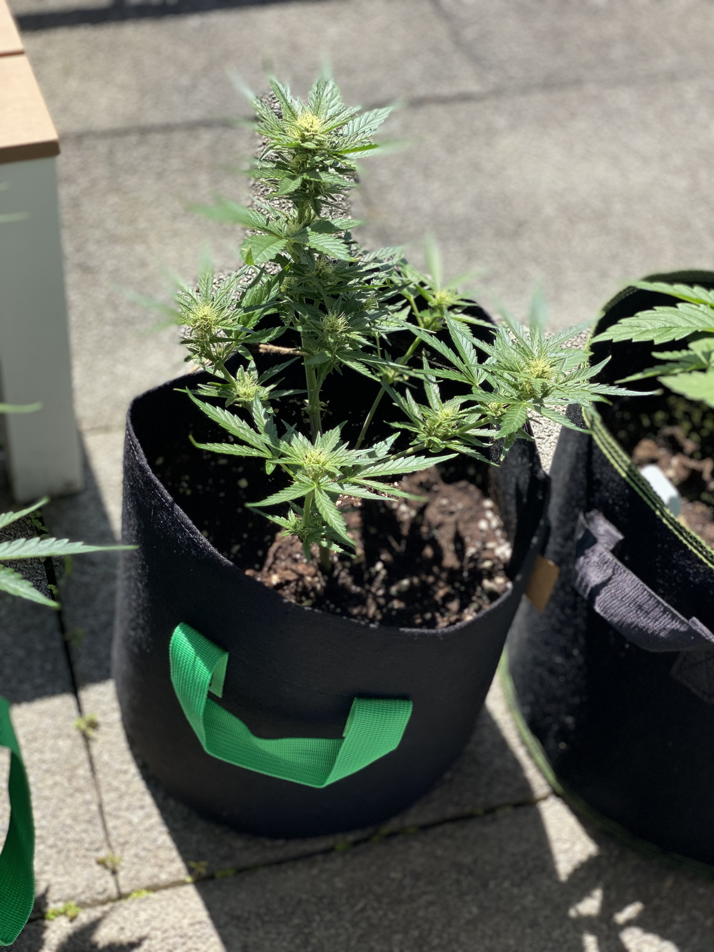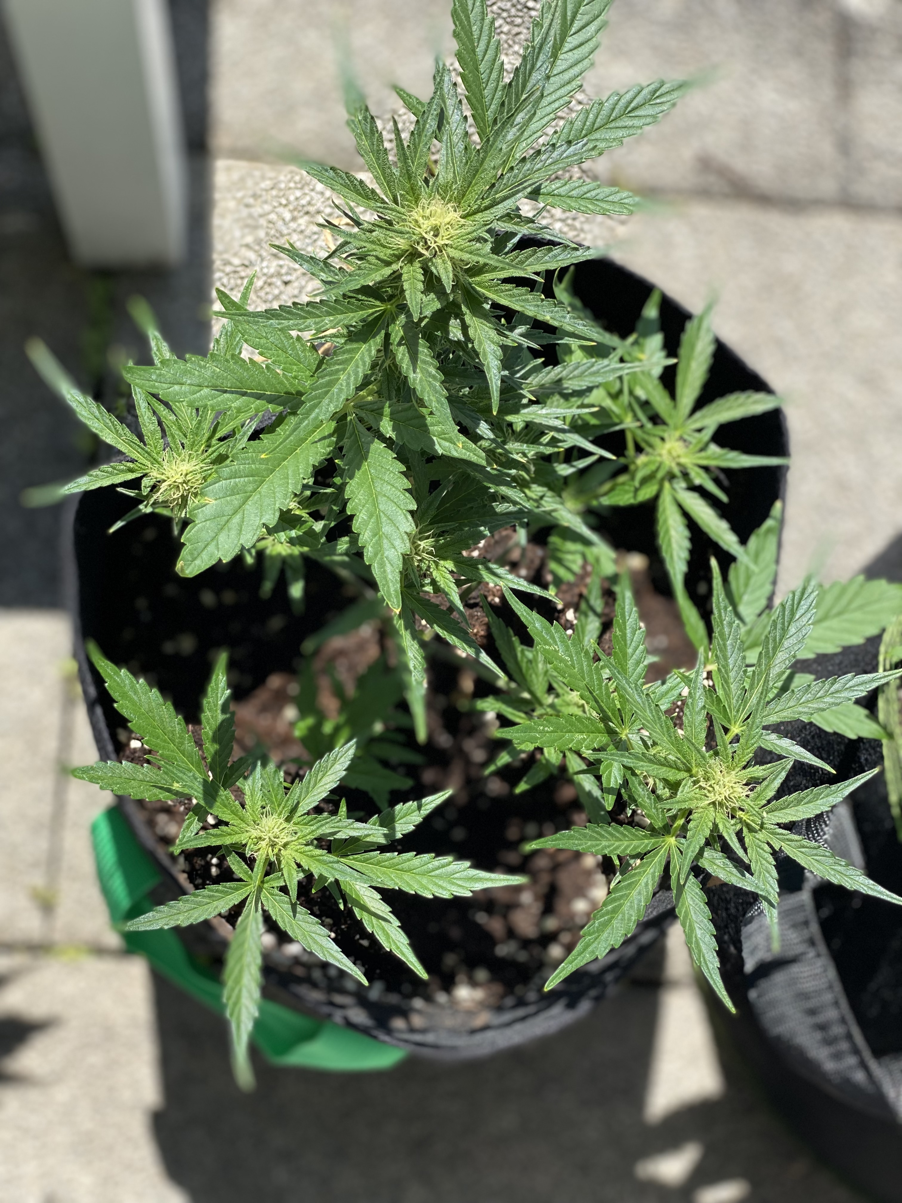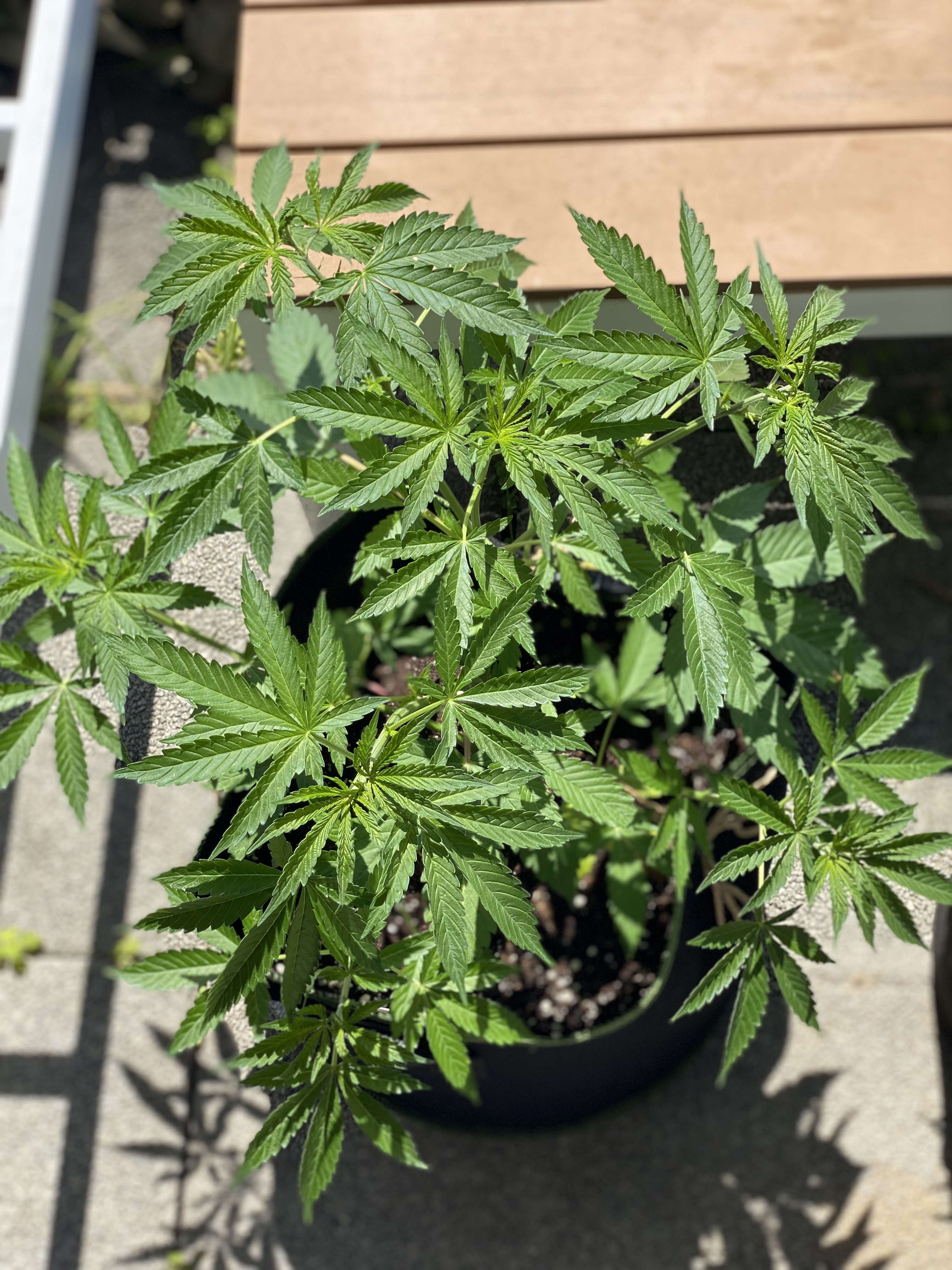 So, fast einen Monat ist’s her und die Pflanzen stehen seit dem 12.05 auf der Terrasse. Nach dem Umtopfen in den Endtopf haben die Pflanzen nochmal einen richtigen Schub hingelegt, seitdem sehe ich ab und zu saugende fliegen oder mini Läuse, versuche aber so gut es geht alle Schädlinge mit der Hand zu entfernen. Insgesamt haben es 4 Stück auf die Terrasse geschafft.