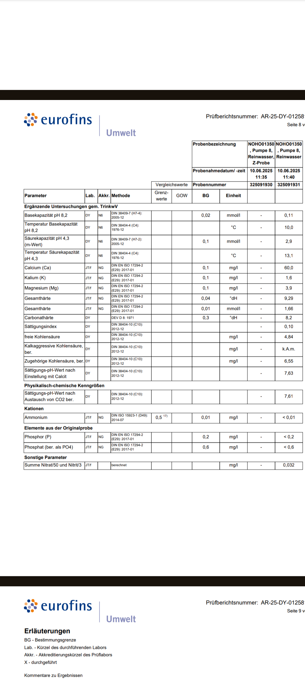 Ich werde mich drum kümmern das die Wasserwerte im Labor gecheckt werden, wird mir aber wahrscheinlich erst im nächsten run dann weiter helfen weil ich schon so weit bin.