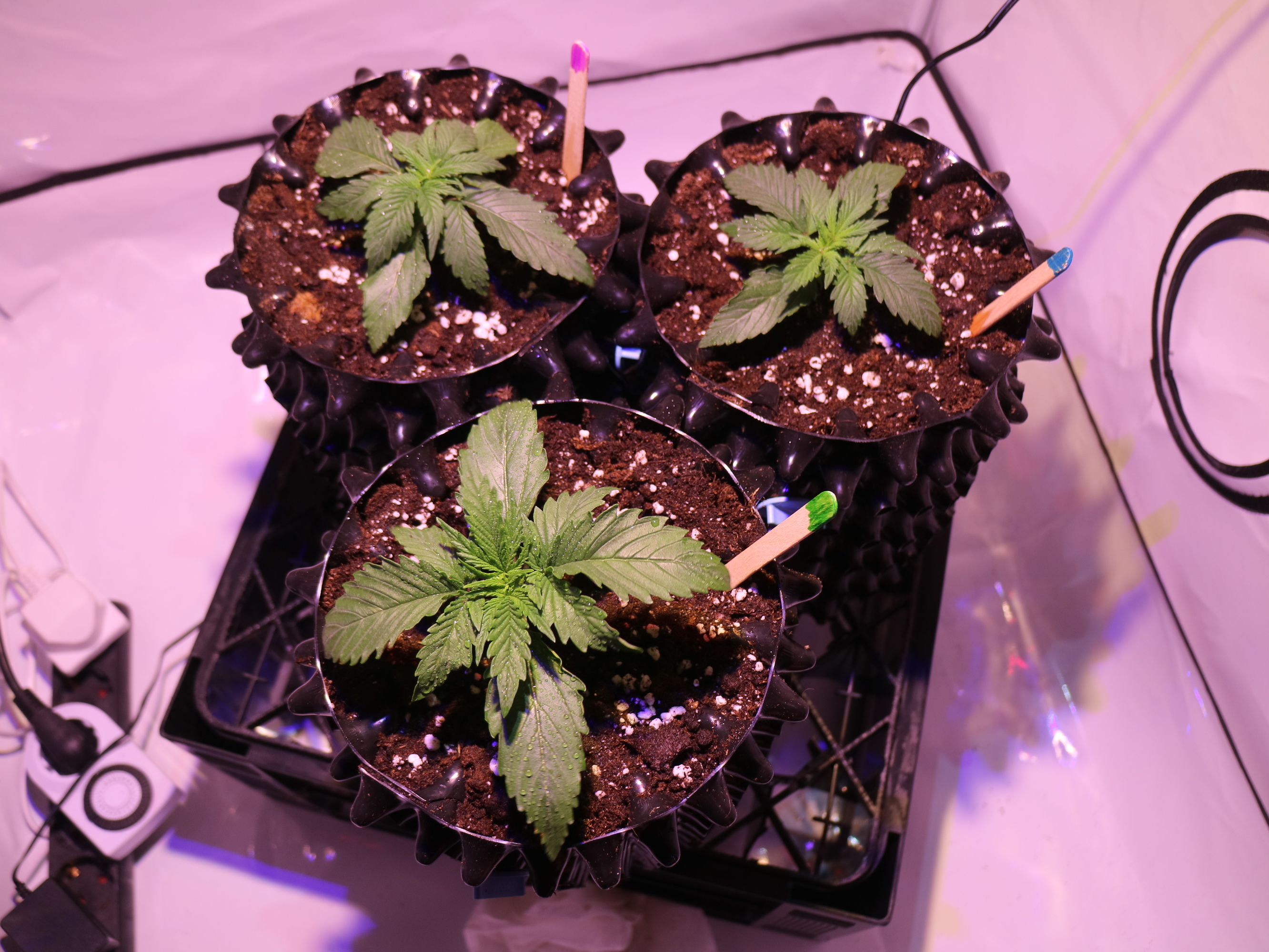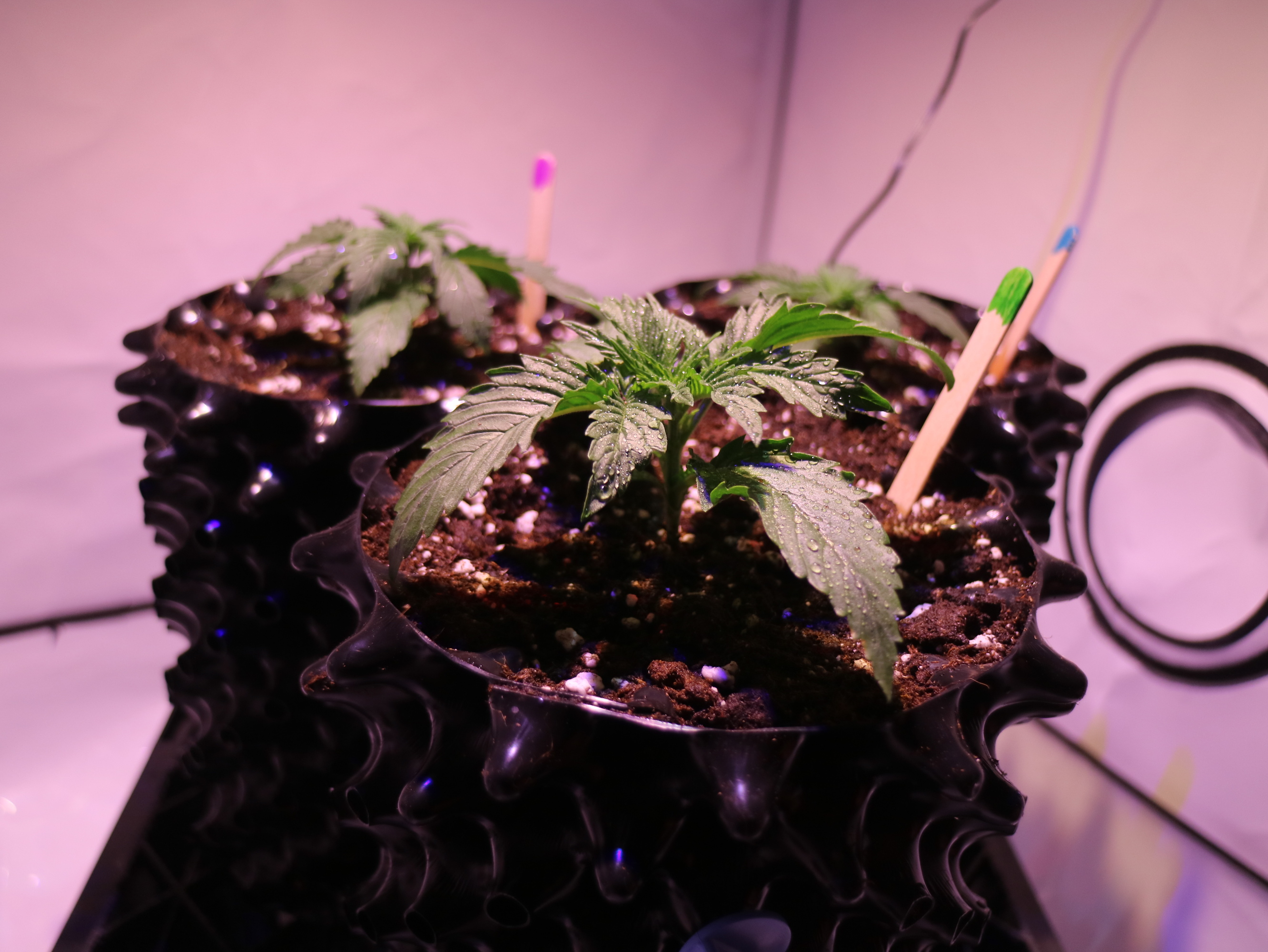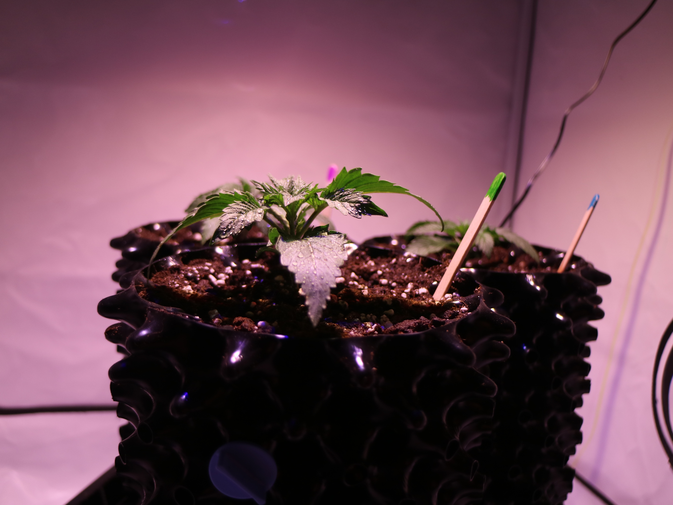 Gestern haben sie das erste Mal etwas Dünger bekommen (Light Mix nach Schema), am WE wird dann umgetopft.