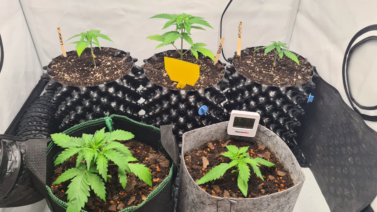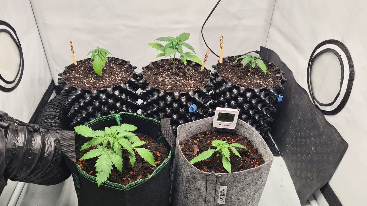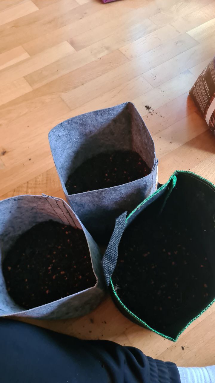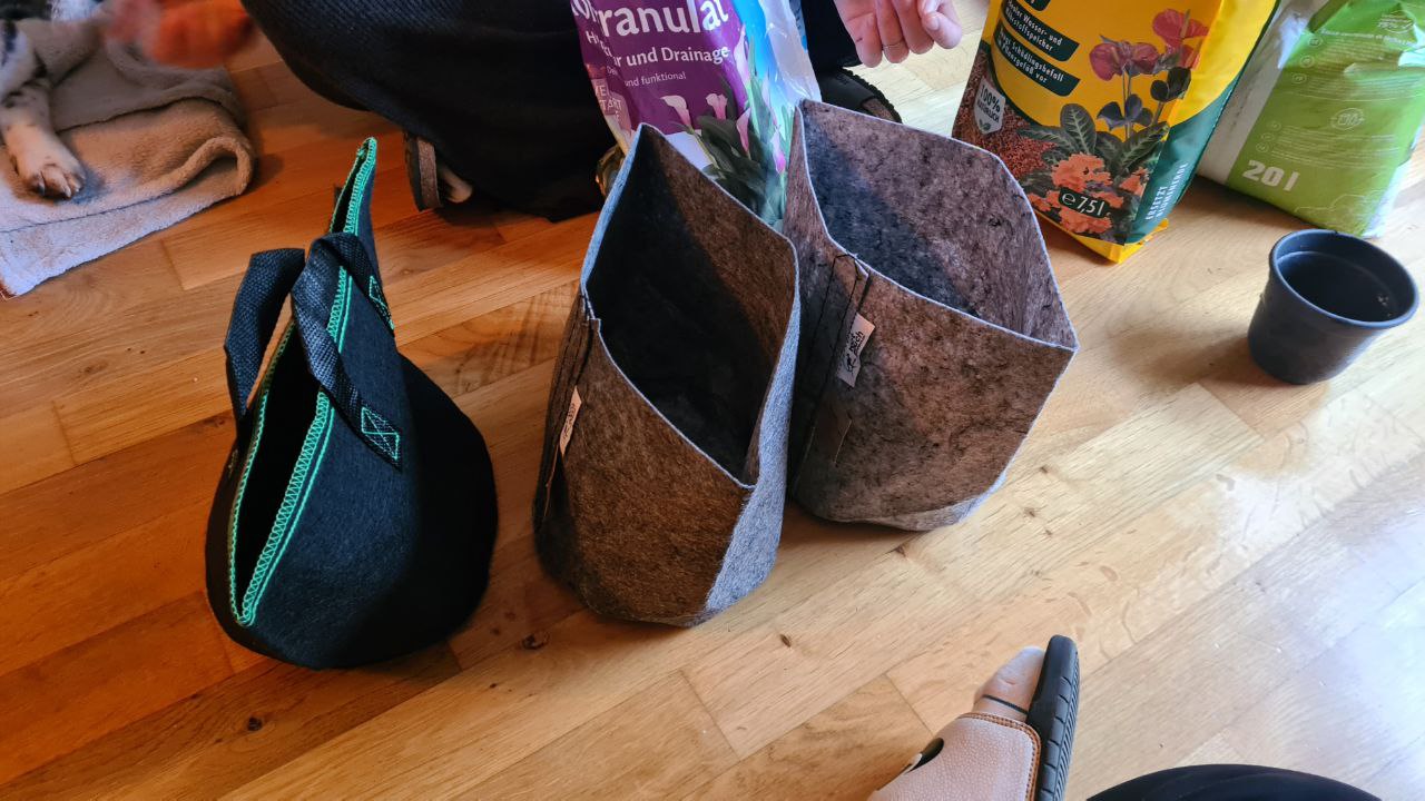 Weiterhin haben wir dann gemerkt, dass wir „nur“ Plastiktöpfe hatten, in die wir umtopfen hätten können, was ich als willkommene Einladung nahm erneut beim Growshop vorbeizufahren und neue Stofftöpfe zu holen und gleich mal jemand fachkundiges die Pflanzen begutachten zu lassen.