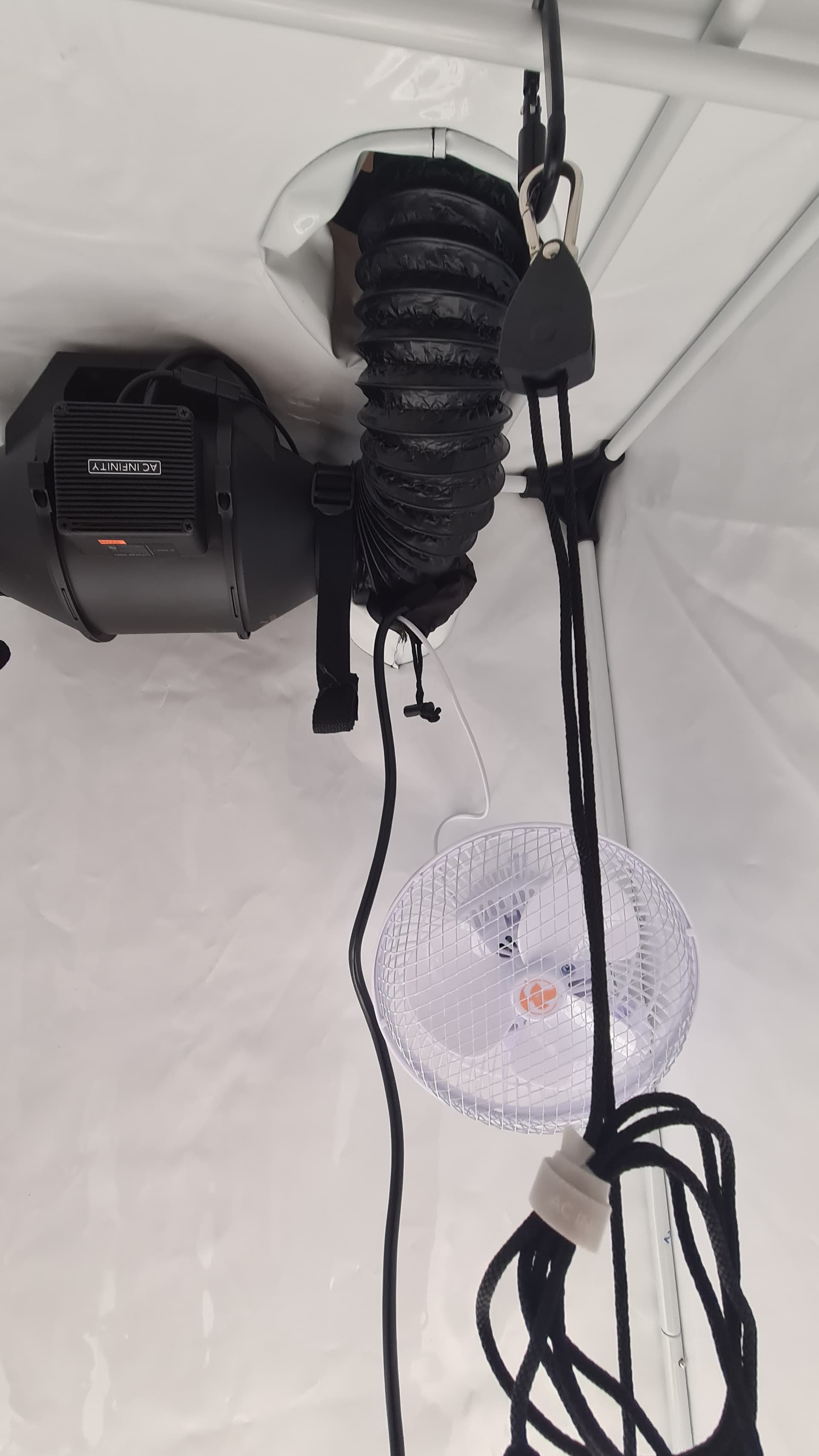 Nachdem de Pflanzen in ihrem neuen zu Hause waren kamen sie zurück ins Zelt und aufgrund des Platzes habe ich einmal umsortiert. Somit stehen die Autos jetzt vorne und die 3 Photos hinten, damit der Zuluft-Schlauch ohne Probleme liegen kann. Dann habe ich mit der neu erworbenen Ernteschere die kränkelnden Blätter der beiden kleinen Photos abgetrennt, damit sie sich wieder auf die Produktion neuer gesunder Blätter konzentrieren kann.