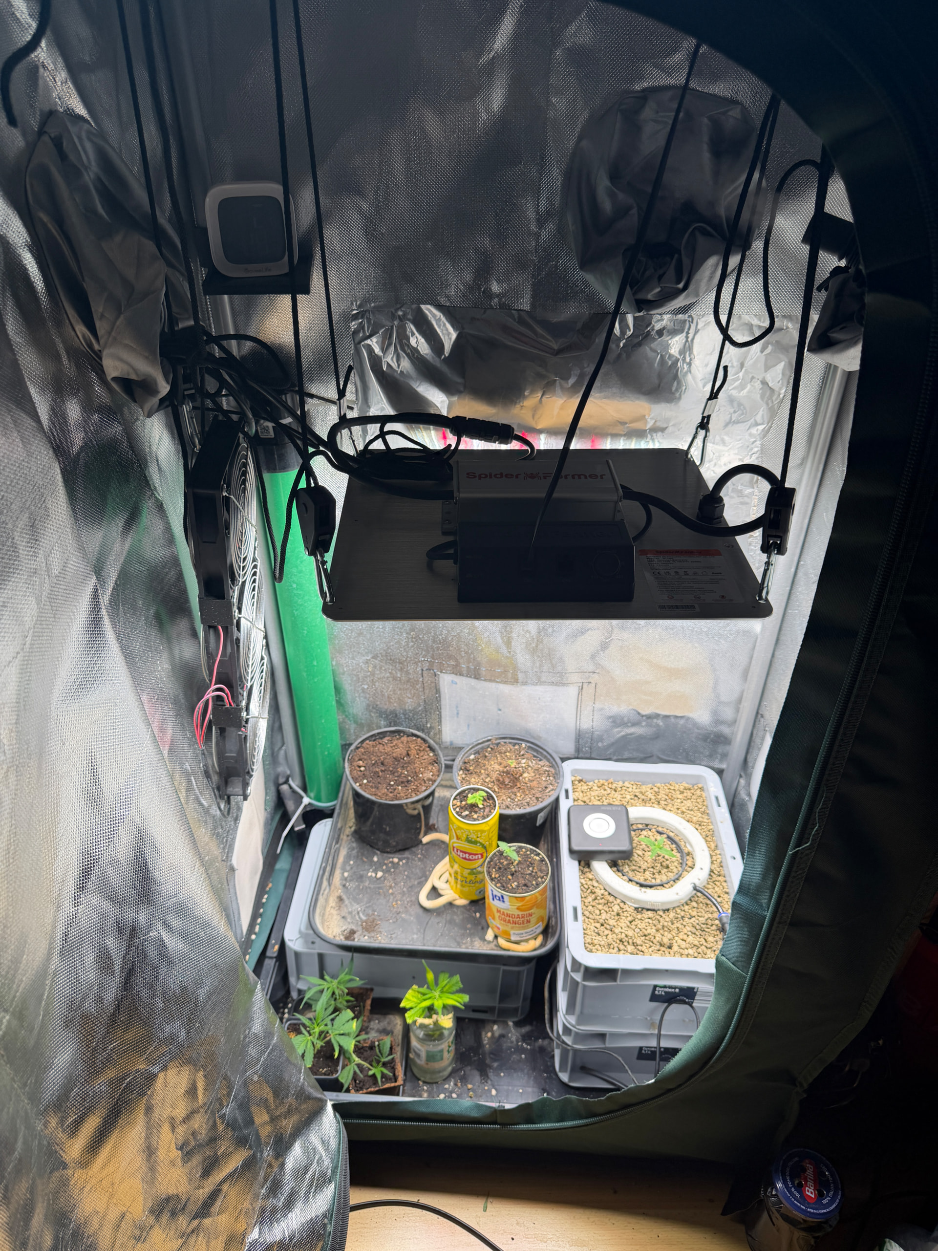 Begleitpflanzen in der Kiste gibt’s vielleicht im nächsten Run, erstmal muss das jetzige System getestet werden.