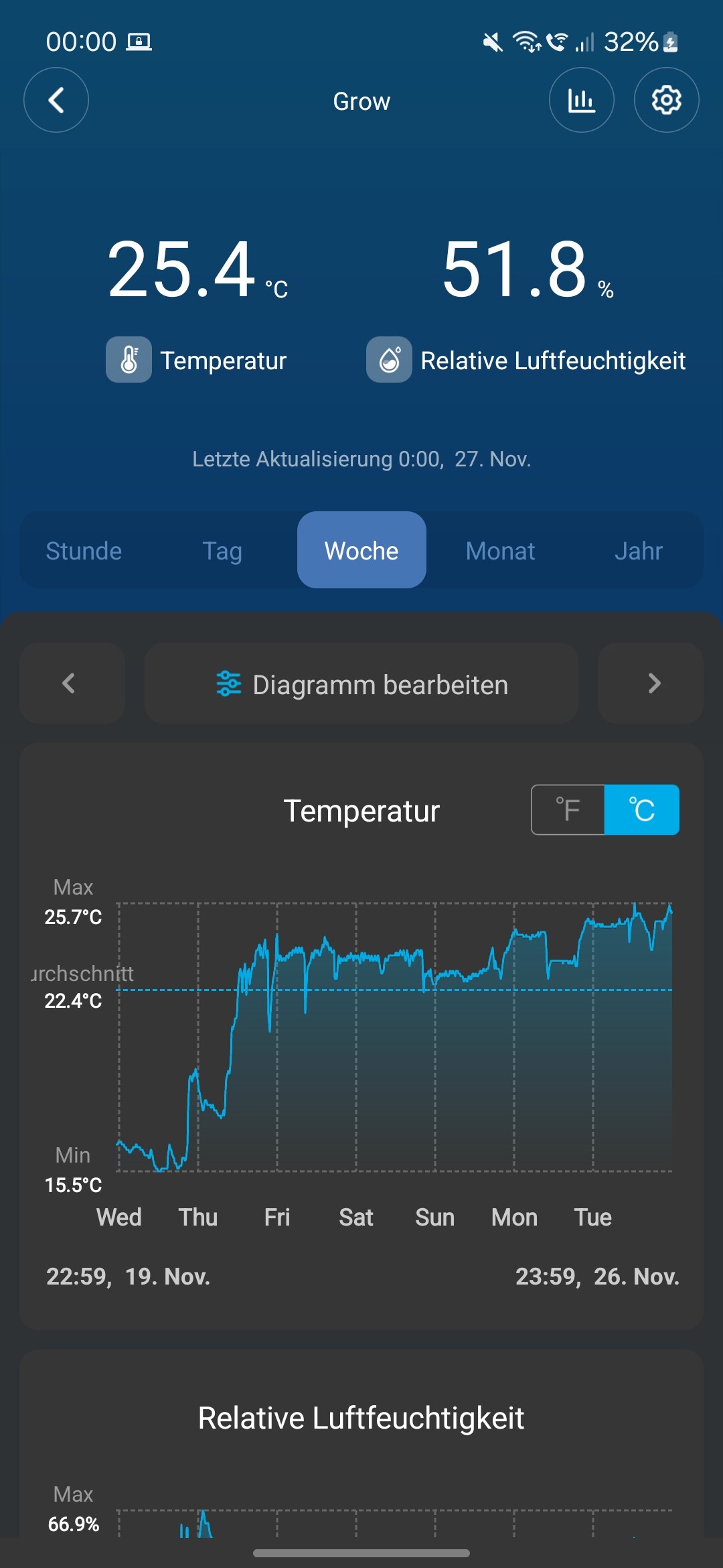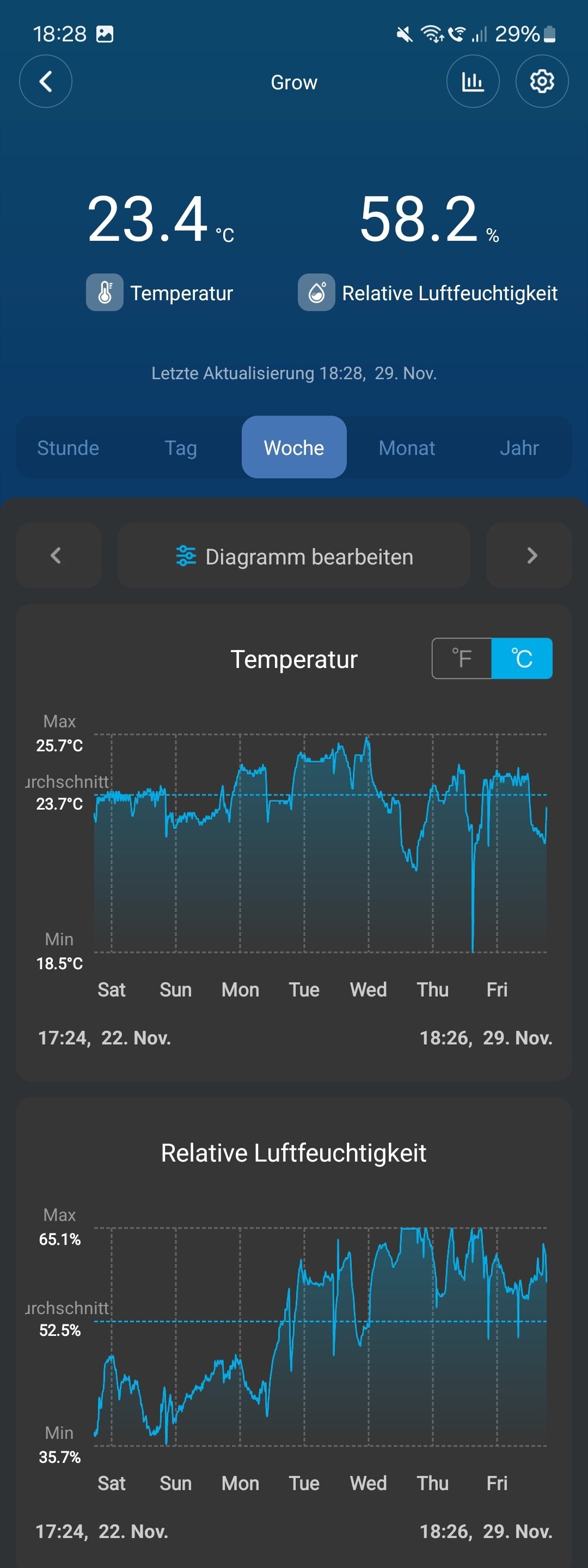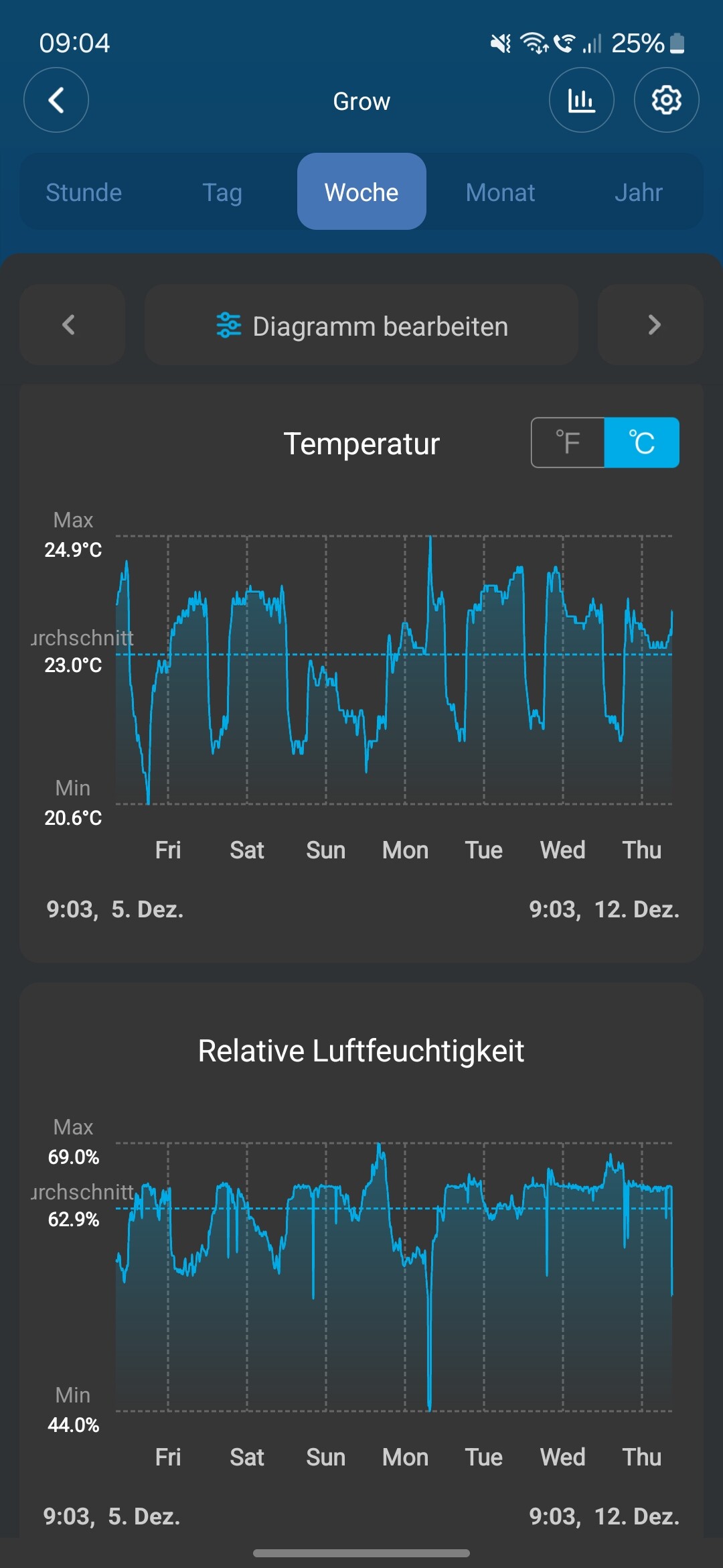 Ja perfekt nicht, aber gewisse Parameter muss man schon einigermaßen halten können. Mein Rechner und mein Server stehen hier im Raum wo das Zelt steht. Ich glaube 30-40% RLF sind dann doch n bisschen wenig. Perfekt korrigieren kann ich das mit dem Befeuchter nicht aber in eine akzeptable Richtung lenken.