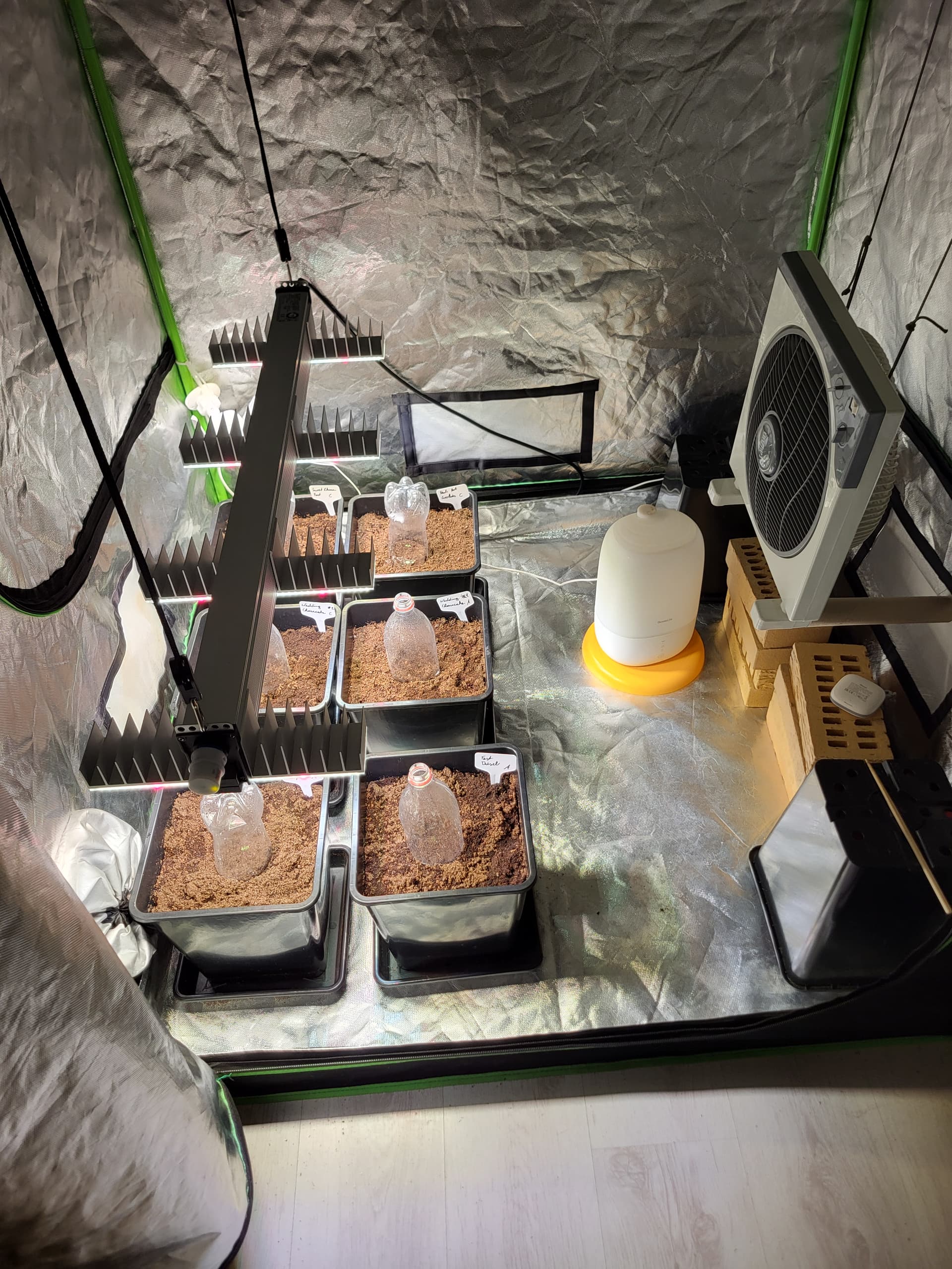 Ich werde jetzt noch ein paar Tage warten wie sich die Triebe entwickeln und dann wollte ich, wenn die Vorblüte bei allen am Start ist, auch schon fast umstellen. Ich hoffe durch die relativ kurze Vegi die Pflanzen halbwegs klein halten zu können, ich kann ja das große Zelt immernoch nicht vernünftig ausleuchten. In der Blüte spätestens wird dann auch die Vipar wieder aktiviert, dann muss ich nicht 6 Pflanzen unter die SanLight quetschen sondern habe da noch n bisschen mehr Fläche.
