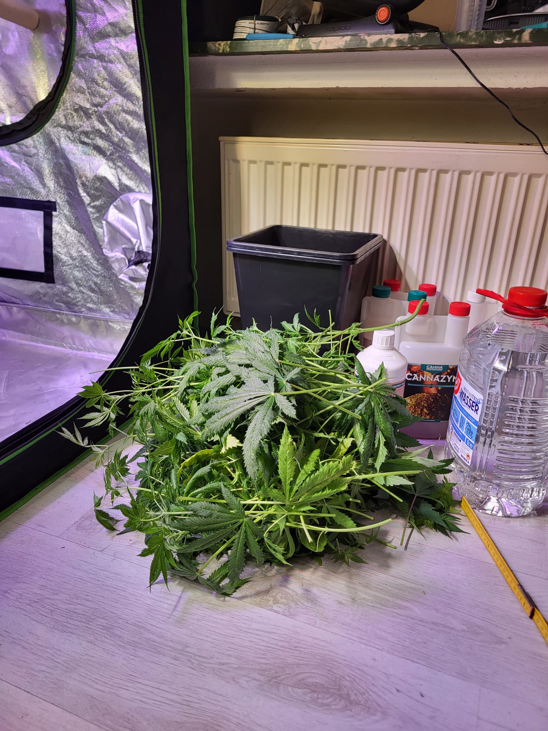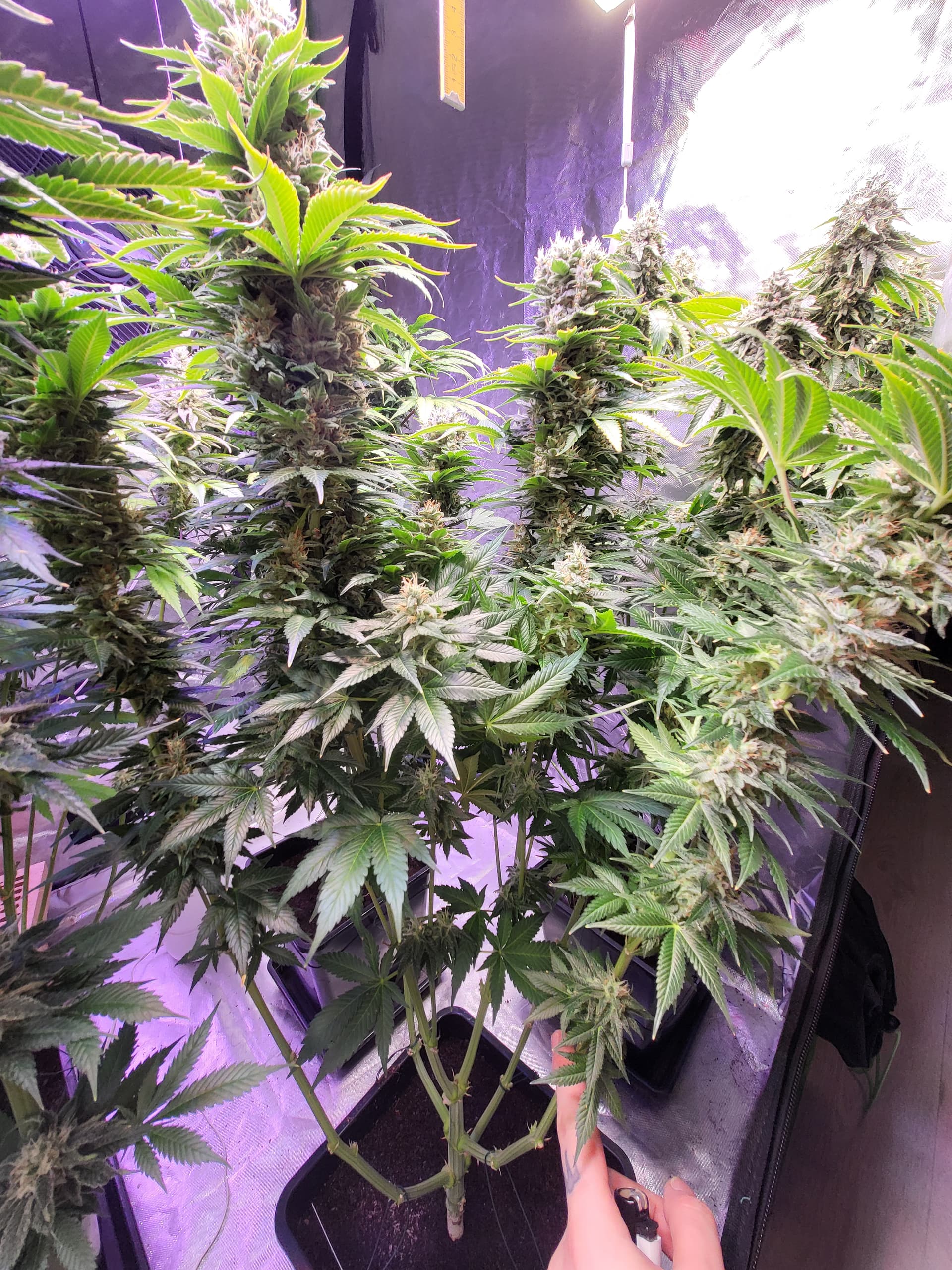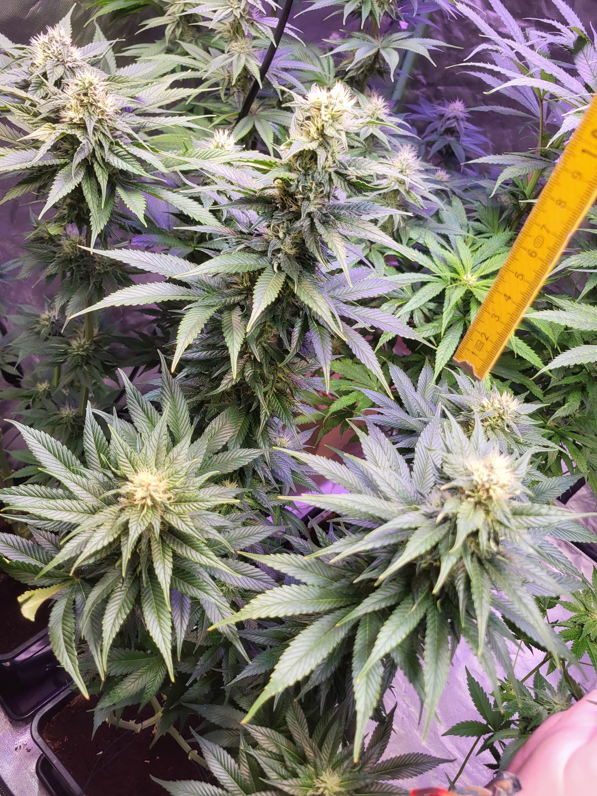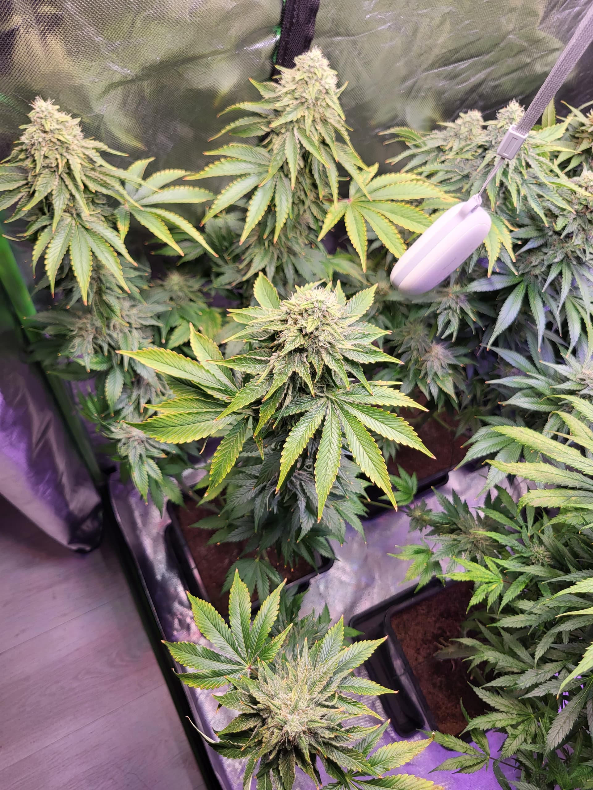 Die eine Wedding Cheesecake hat ja so verzögert in die Blüte gestartet, schwillt aber auch langsam. Mit der muss ich mir was überlegen, ich will nicht eine Pflanze noch 3 Wochen länger stehen lassen als den Rest. Ich hab nur die Box zum trocknen. Meh.