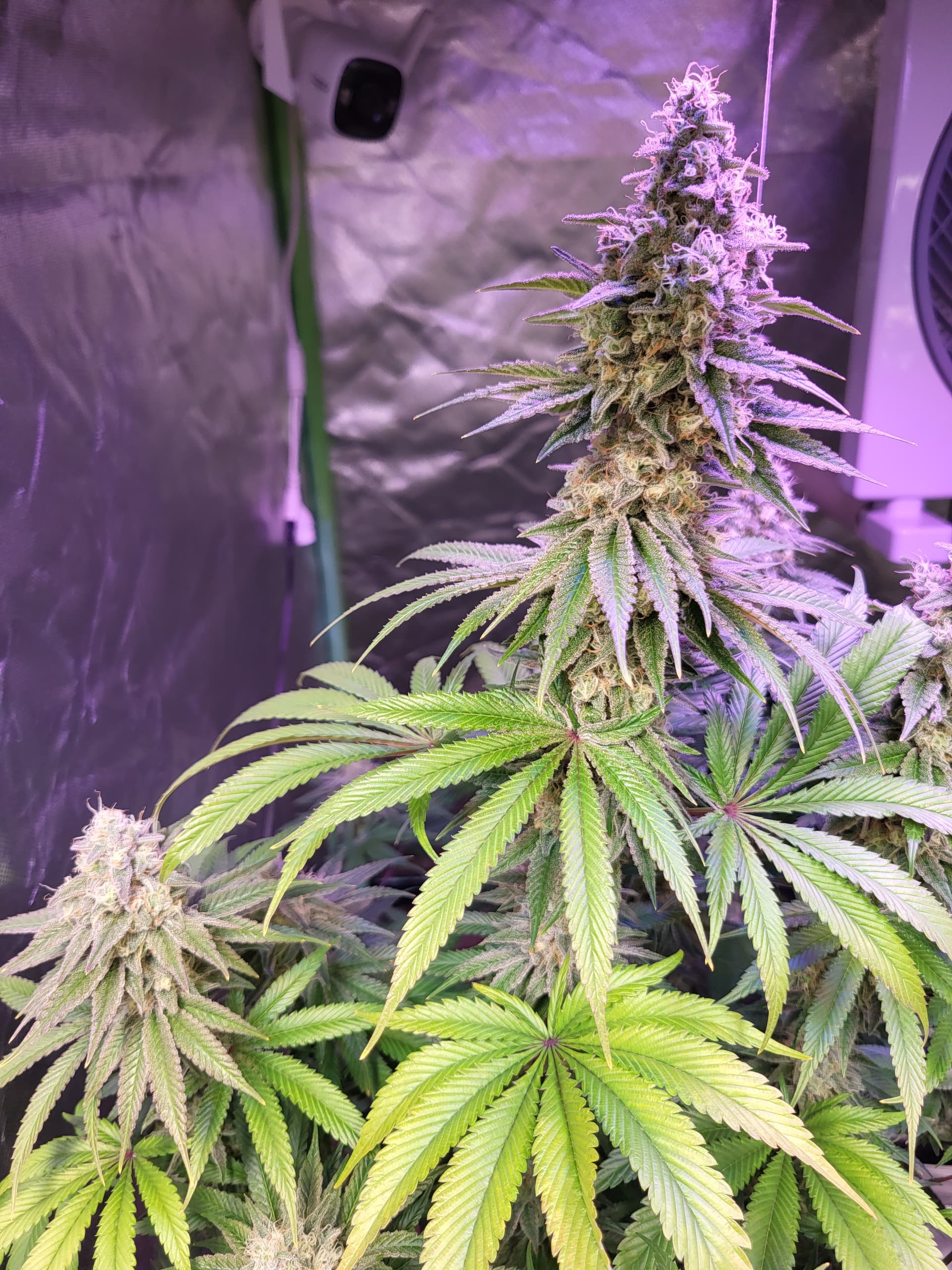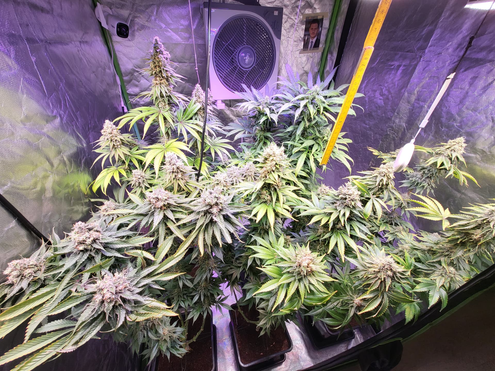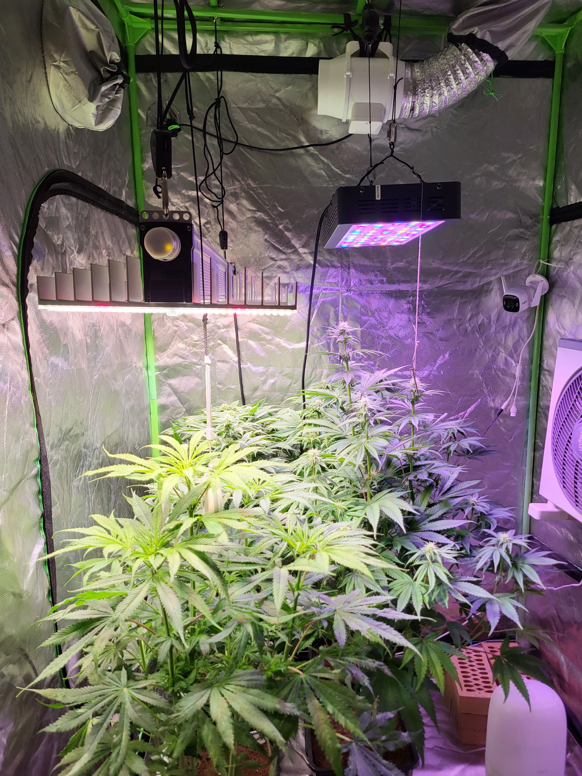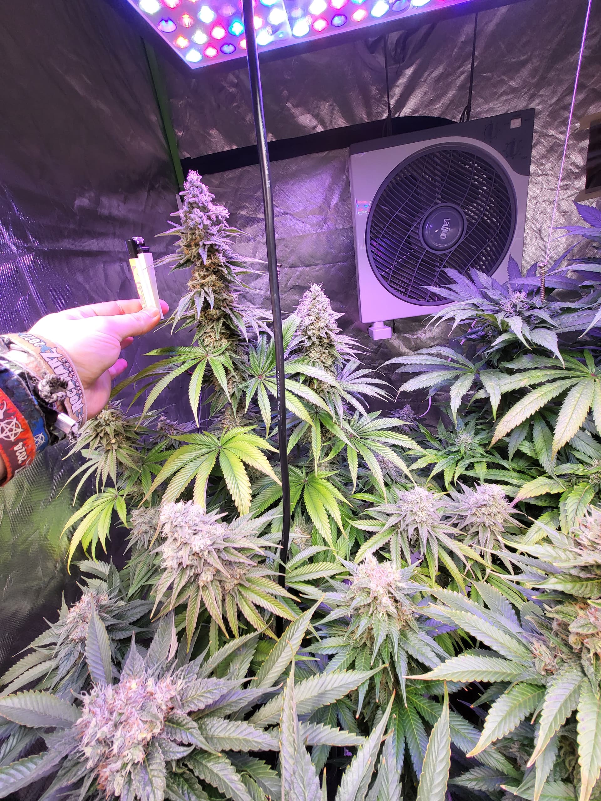 Die eine Wedding Cheesecake hat ja so verzögert in die Blüte gestartet, schwillt aber auch langsam. Mit der muss ich mir was überlegen, ich will nicht eine Pflanze noch 3 Wochen länger stehen lassen als den Rest. Ich hab nur die Box zum trocknen. Meh.