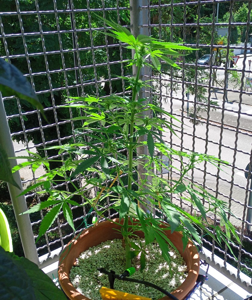 Heute war es dann soweit: die Kleine hat das Sonnenlicht erblickt. Direkt raus auf den Balkon, damit es möglichst keinen Geilwuchs gibt.
