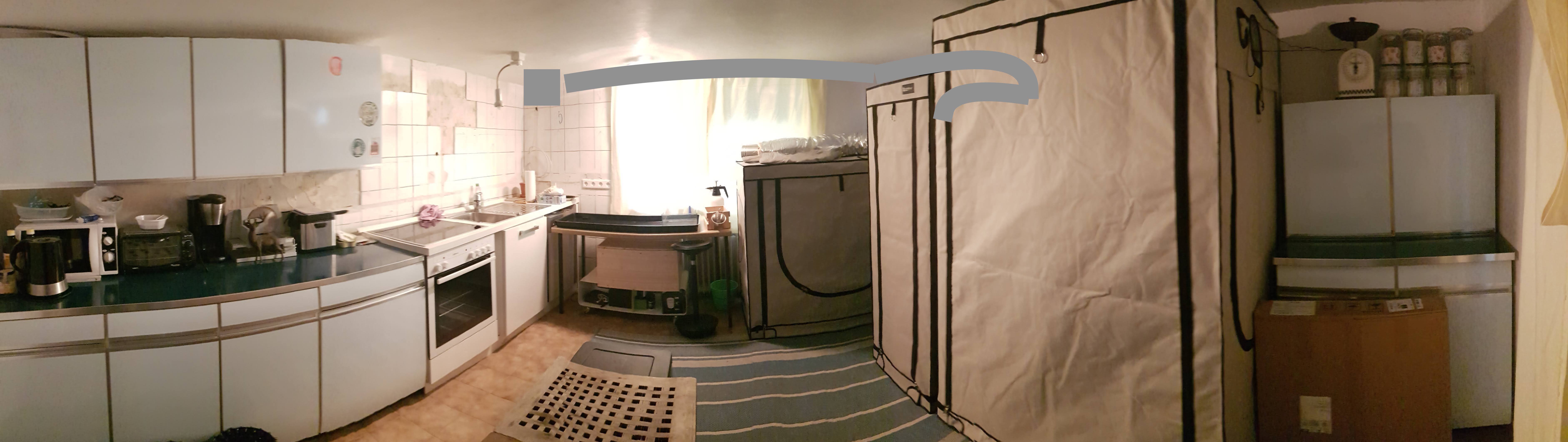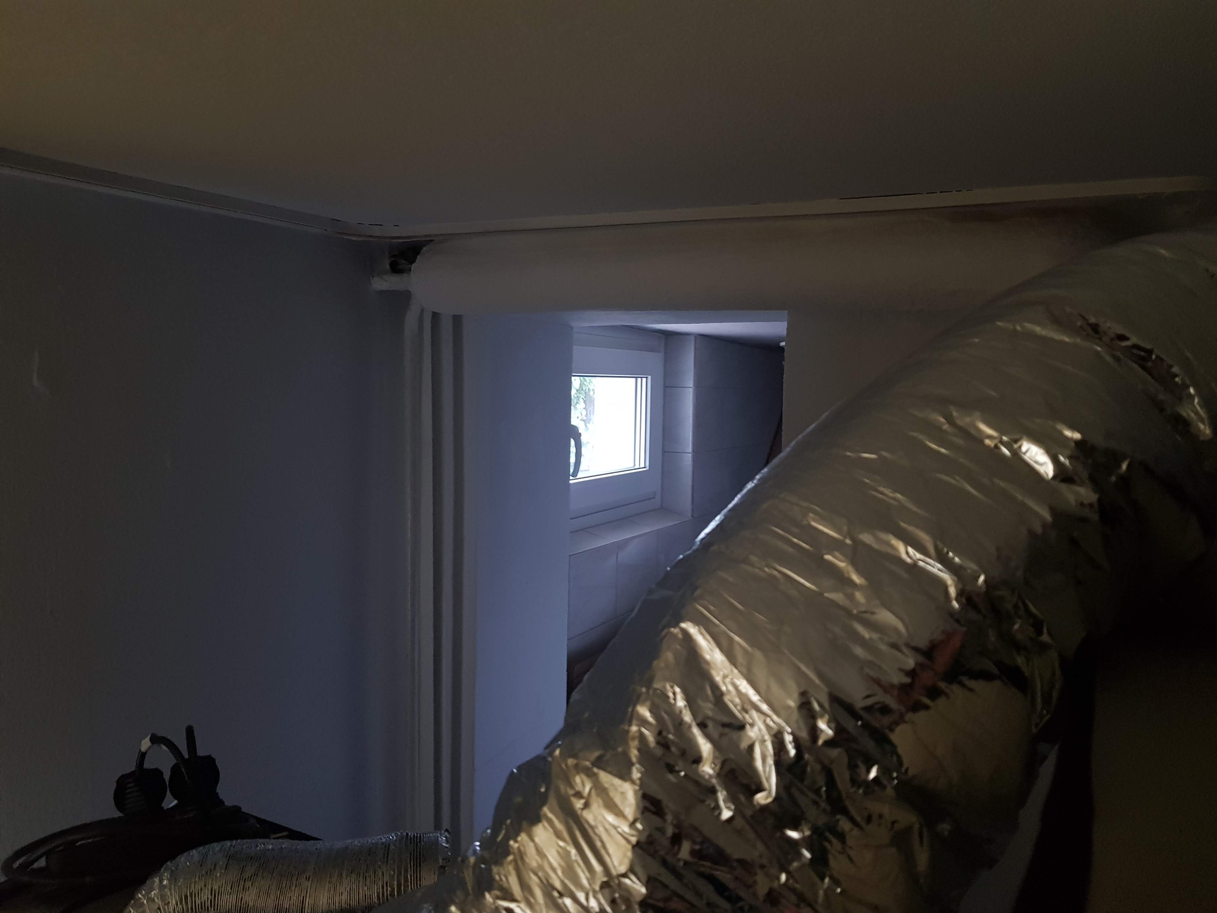 Es gäbe da ja eine Stelle, in der schon mal ein Loch war, dann aber wieder zugemacht wurde. Dafür müsste ich aber den Abluftschlauch einmal queer unter die Decke (nur 1,90m hoch) hängen.