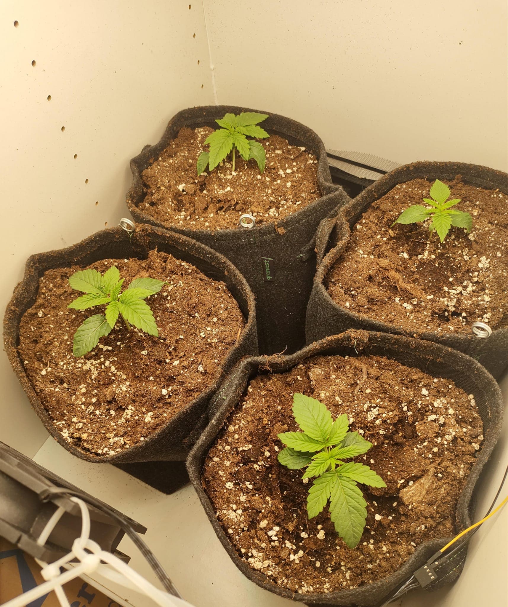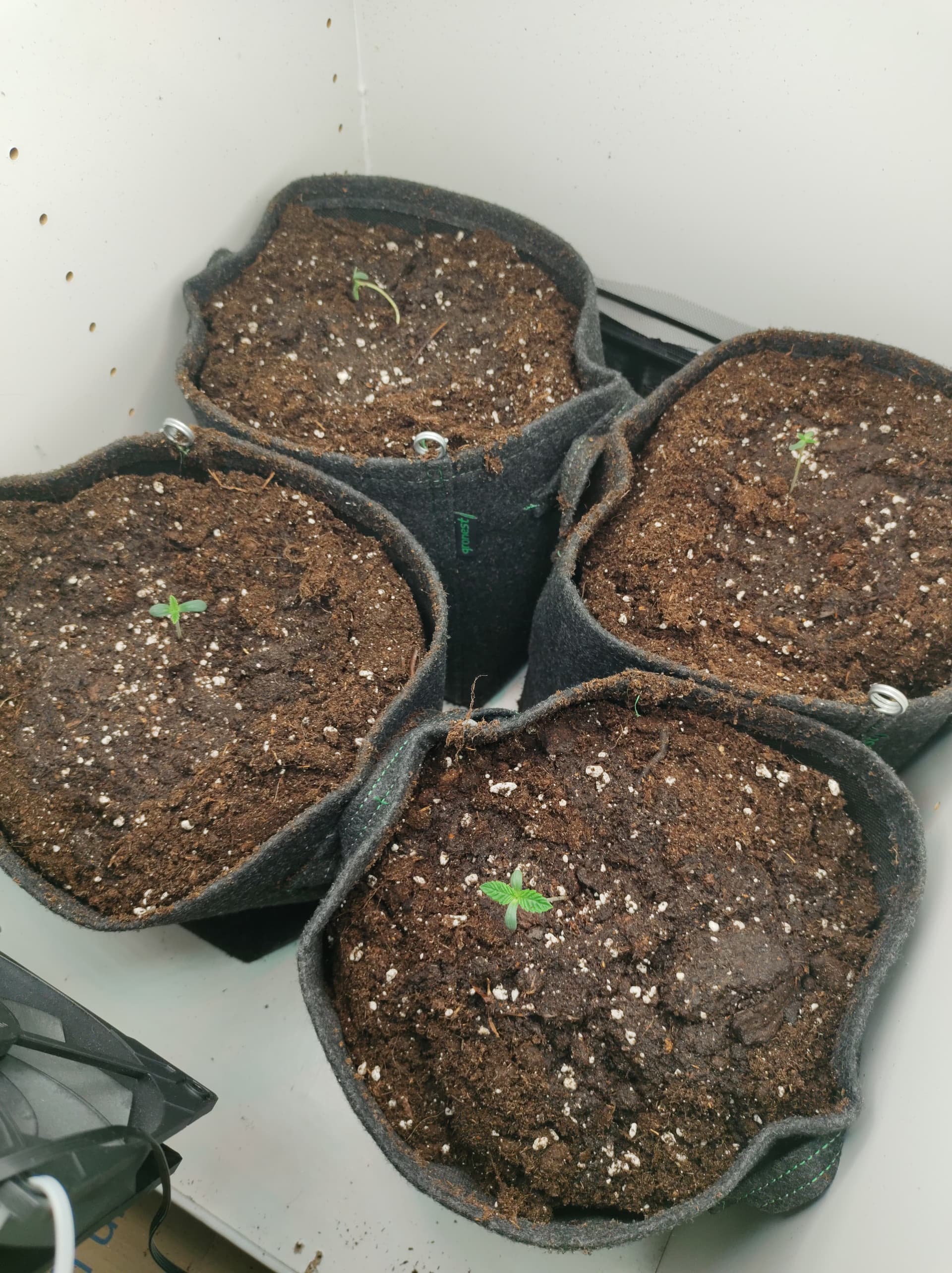 nachdem mein erster Indoor Grow etwas gelitten hat → hier und aufgrund von Zeitdruck aber trotzdem durchgebracht werden musste (am Ende 80g auch weil die ersten 5 Wochen noch keine LED Beleuchtung vorhanden war), jetzt hier der Growreport für meinen 2. Grow direkt zum Start. Bisher sind schon 3 von 5 Pflanzen gekeimt (eine Ersatz) und der Plan ist später evtl. ein Scrog Netz zu spannen. Hier das aktuelle Bild: