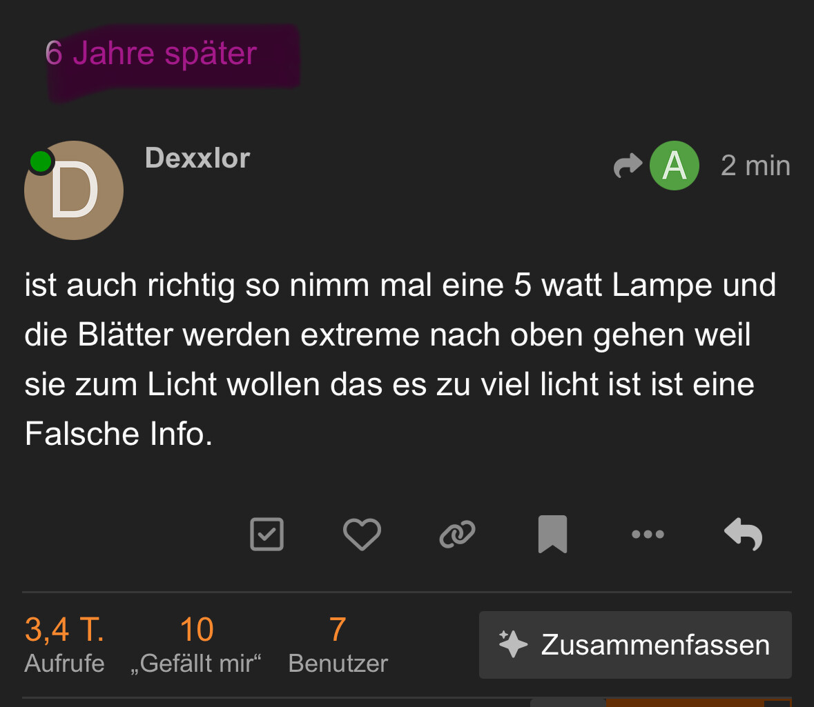 Meine Mädels stehen unter der purple alien bei 30cm Abstand, bei 2 Mädels ziehen sich die oberen Blätter zum, v. zusammen, hab keine idee woran das liegt:thinking: mann mit den leds ist alles komplizierter