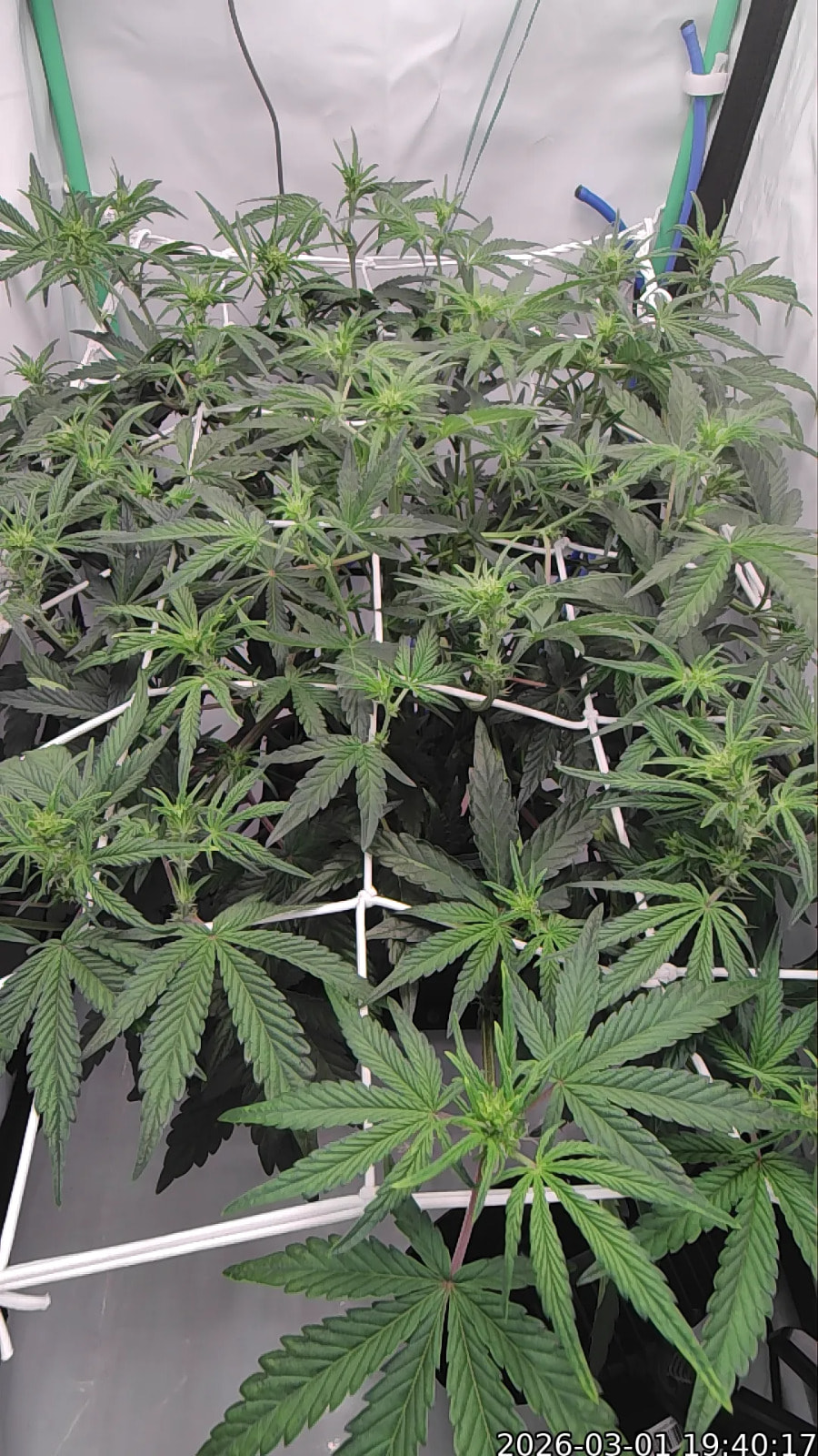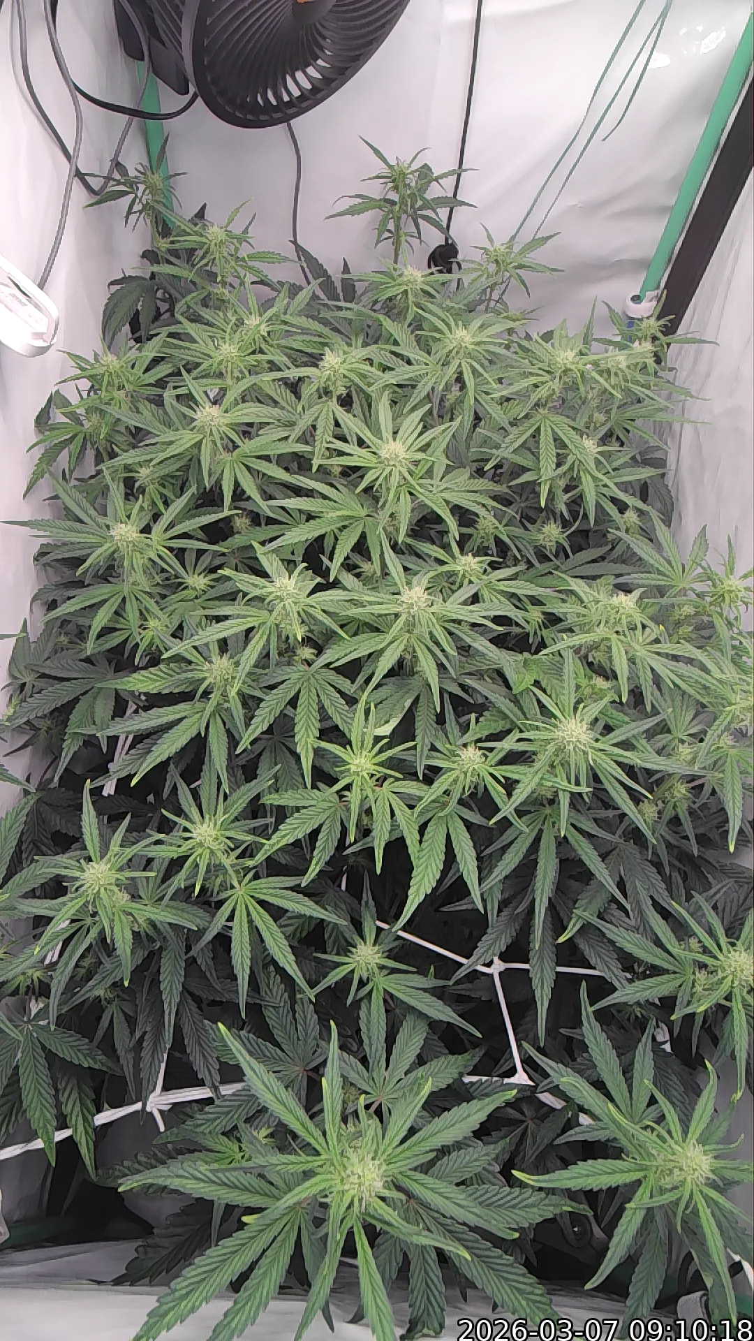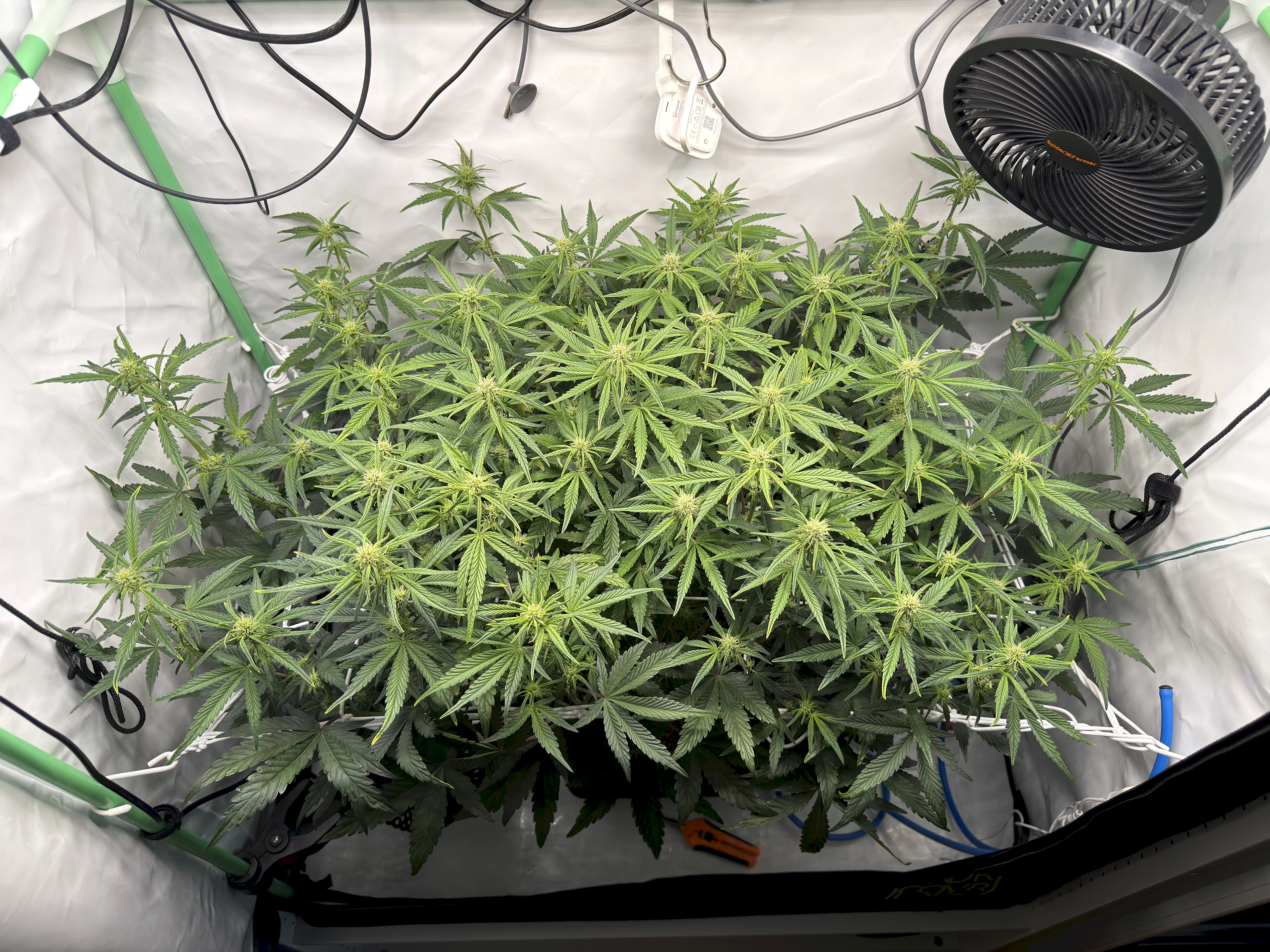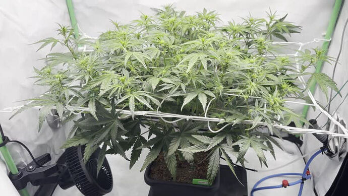 Tag 48: Ich bin sehr happy mit ihrer Struktur Das Zelt ist voll. Die letzten Tage haben wir nix gemacht, auĂer gelegentlich den ein oder anderen Austrieb besser im Netz zu verteilen, so dass alle Triebe schön Abstand zueinander haben. Sie ist derzeit noch im Stretch. Wenn der abgeschlossen ist, werden wir sie nochmal entlauben.