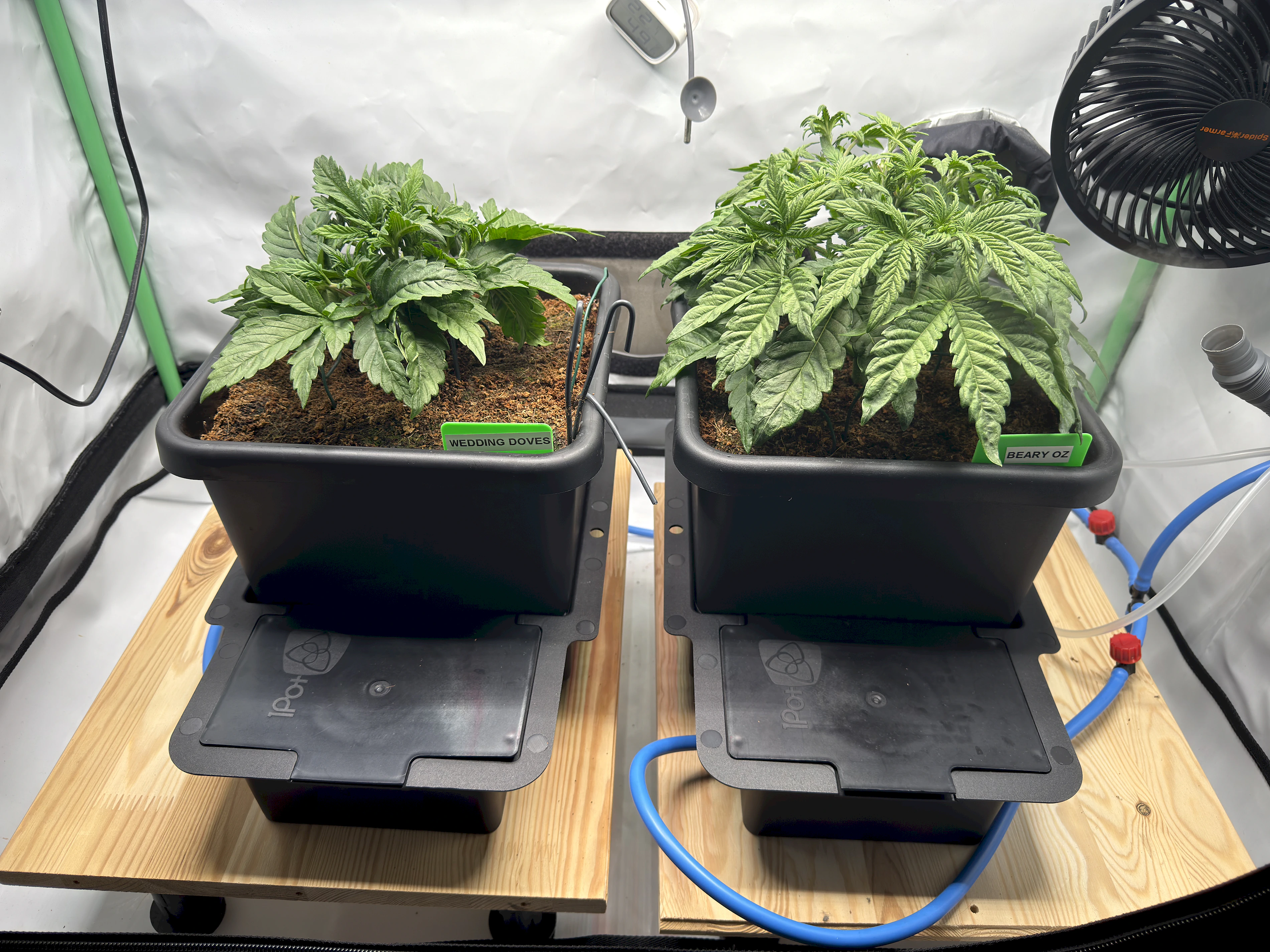 Tag 37: Ein schnelles Update Die Beary Oz rechts kann gar nicht aufhören zu wachsen. Die Wedding Doves ist weiterhin noch nicht im Stretch und in ihrer Struktur sehr dicht, weswegen ich sie nun regelmĂ€Ăig entlaube.