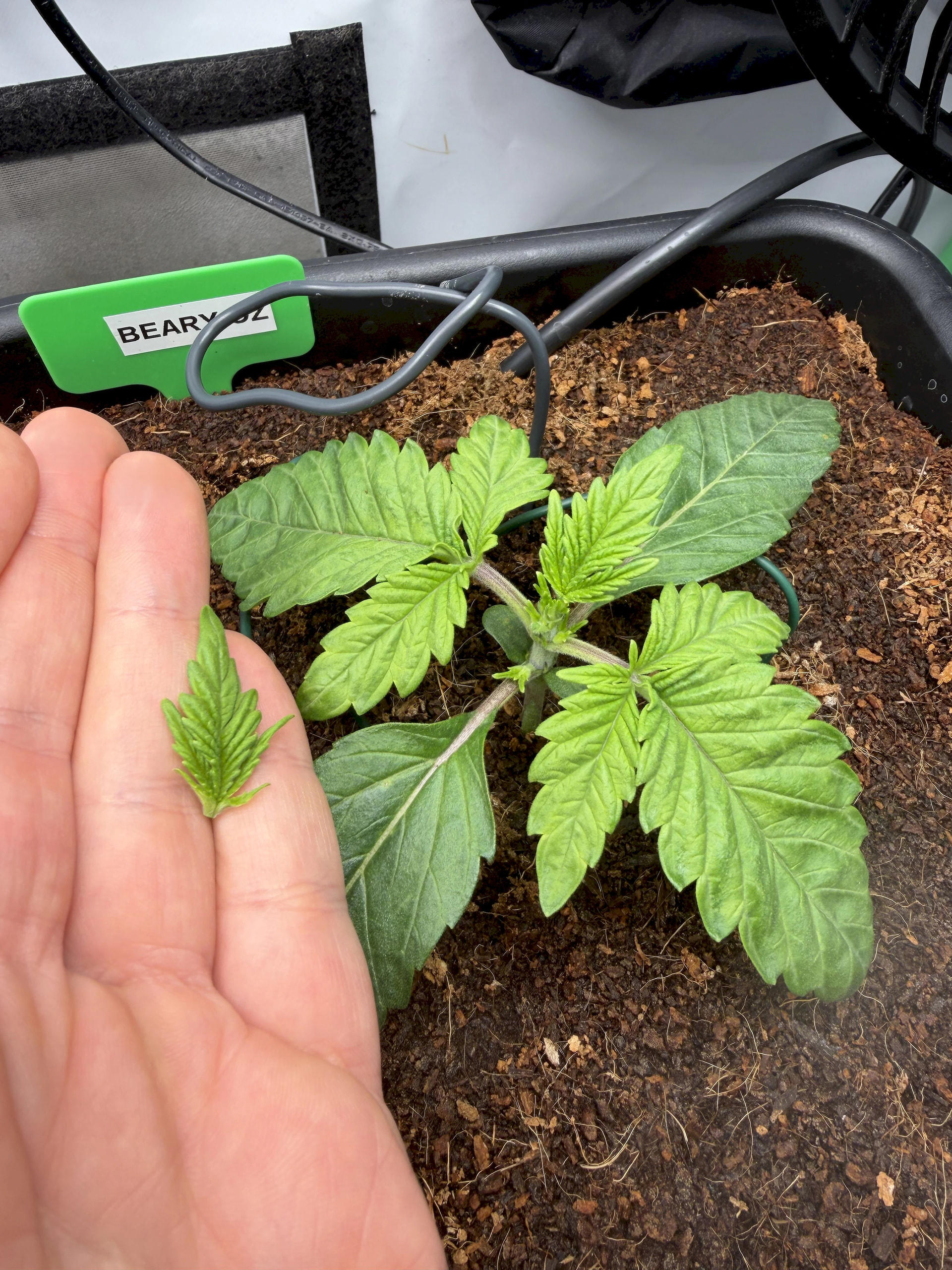 Ăber die letzten Tage haben wir das ein oder andere Blatt entfernt, welches einen ungĂŒnstigen Schatten geworfen hat. So, dass auch die unteren Triebe gut Licht kriegen und eine Chance haben, nach oben aufzuschlieĂen. Bei der Beary Oz werden wir mit Entlauben nun erstmal aufhören, so dass sie ihren Wechsel in die BlĂŒtephase ungestört durchfĂŒhren kann.