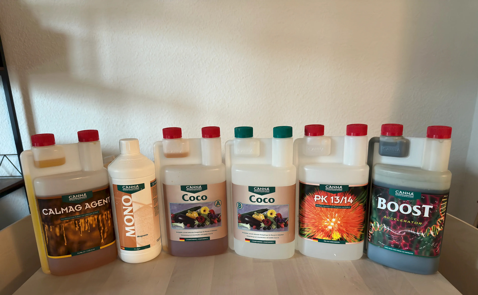 Derzeit trinkt sie tĂ€glich 2-3 Liter Ab jetzt geben wir leicht PK 13/14 dazu. 3ml auf 10 Liter NĂ€hrlösung. AuĂerdem Canna Boost, 20ml. Das Canna Coco A/B haben wir von 30ml auf 25ml pro 10 Liter reduziert. So sind wir weiterhin Grund-EC bereinigt auf einem EC von etwa 1,6-1,7.