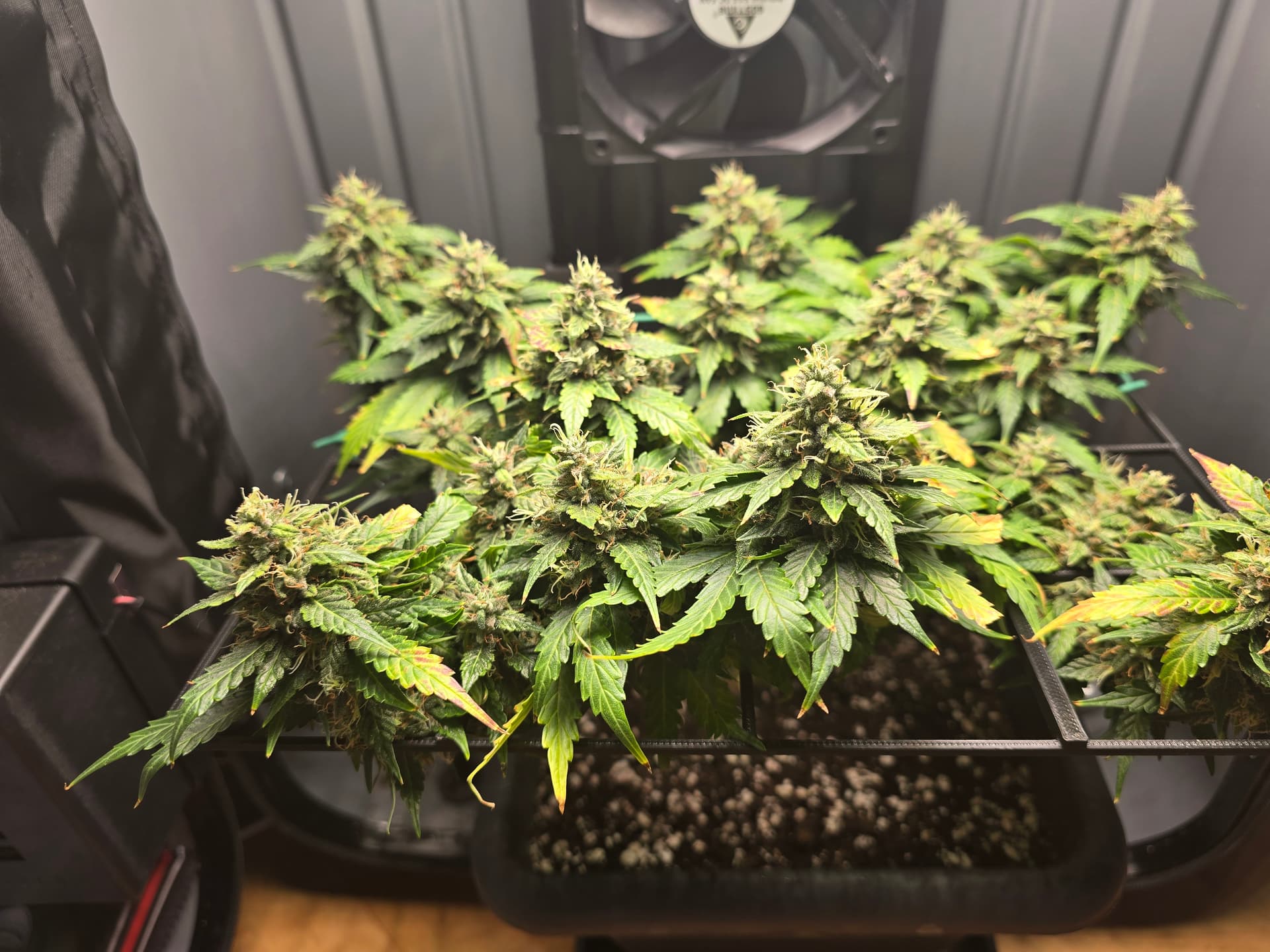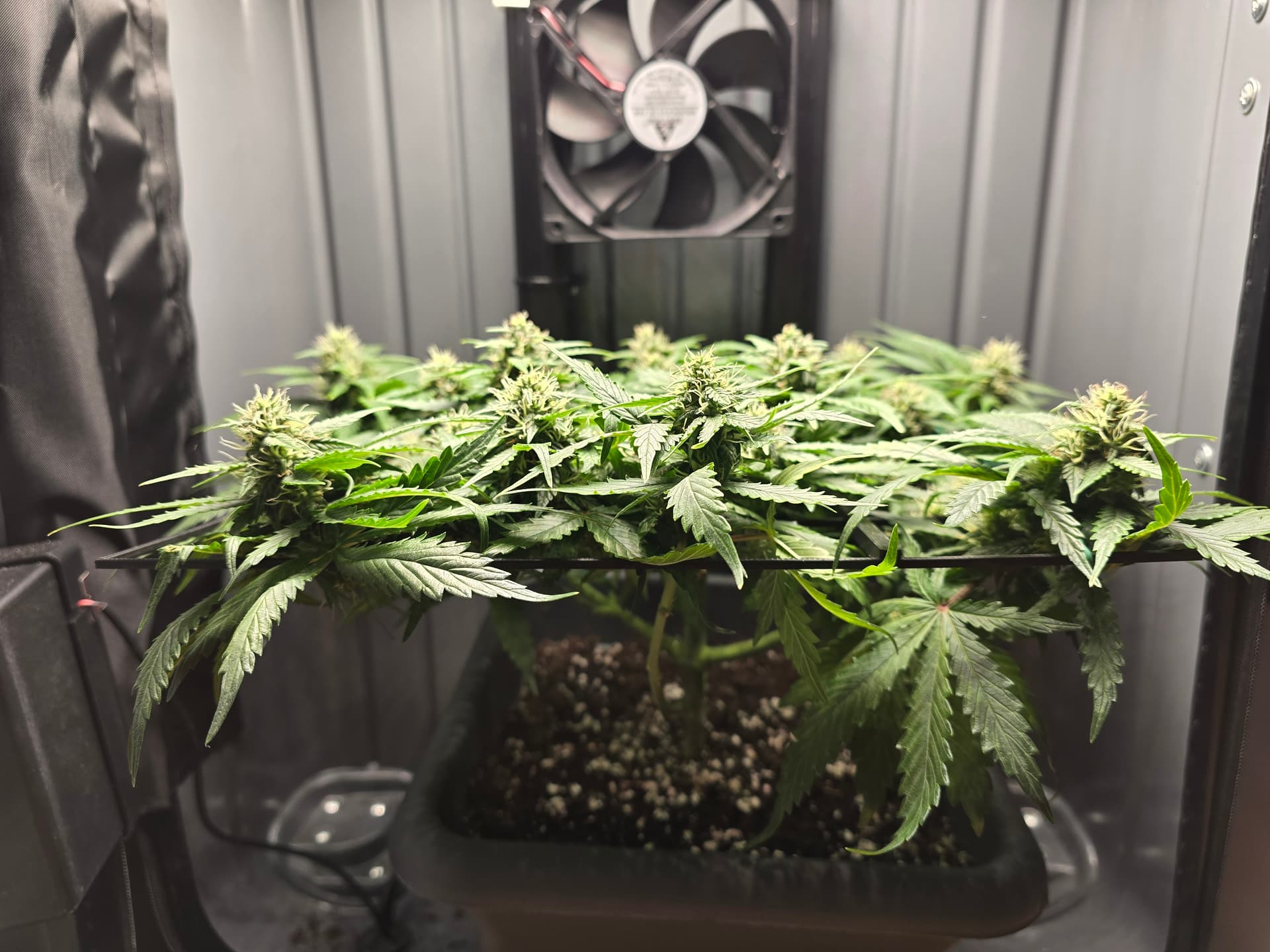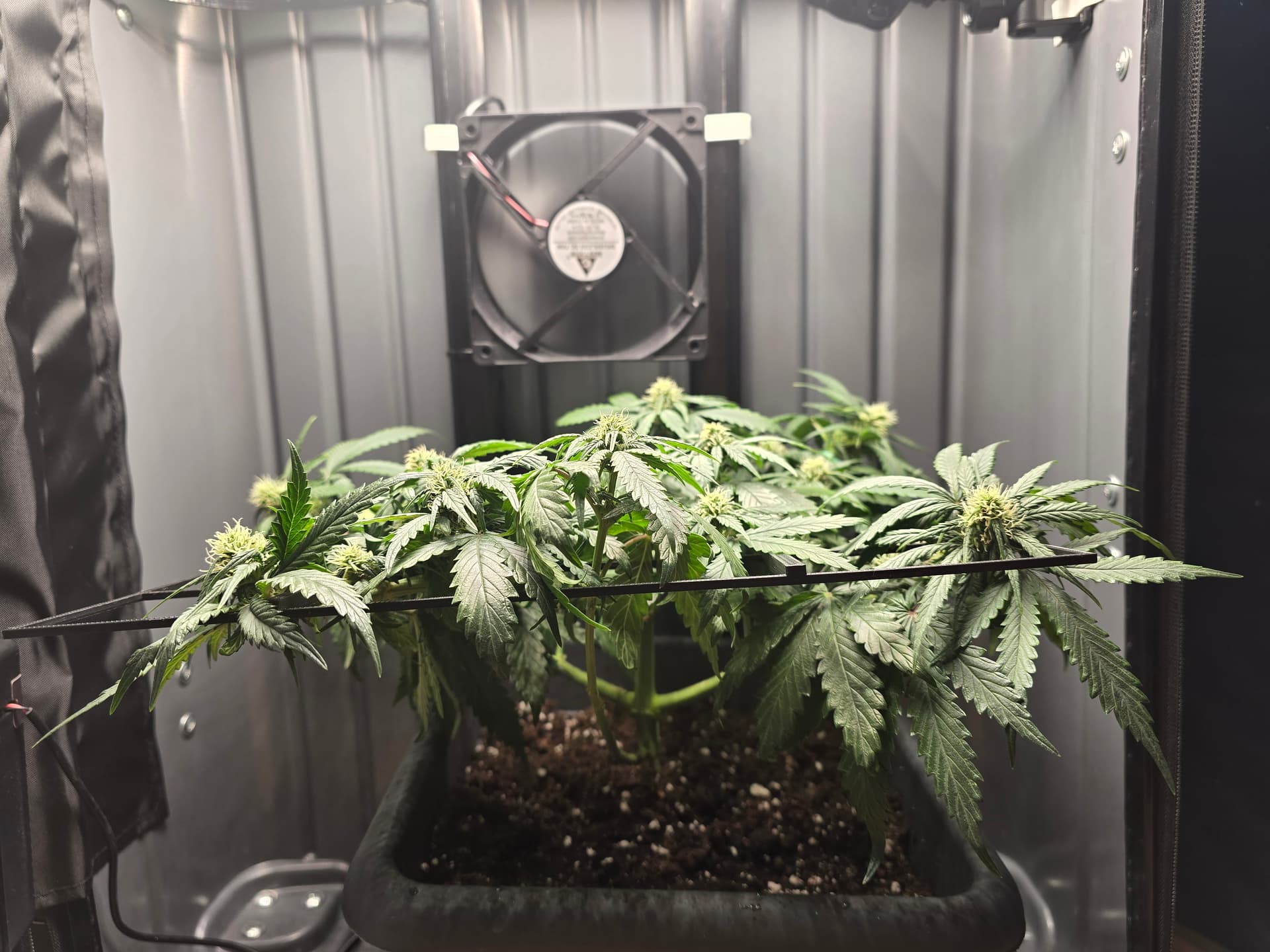 Die Buds nehmen langsam Form an, ich denke das wird mein bester Grow, da in diesem Stadium meine vorherigen Grows in einem erkennbar schlechteren Zustand waren. Ich finde bis auf paar Kleinigkeiten sieht die Pflanze noch mega gesund aus