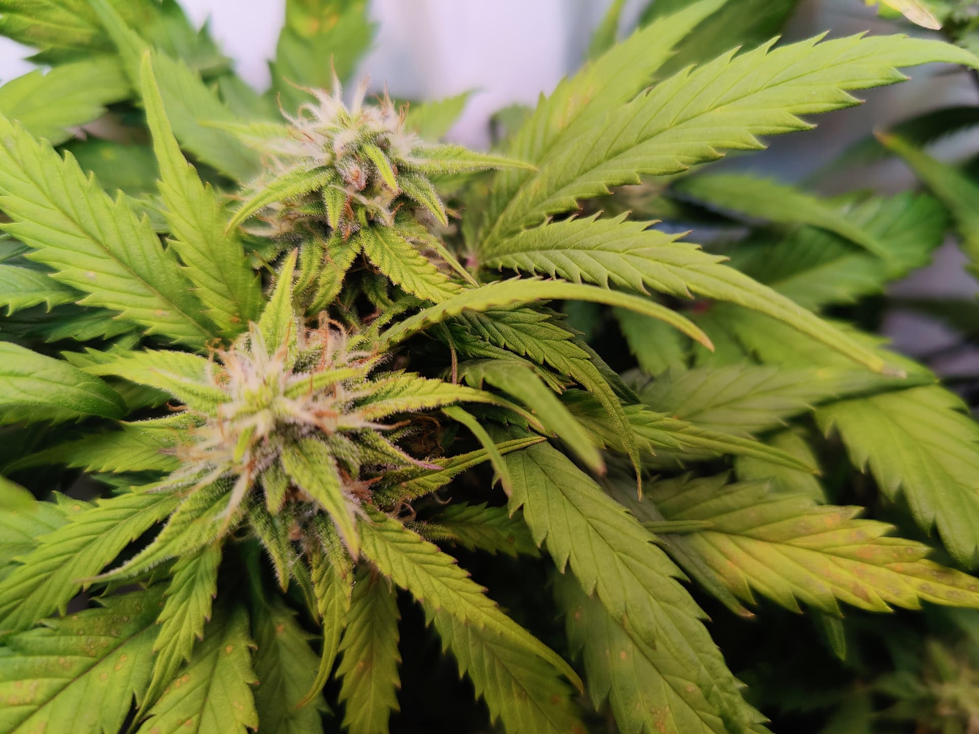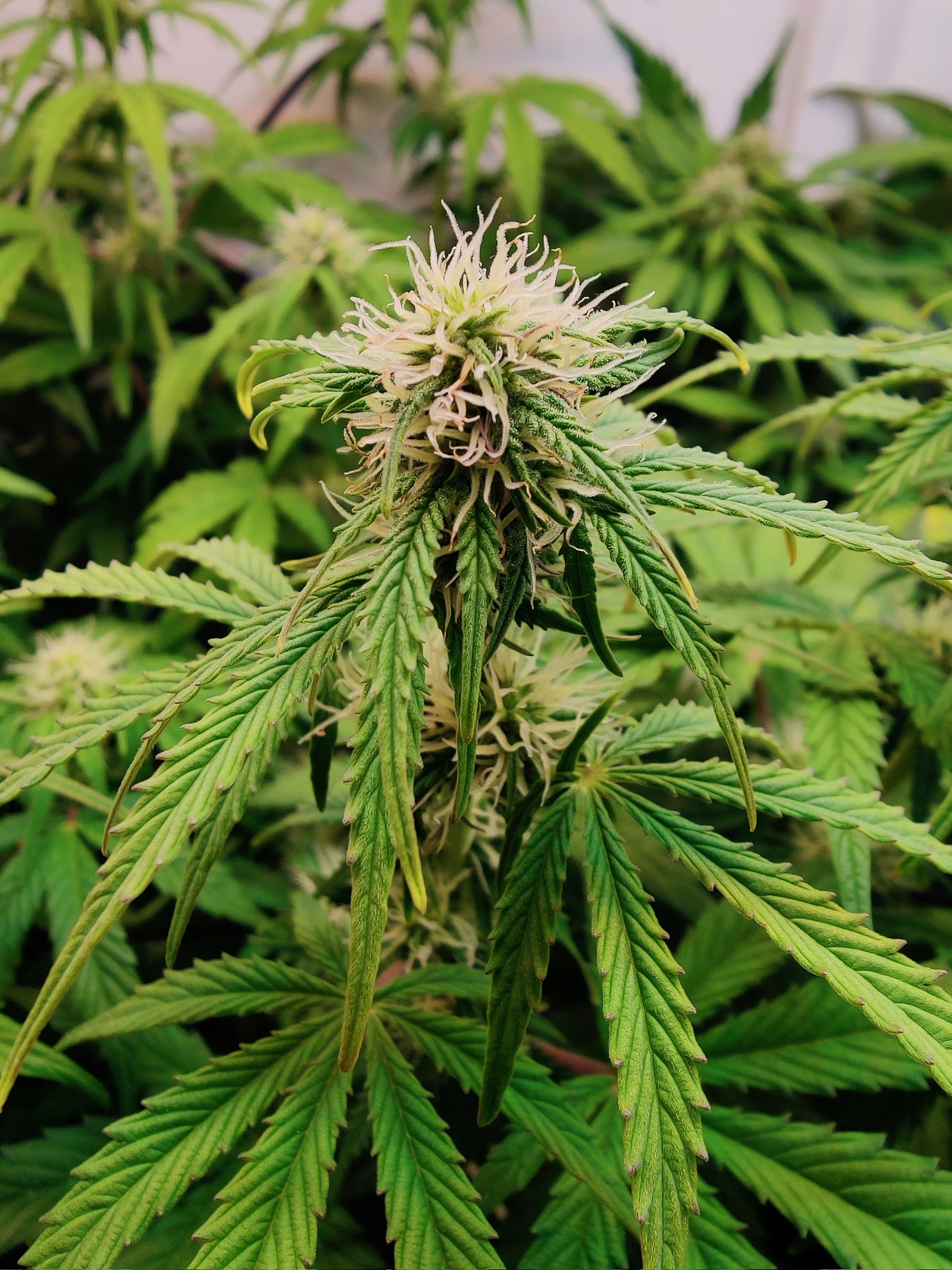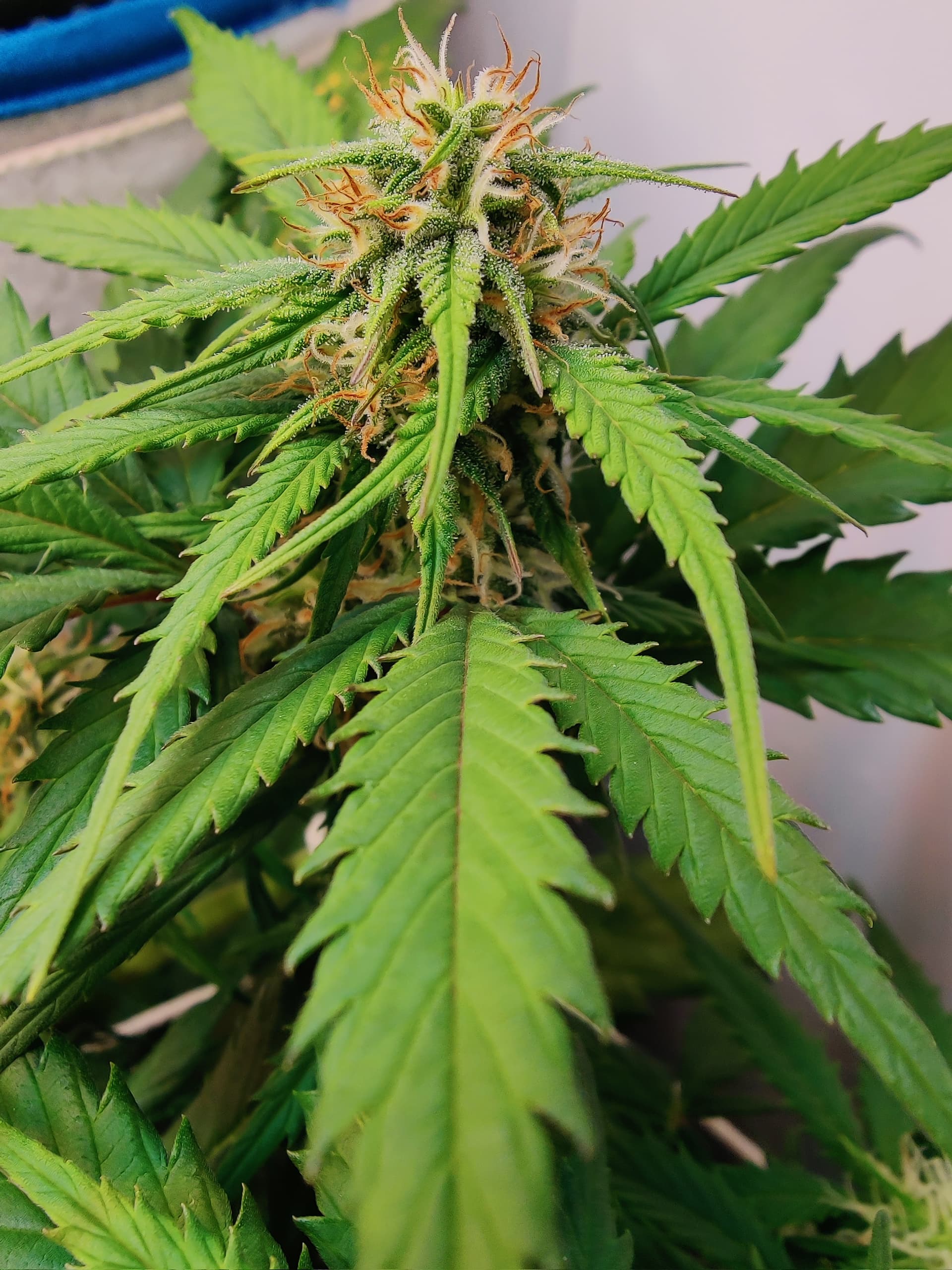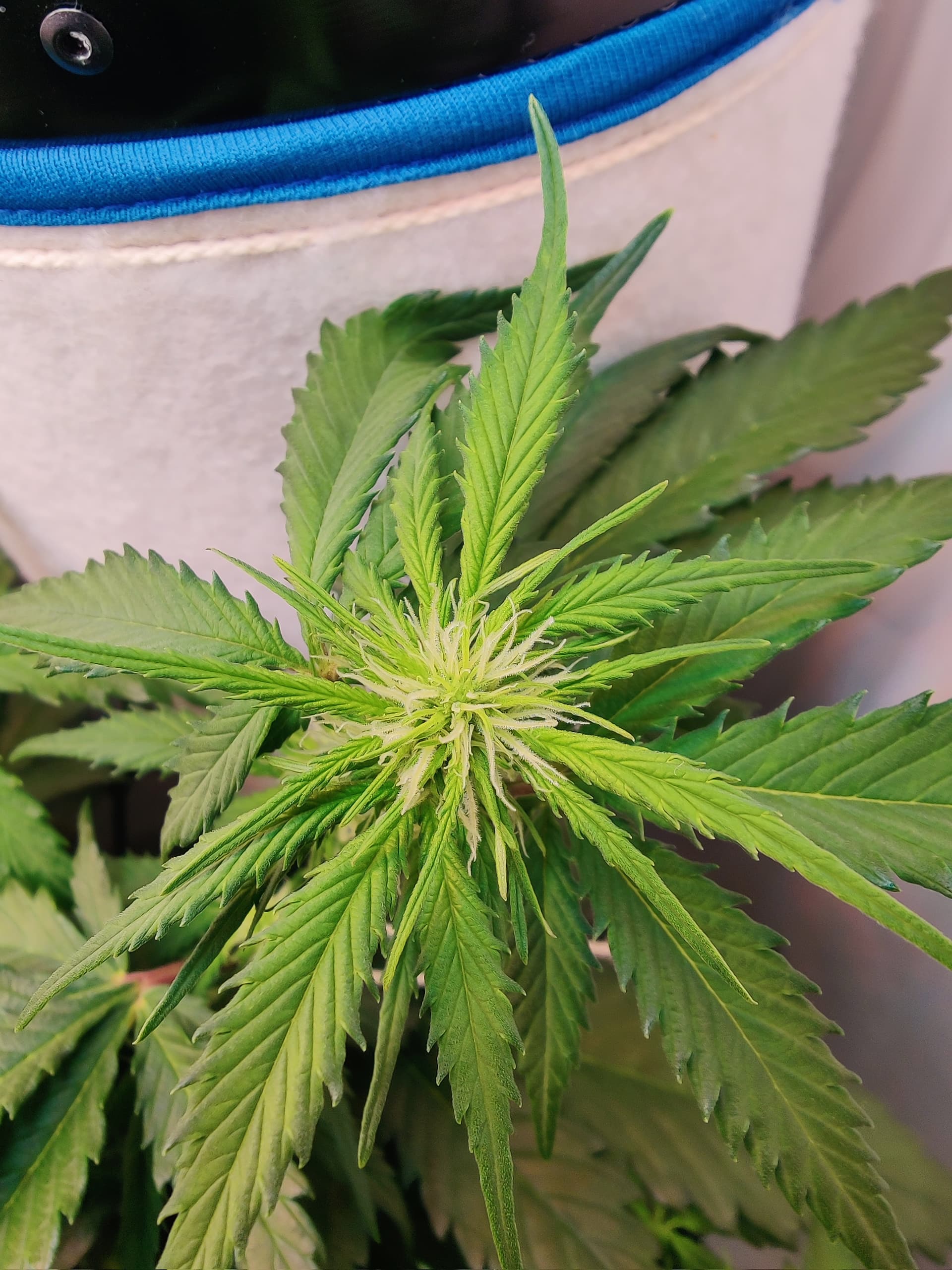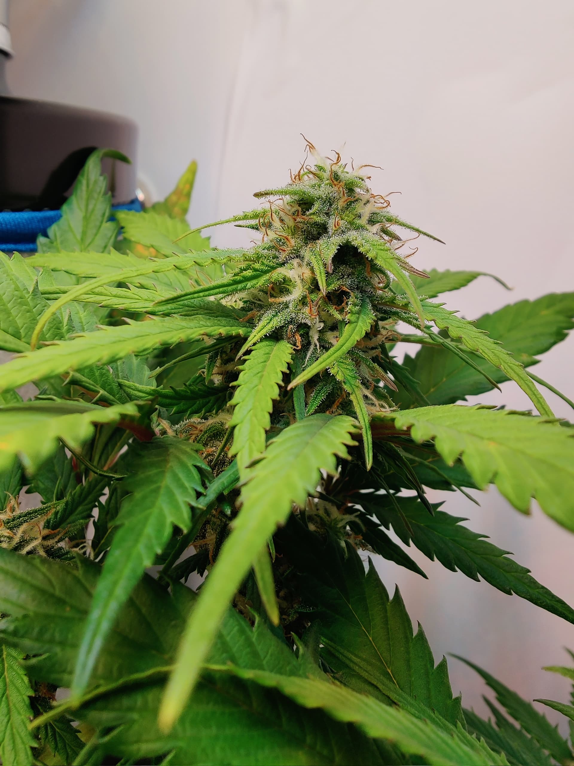 Werden wohl eher 9-10 bei ihr am Ende. Bekommt morgen noch mal Wachstumsdünger statt Blüte gegen die hellen Blätter hilft wohl nur extra Nitrat Portion… Oder ist es Überdüngung weil Blätter von oben nach unten Heller werden?