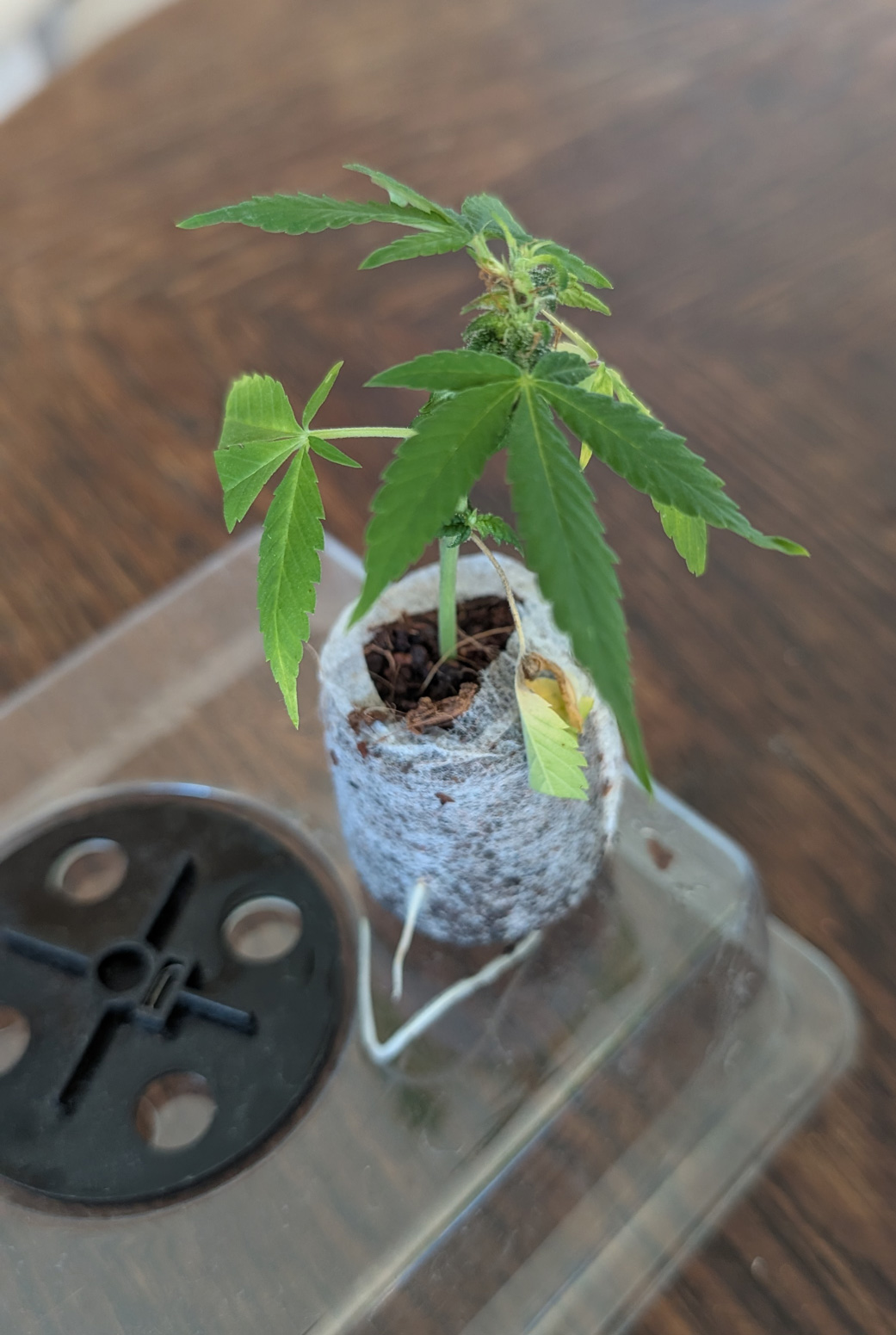 Ich probiere es jetzt erstmal mit 1 x 10 W. Eine zweite hat noch gewurzelt (ne dritte sogar auch, aber habe den Rest jetzt entsorgt). Sorte ist übrigens BCN Diesel von Kannabia, eine der wenigen Sorten mit 2:1 THC:CBD, die ich gefunden habe.