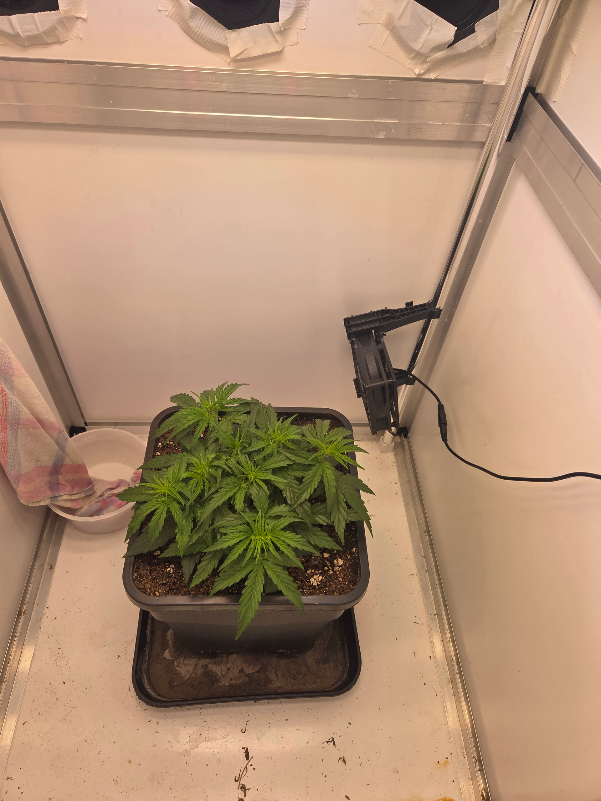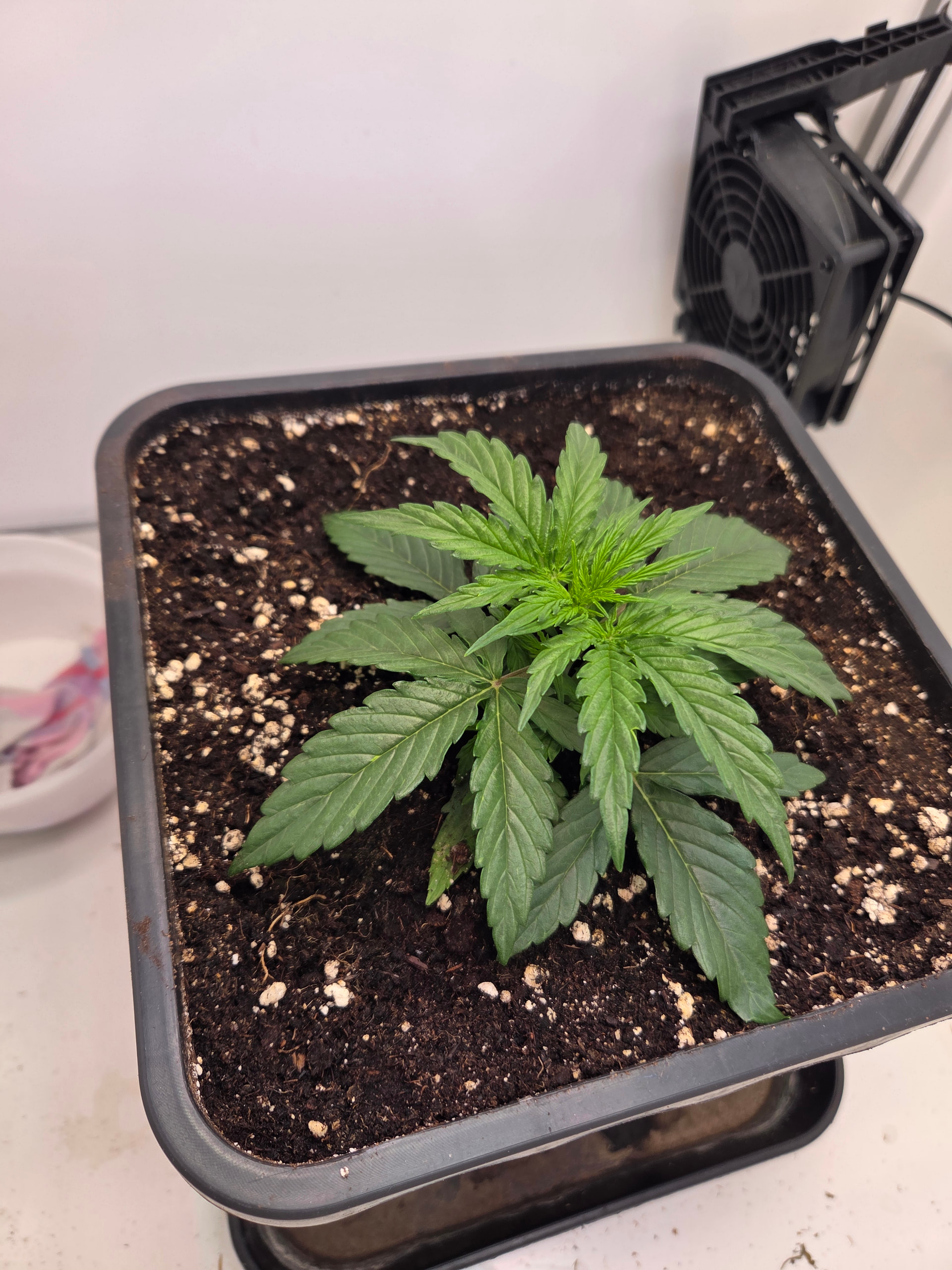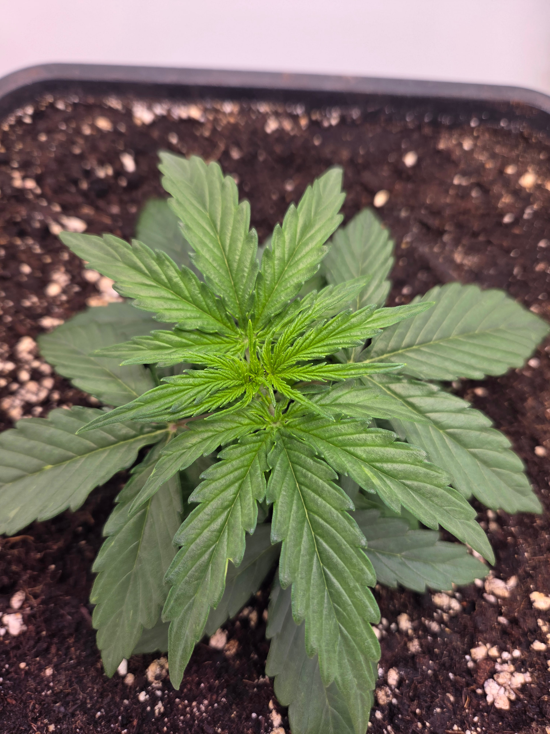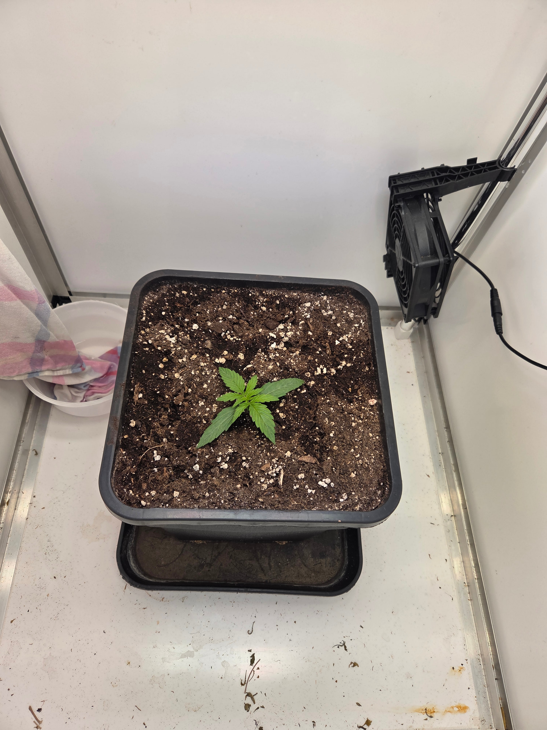 In ein paar Tage wandert der kleine Pott dann in 11L. Hier werde ich aufgrund Zeitmangel (ich hole die Erde immer im Growshop), einfach den noch vollen 11L Topf von der letzten Kannabia nehmen. Wollte da einfach 2 frische Tabs reindrücken, bisschen Mycotrex, Startrex und Silizium Flash rein mischen und fertig ist die Laube.