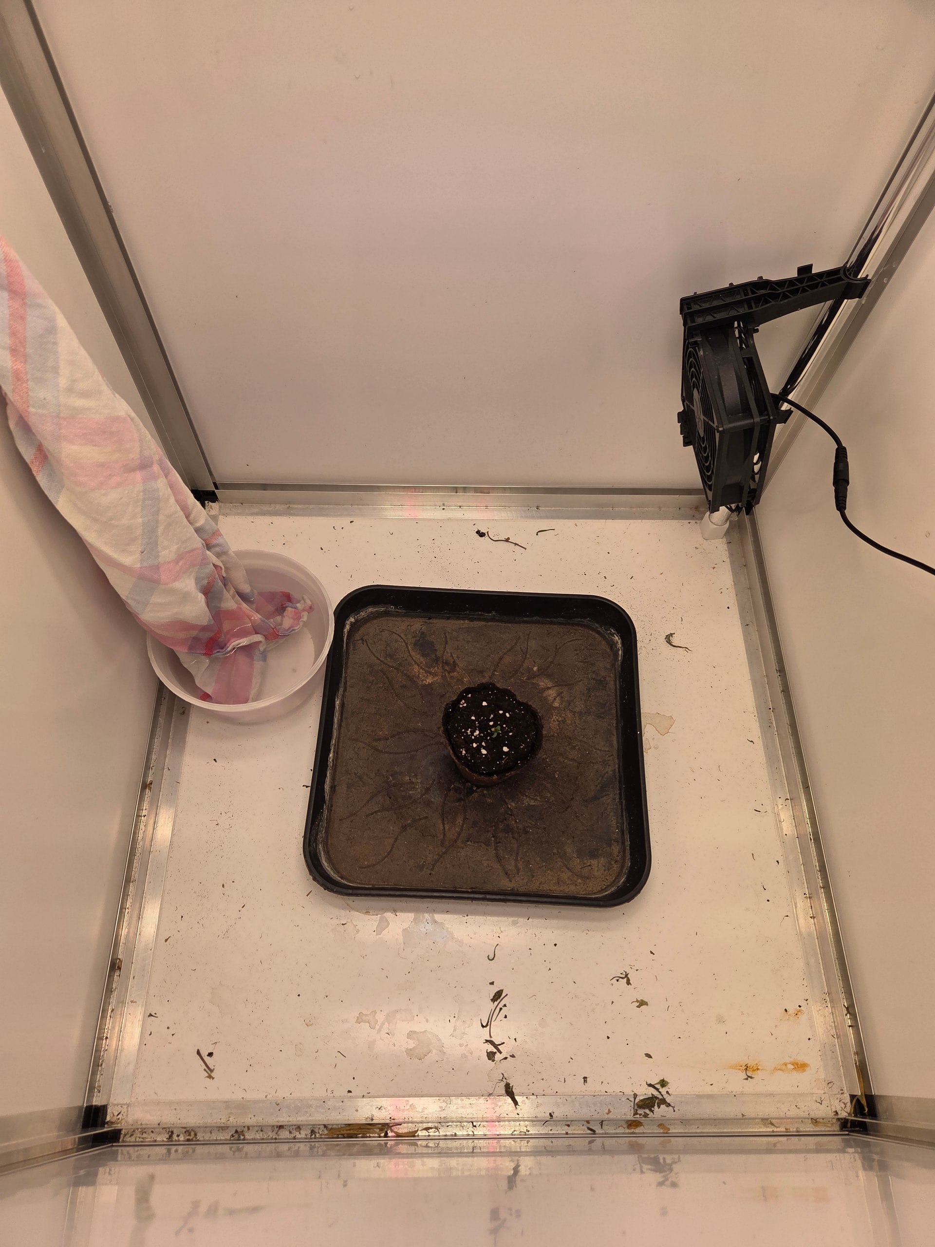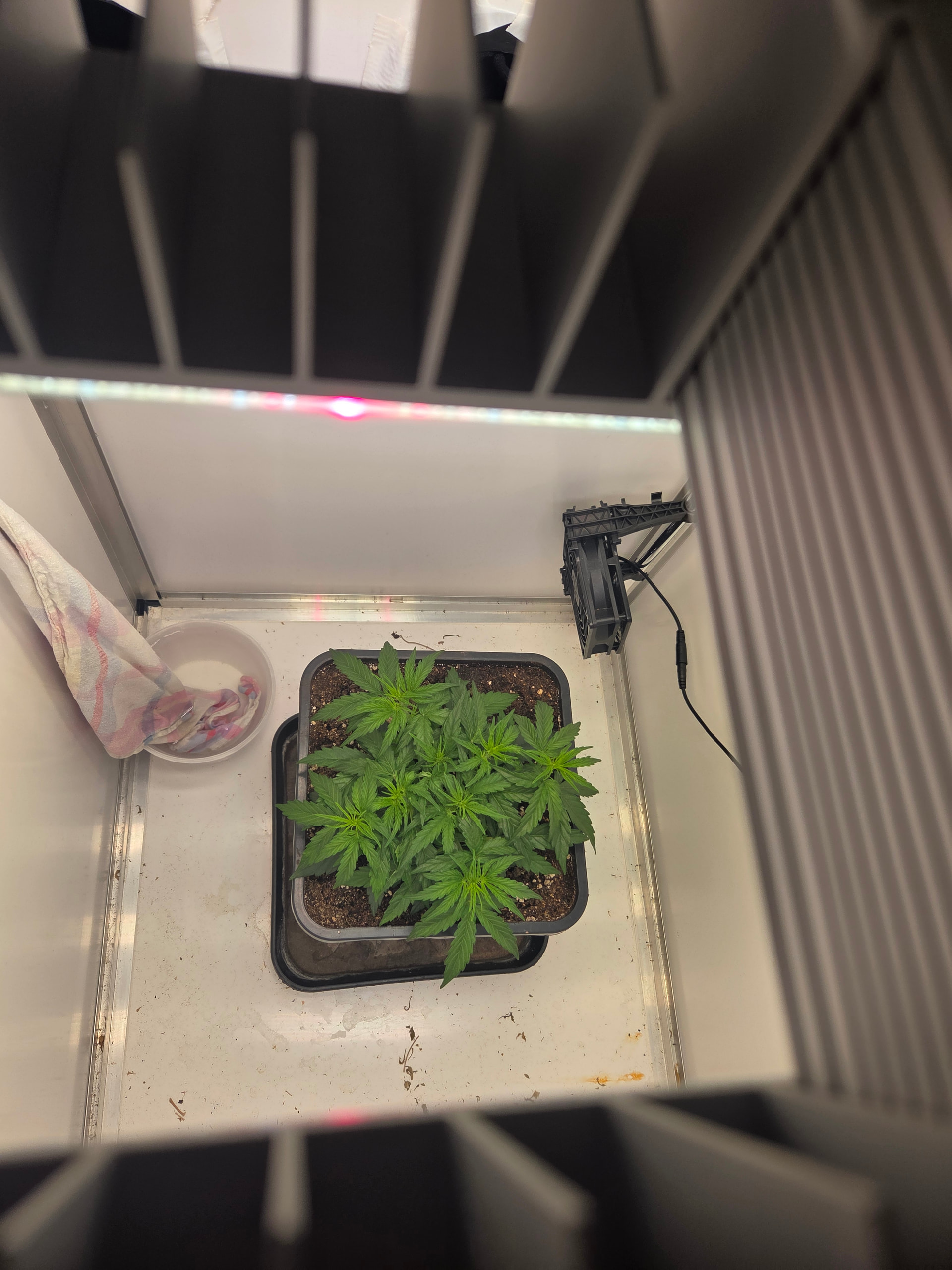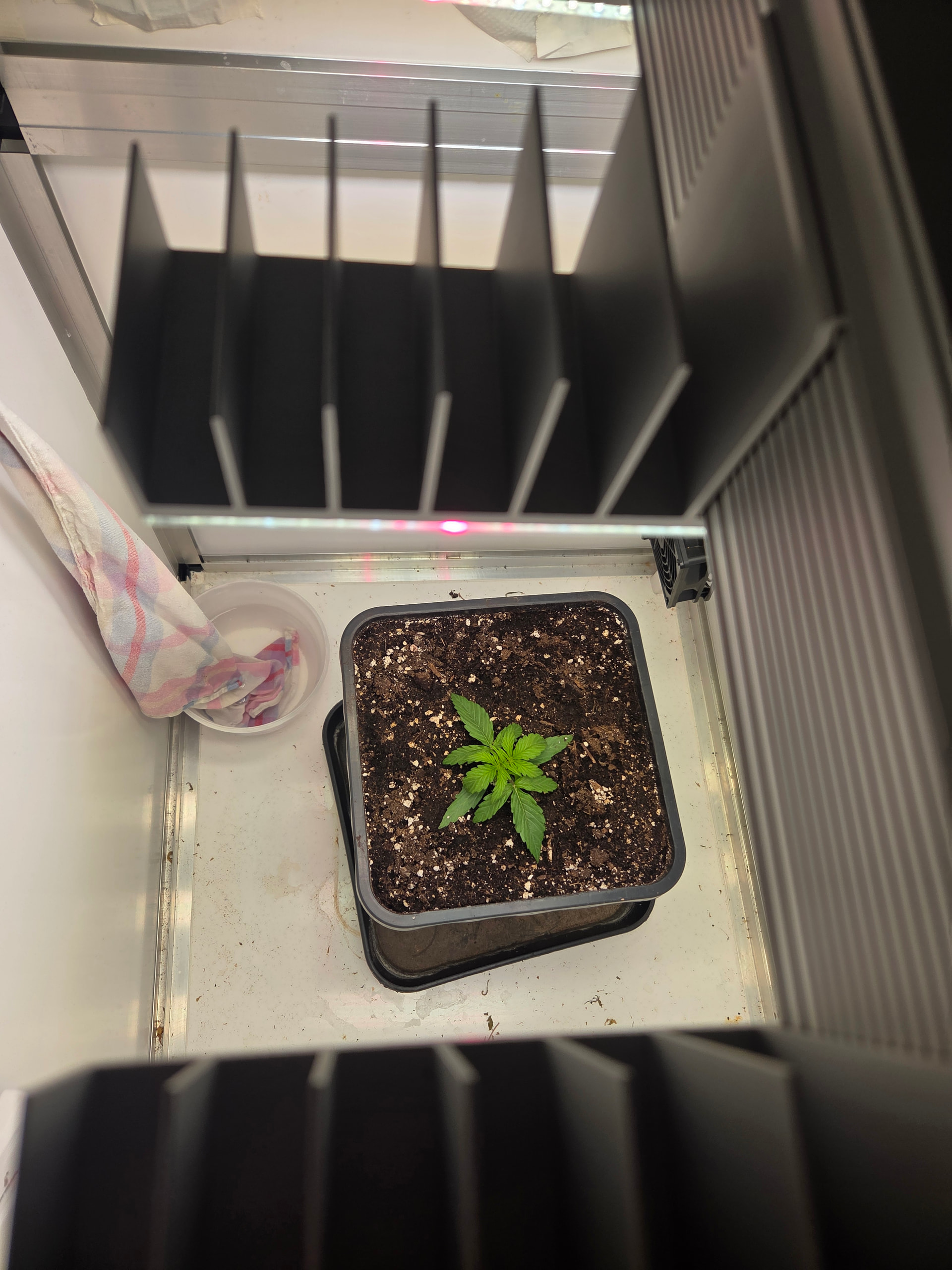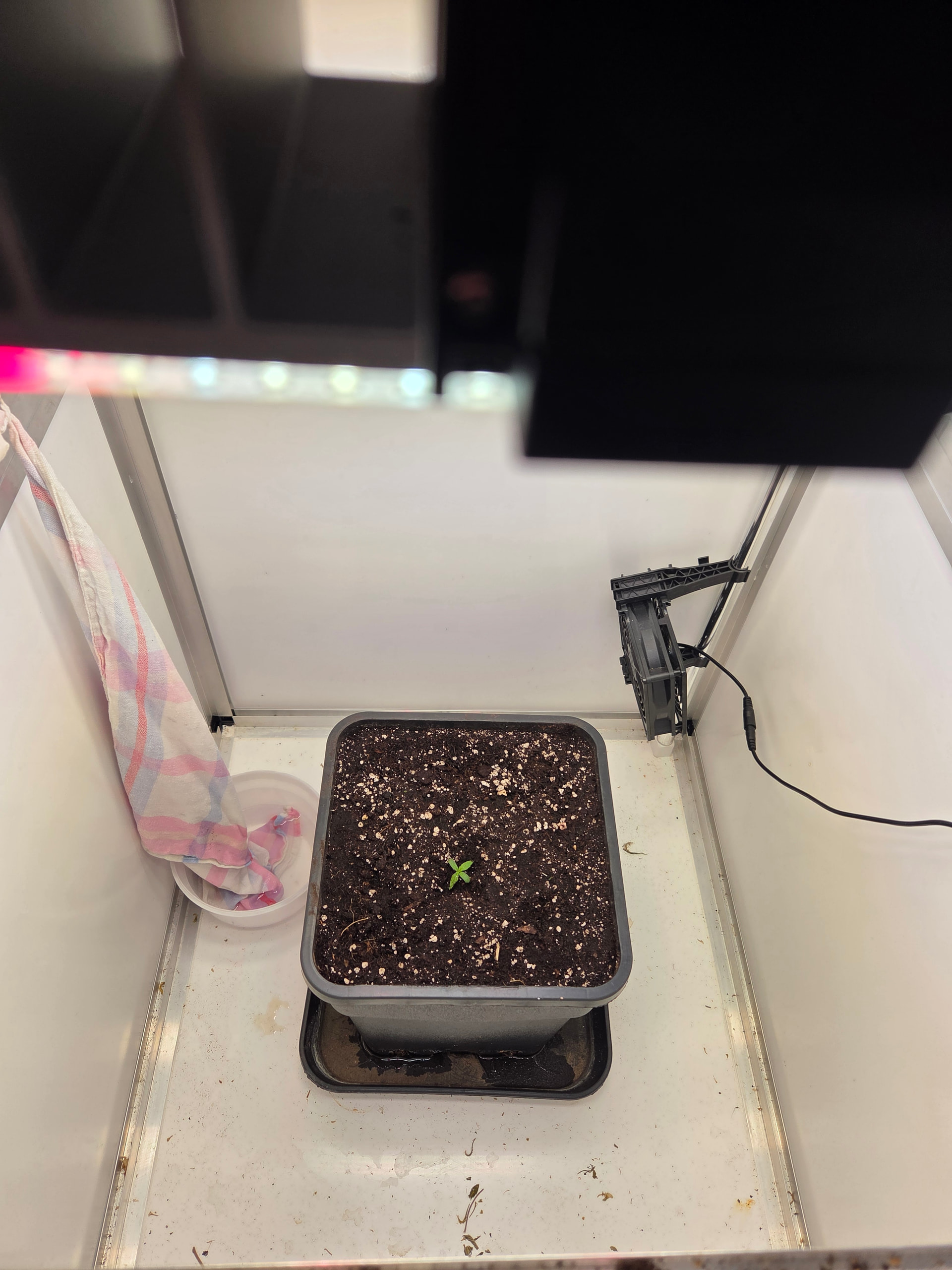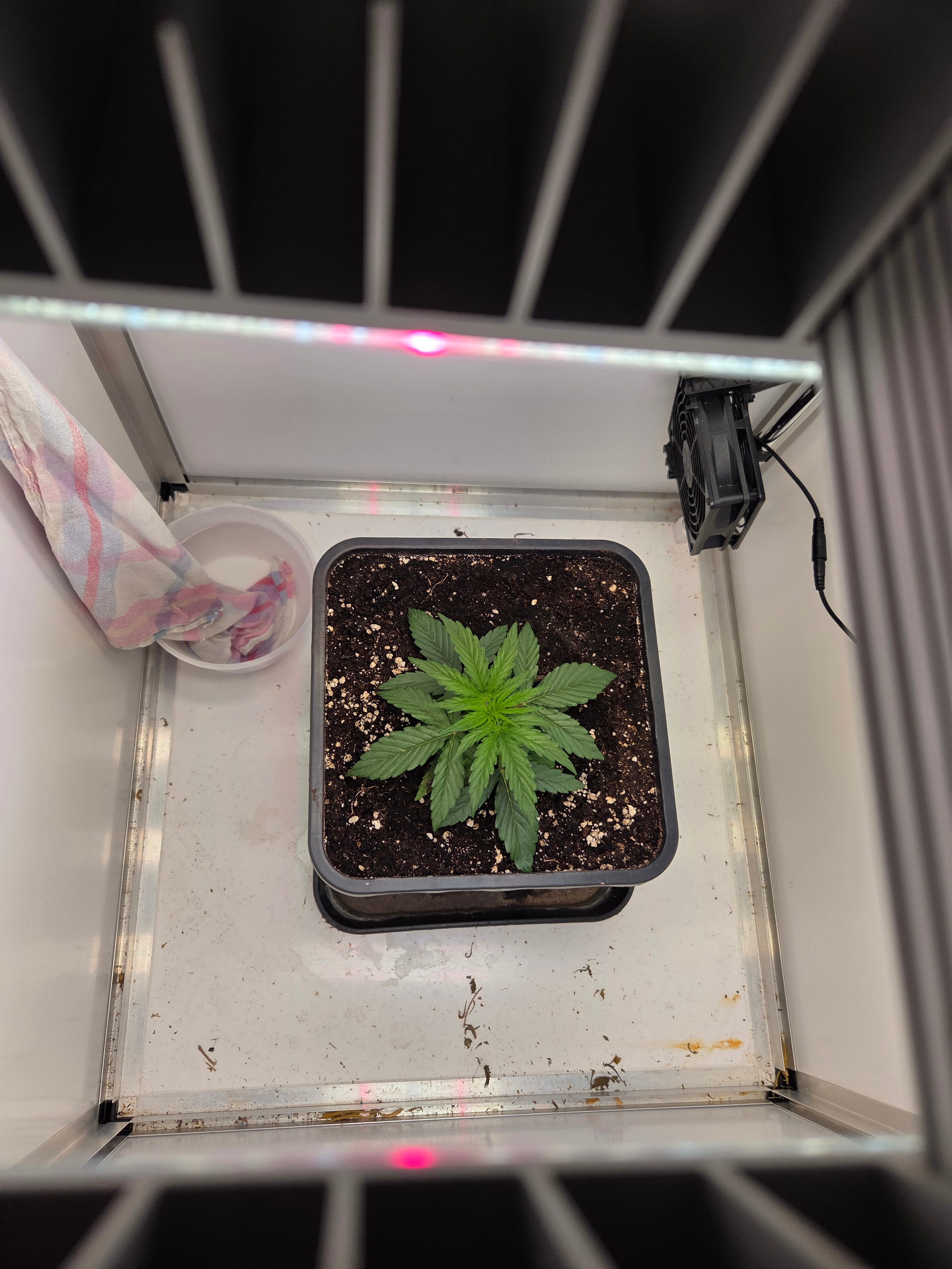 In ein paar Tage wandert der kleine Pott dann in 11L. Hier werde ich aufgrund Zeitmangel (ich hole die Erde immer im Growshop), einfach den noch vollen 11L Topf von der letzten Kannabia nehmen. Wollte da einfach 2 frische Tabs reindrücken, bisschen Mycotrex, Startrex und Silizium Flash rein mischen und fertig ist die Laube.