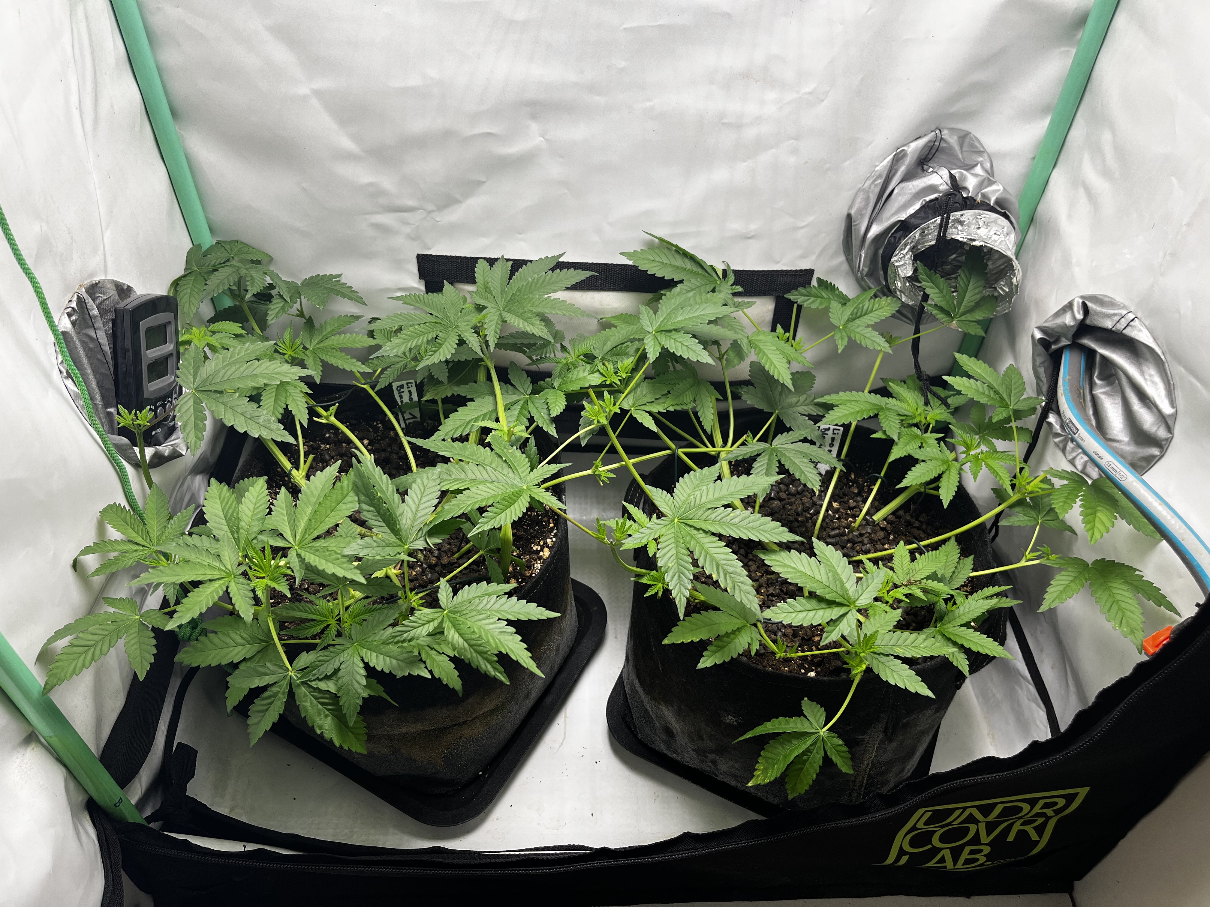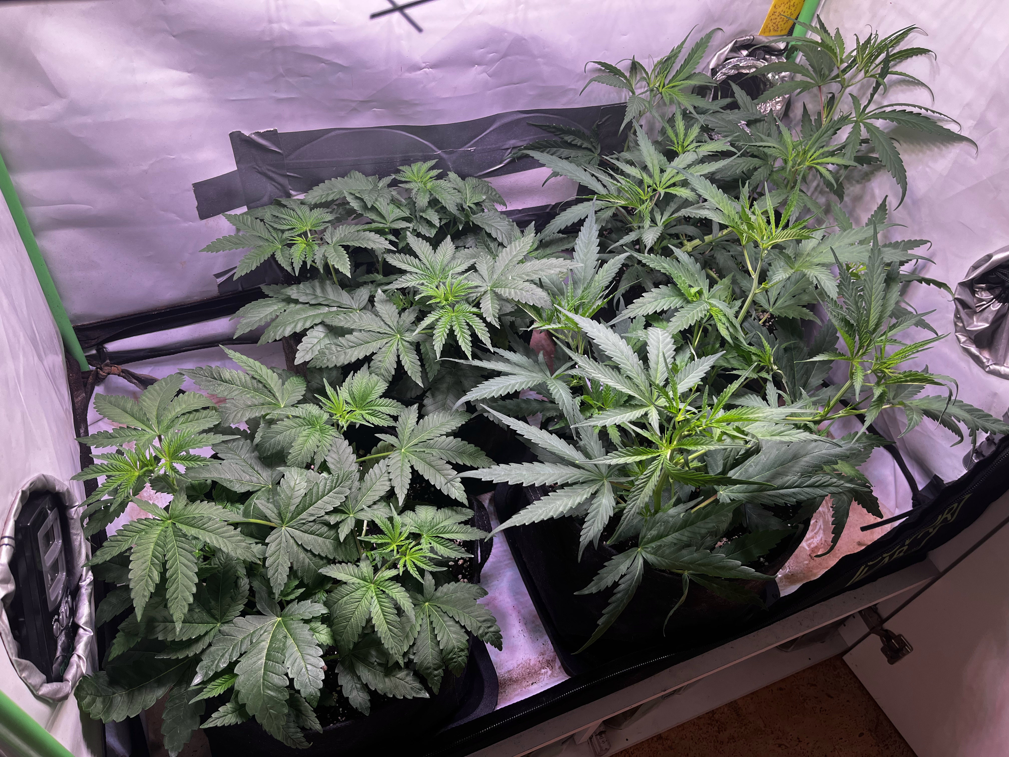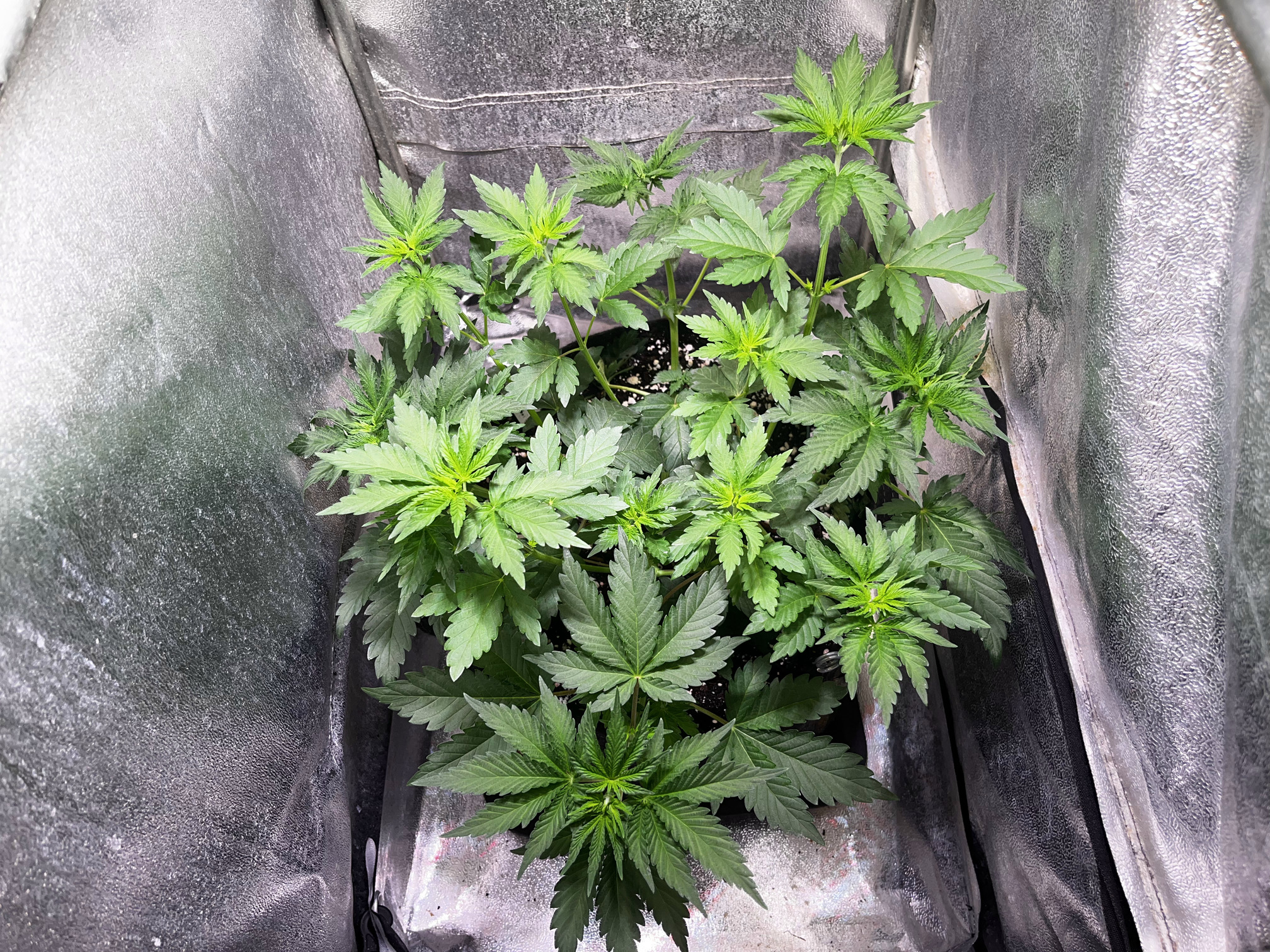 Die Pflanzen durften die letzten Tage ja machen was sie wollten, ich kam kaum mit dem Lampen hinterherstellen (~45cm) nach. Der Dünger und das ganze Konzept funktioniert überaus gut, eine Strawberry Chemdawg OG hat sogar schon leicht Adlerblätter gekrallt. Die Hitze an die 30 Grad kombiniert, ist da auch nicht förderlich. Da mir das aber nun so vorkommt, als ob der Dünger schneller freisetzt, wird man in der Blüte sicher eine Nachdüngung benötigen.