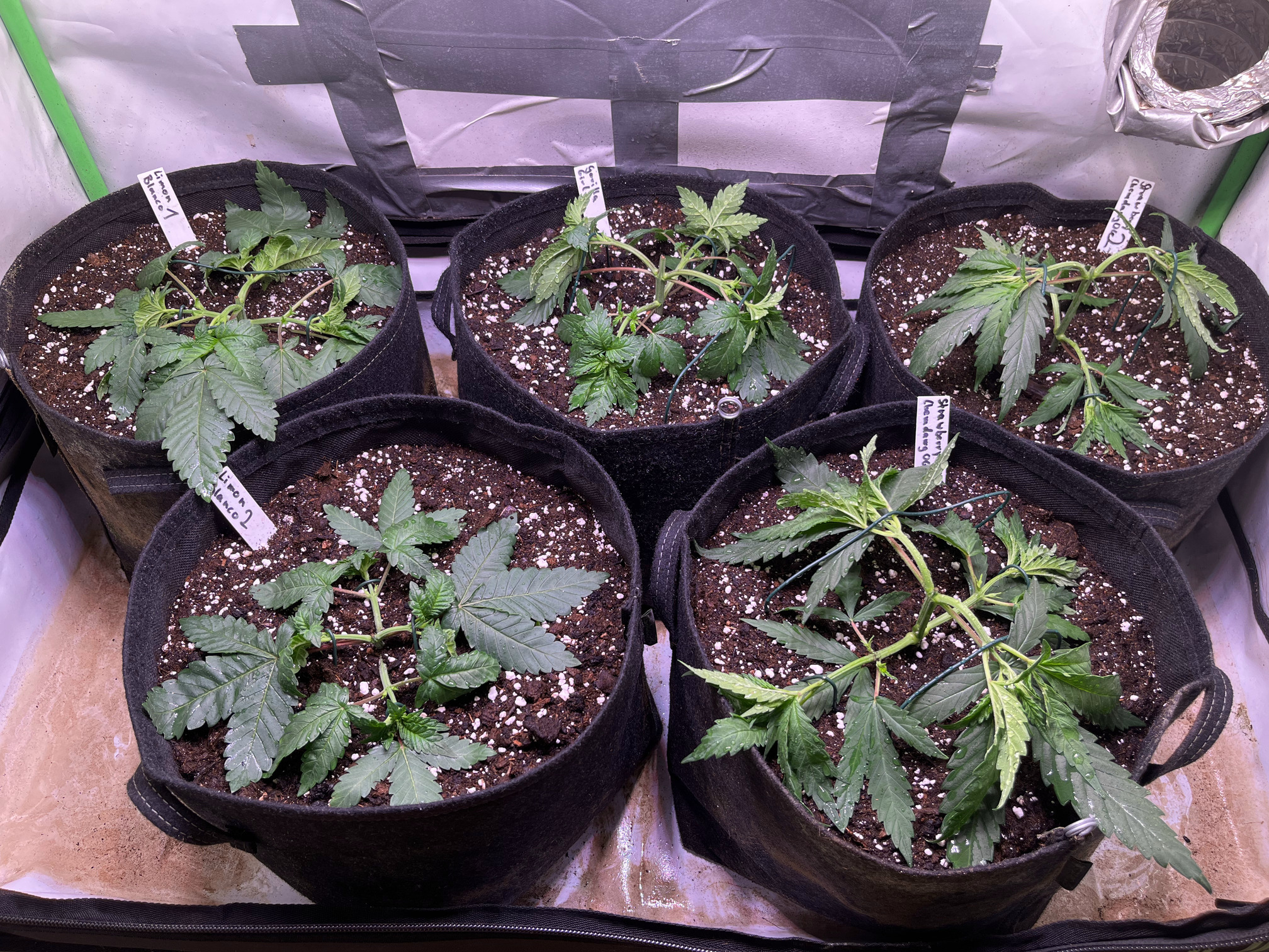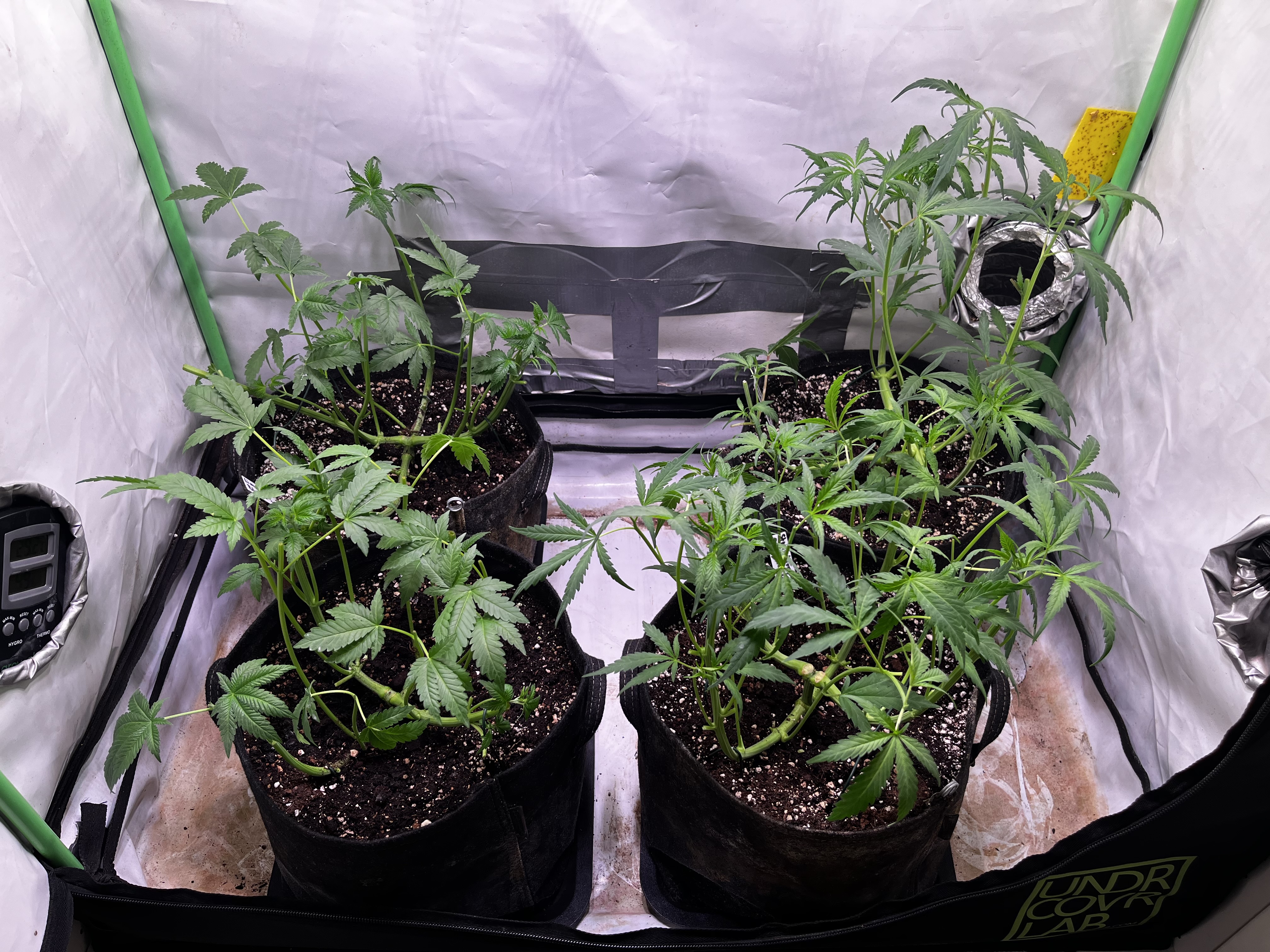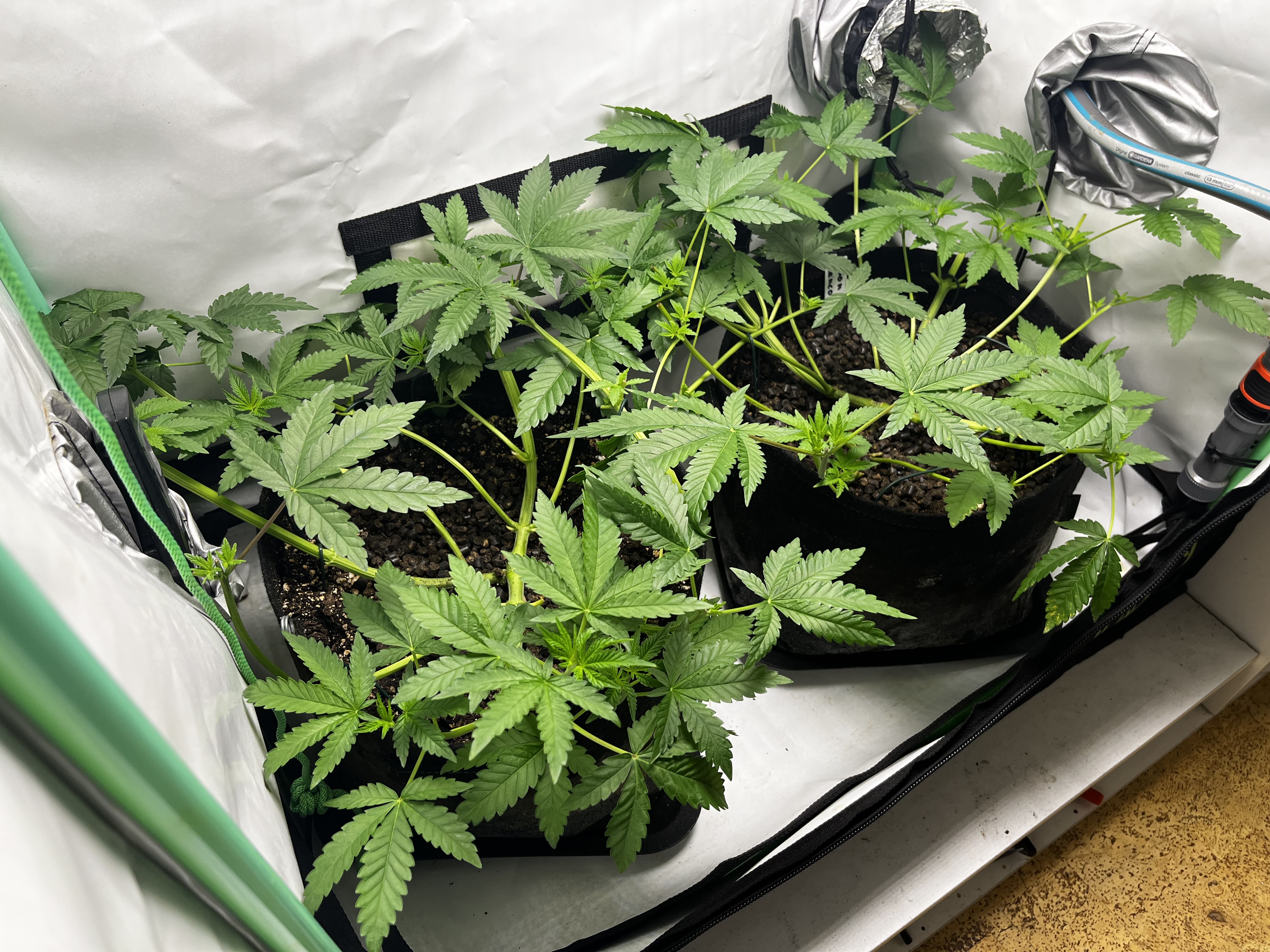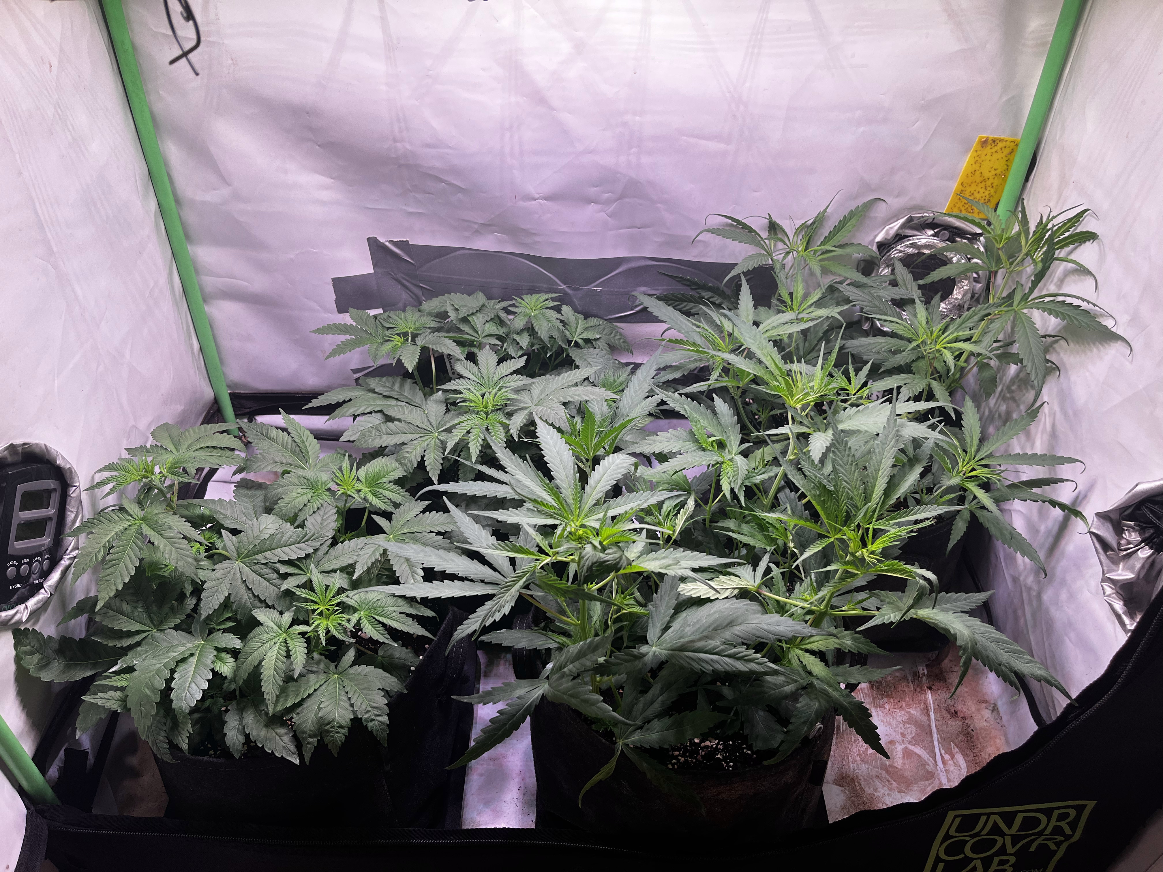Die Pflanzen durften die letzten Tage ja machen was sie wollten, ich kam kaum mit dem Lampen hinterherstellen (~45cm) nach. Der Dünger und das ganze Konzept funktioniert überaus gut, eine Strawberry Chemdawg OG hat sogar schon leicht Adlerblätter gekrallt. Die Hitze an die 30 Grad kombiniert, ist da auch nicht förderlich. Da mir das aber nun so vorkommt, als ob der Dünger schneller freisetzt, wird man in der Blüte sicher eine Nachdüngung benötigen.