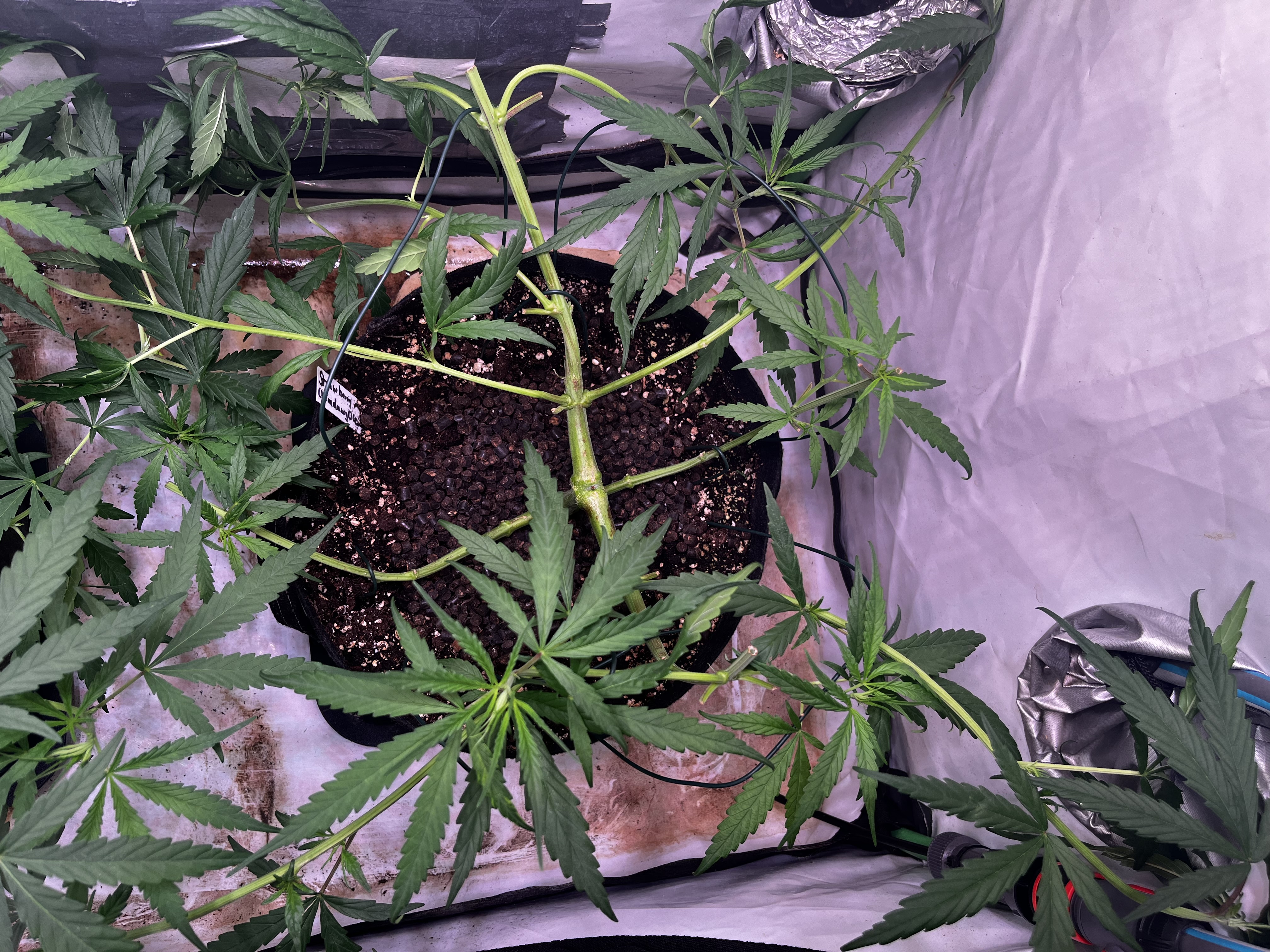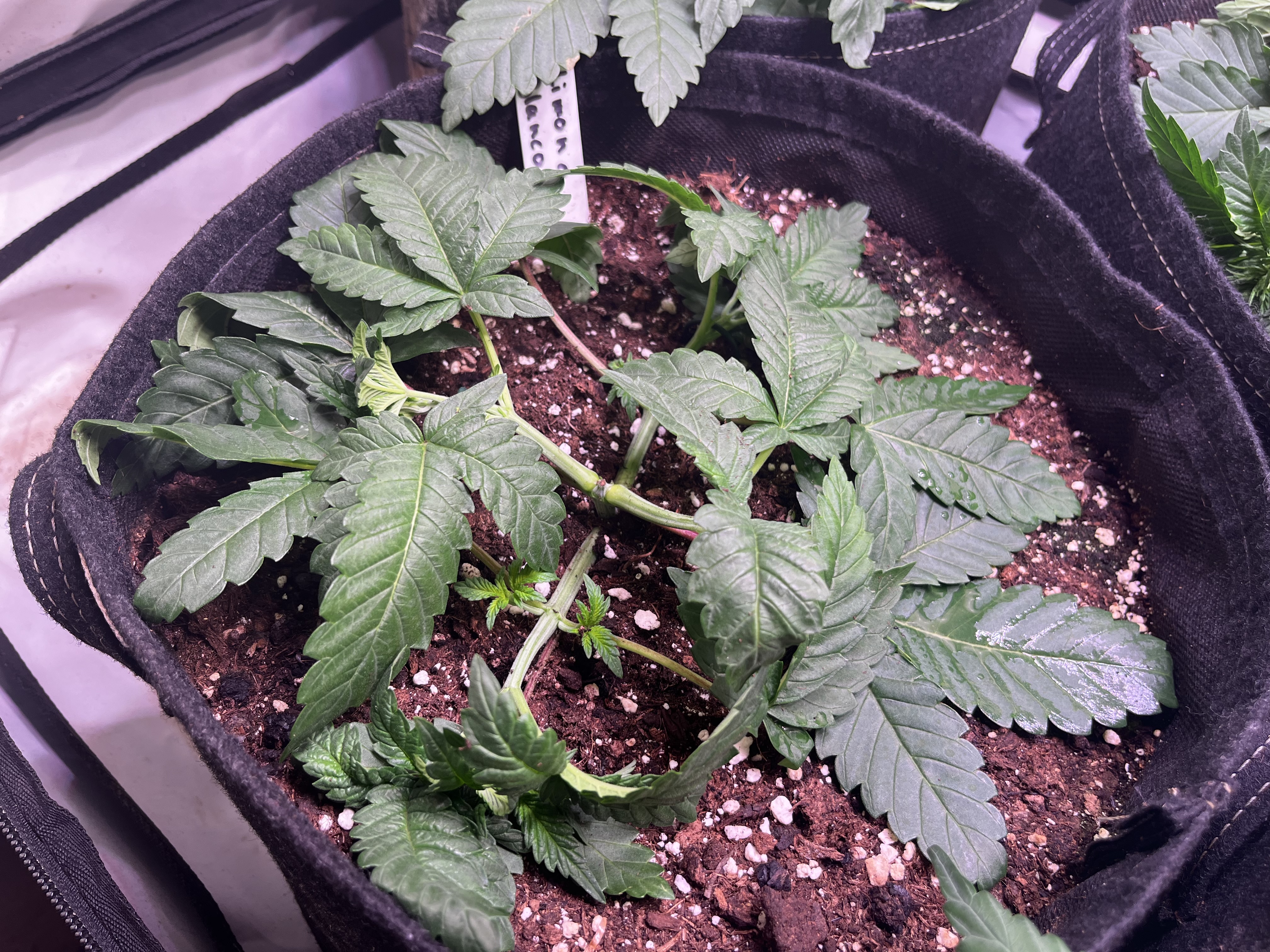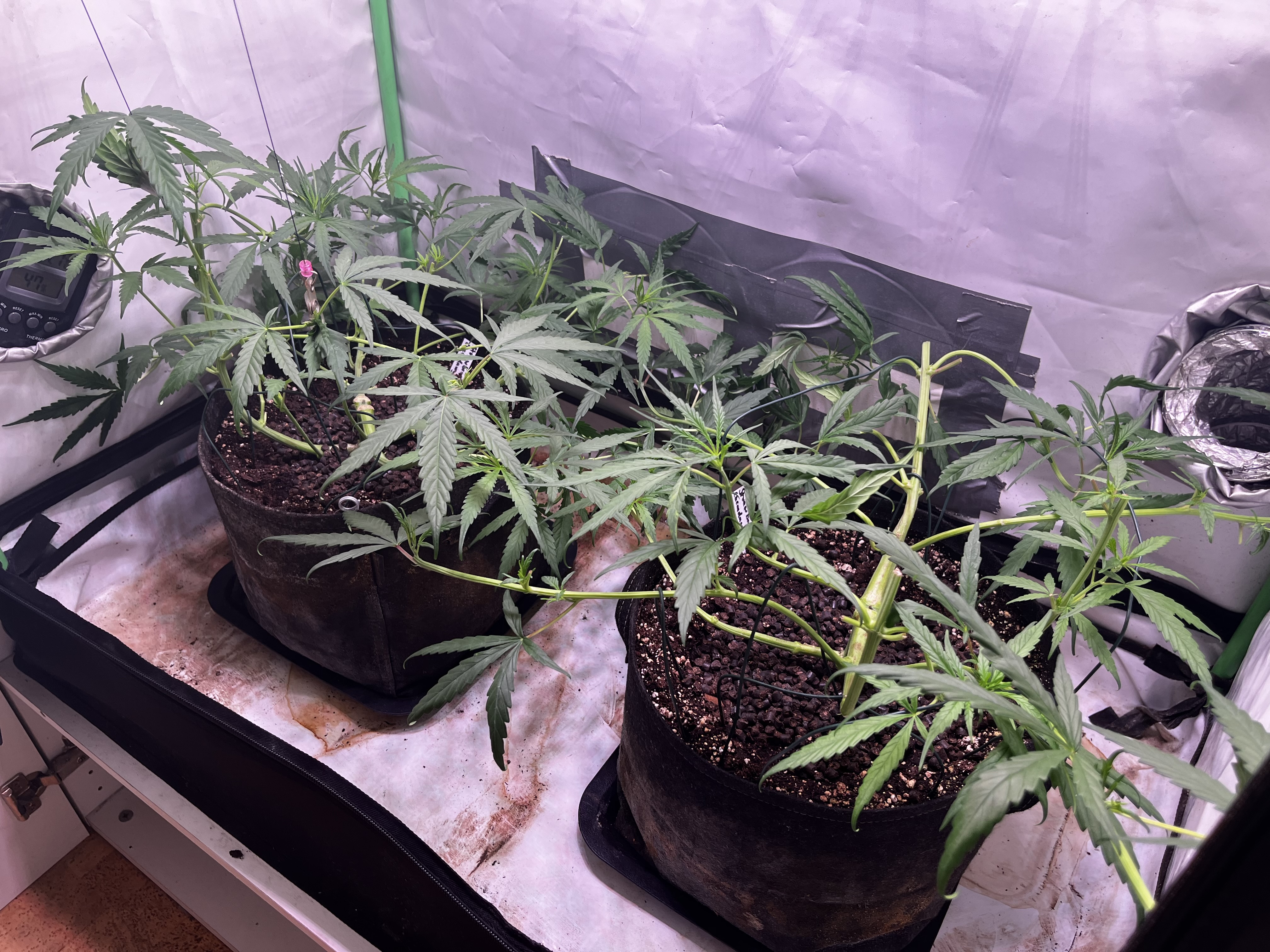 Die Pflanzen in den 11 Liter Töpfen wurden heute alle nochmal getoppt und beschnitten. Viele Segelblätter wurden rausgenommen und allen Trieben der Kopf abgenommen.